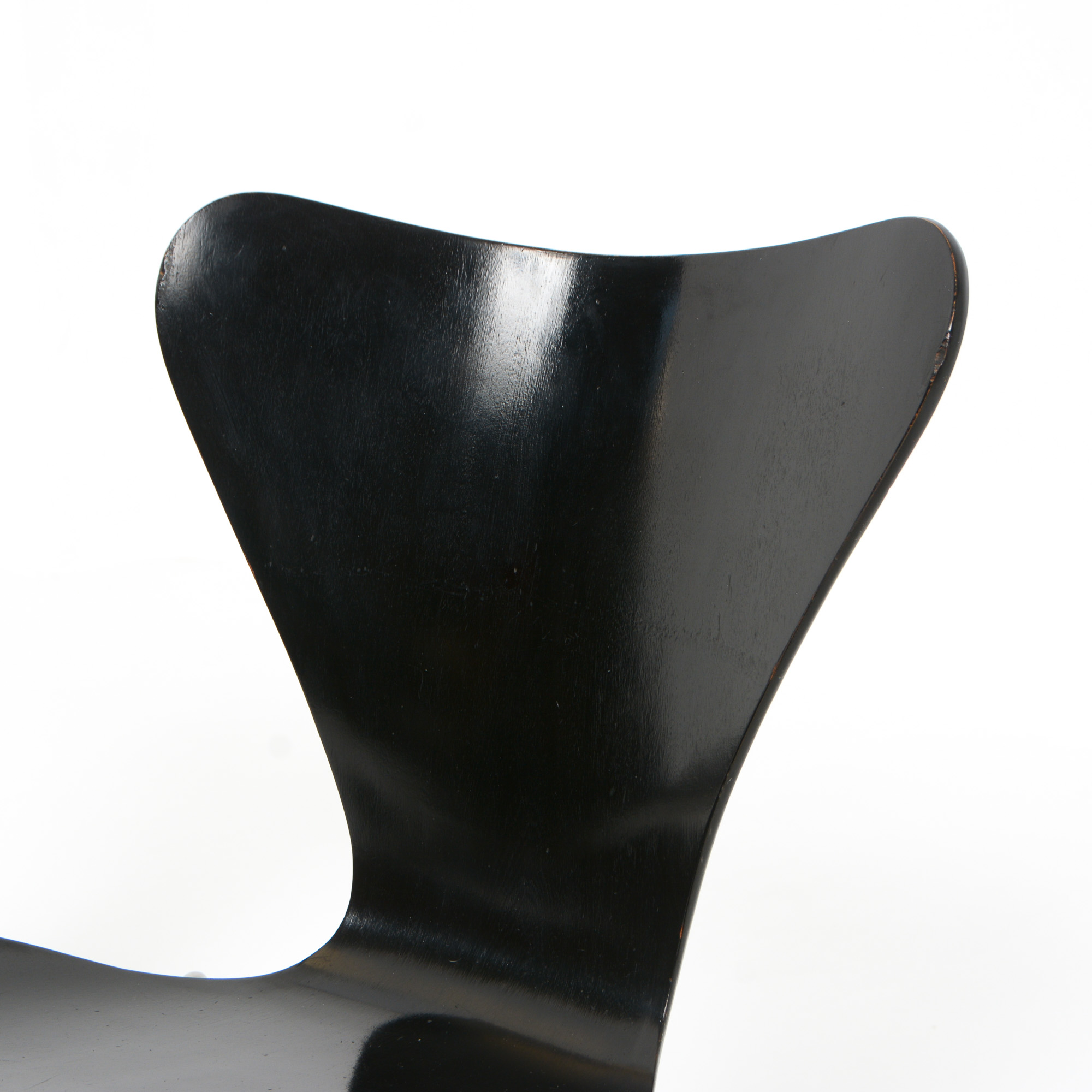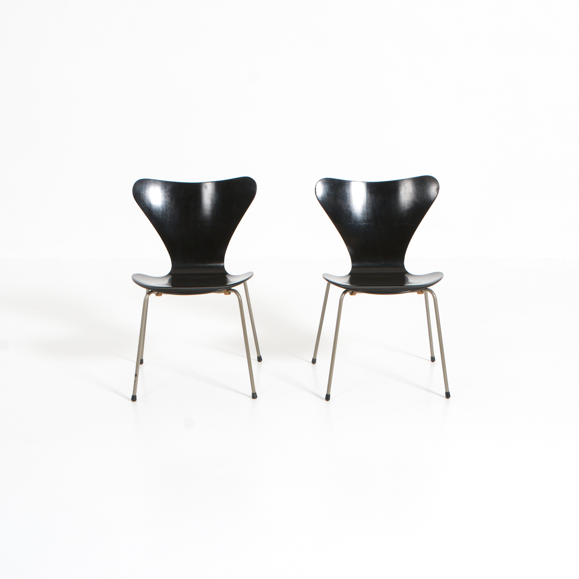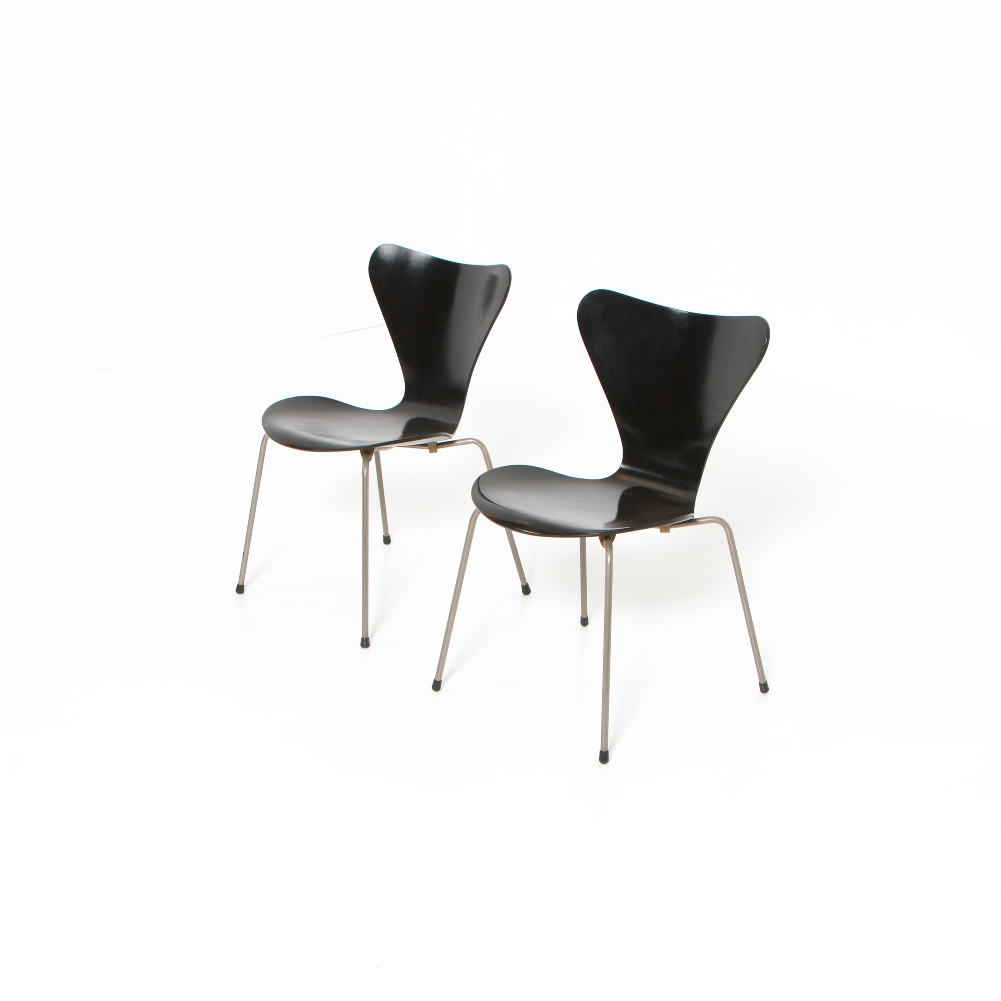 We offer you a pair of black chairs manufactured in the 1950s by Fritz Hansen.