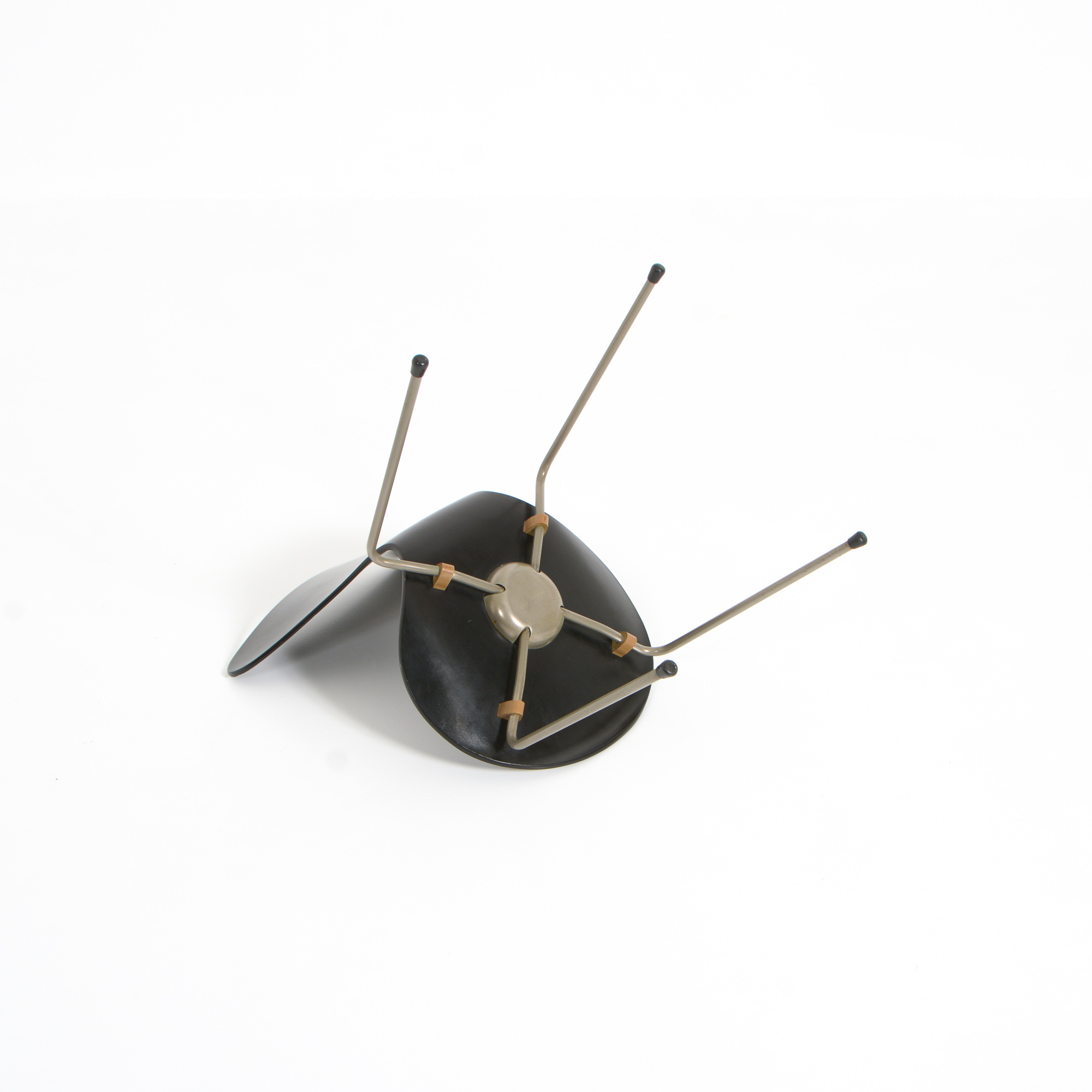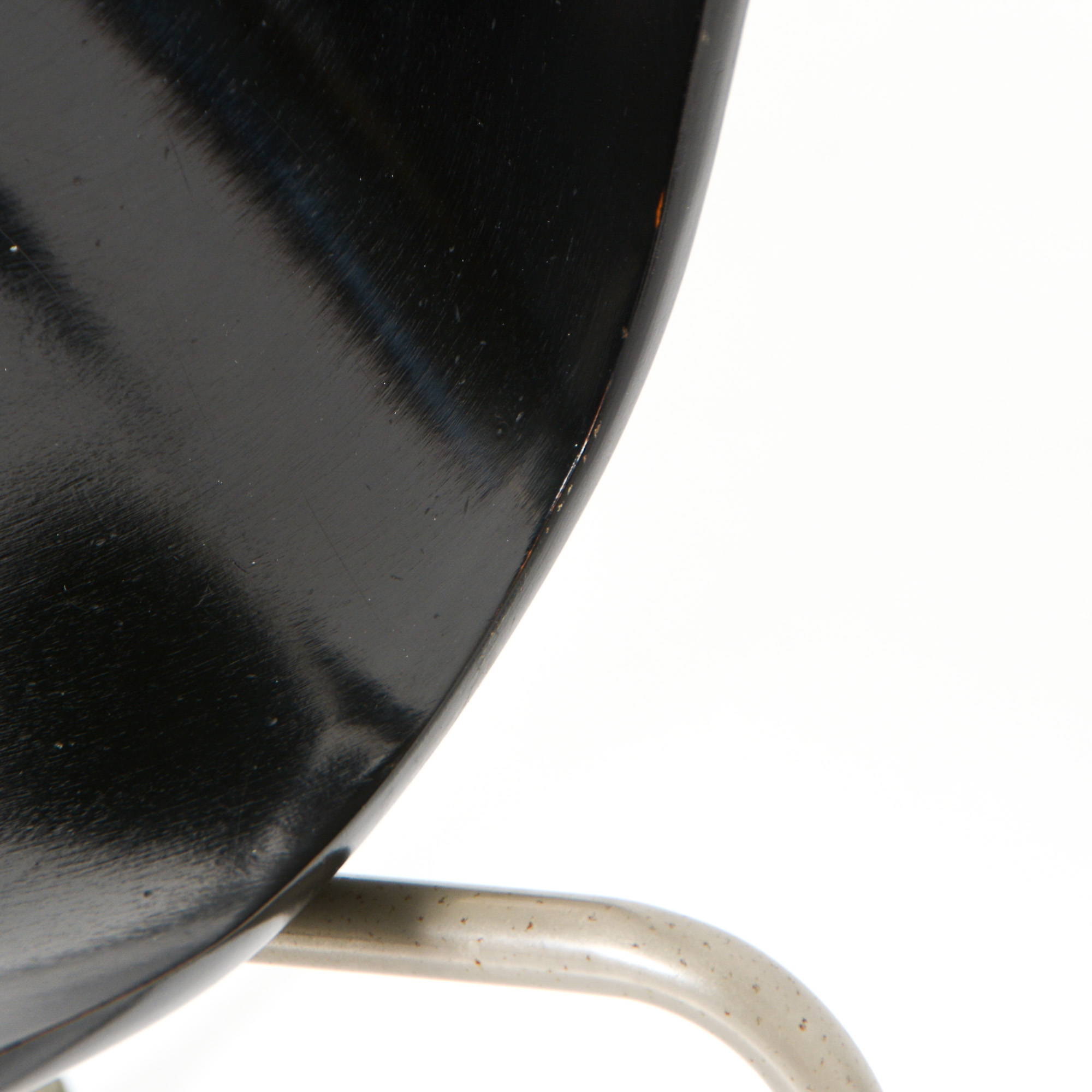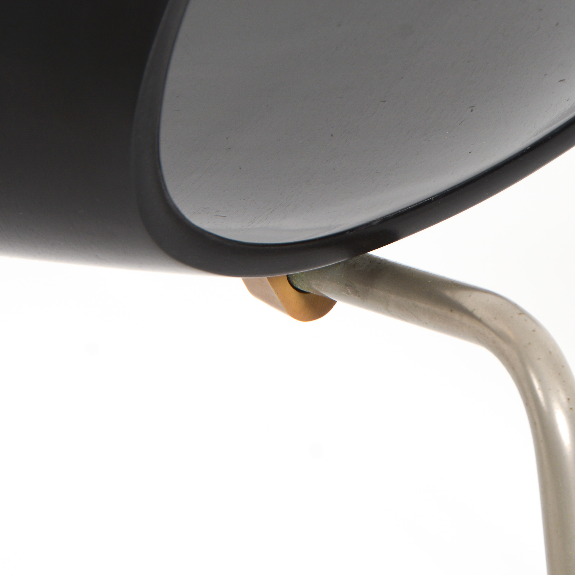 We offer you a pair of black chairs manufactured in the 1950s by Fritz Hansen.