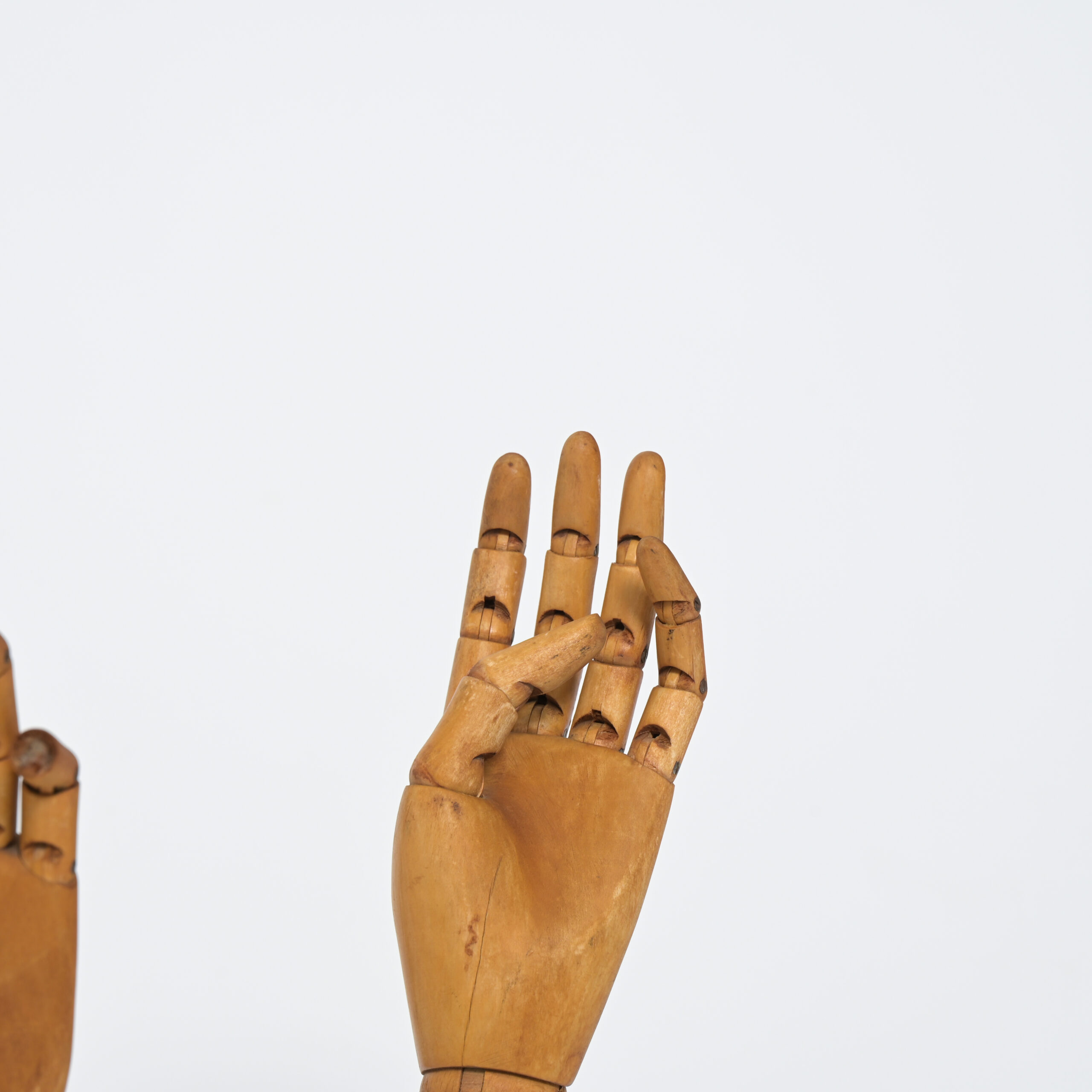 Beautiful set of antique wooden display hands for gloves. These display hands date from around the 1950s and they come from a glove store.