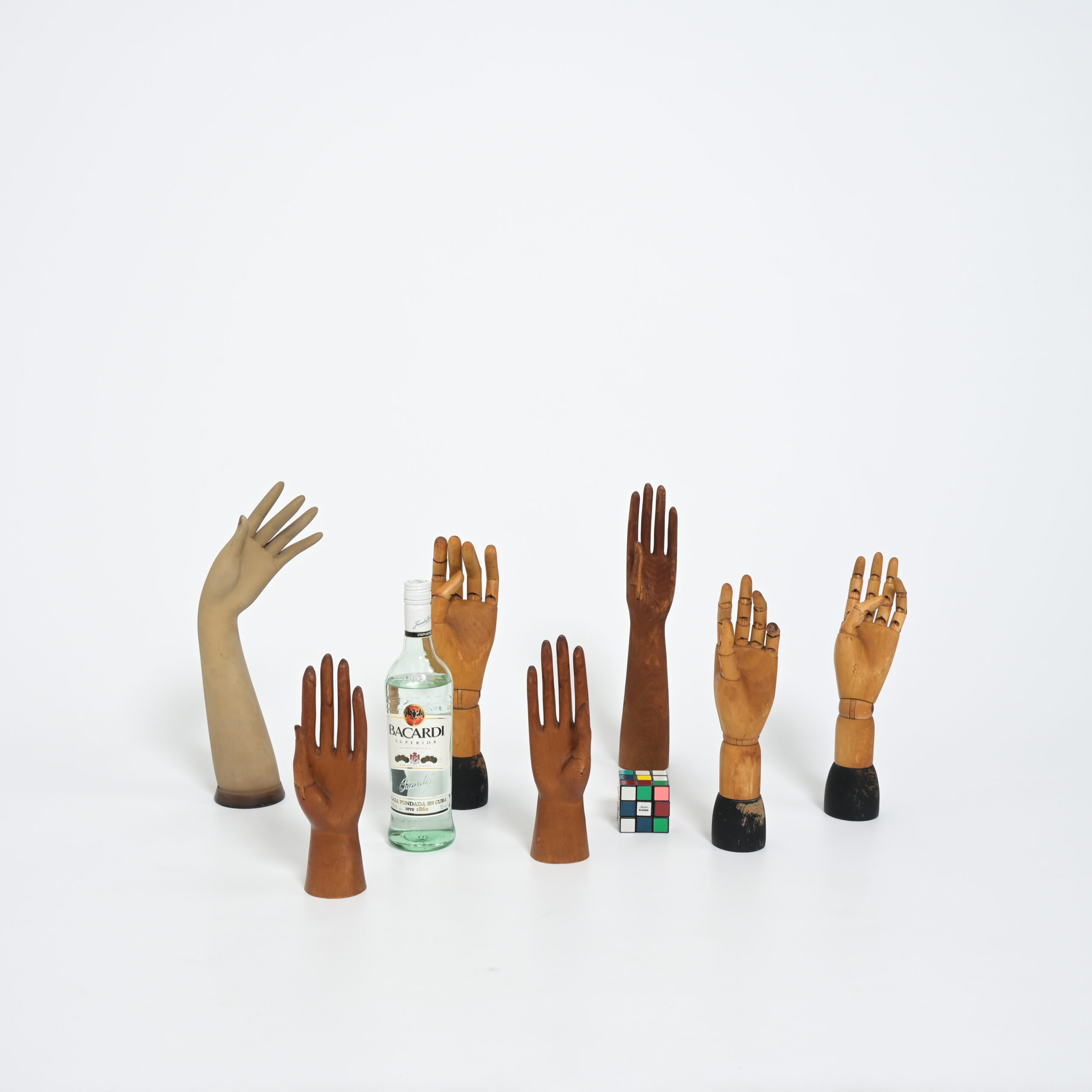 7 antique articulated wooden display hands