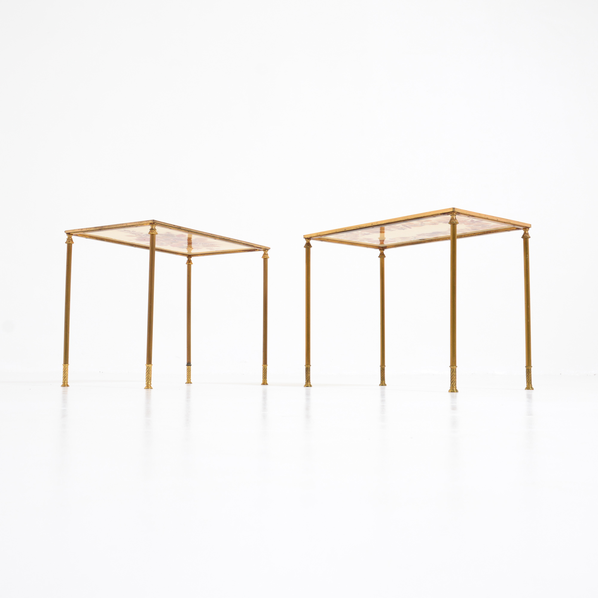 Pair of Brass Side Tables decorated with Dried Flowers