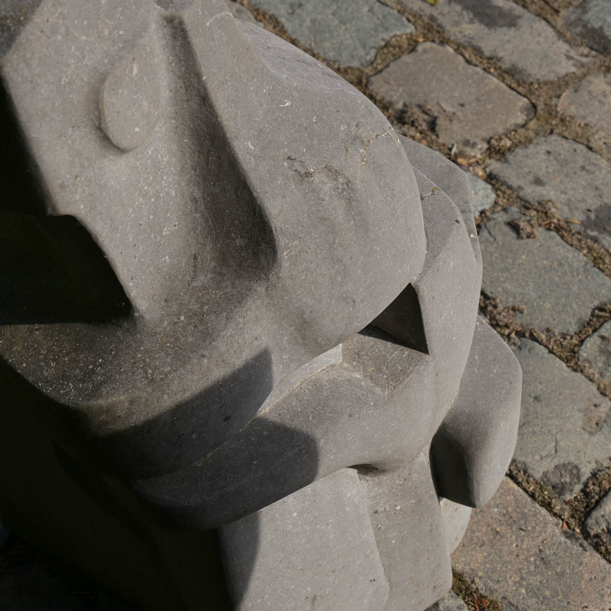 This abstract sculpture in Belgium bluestone was sculpted ‘en taille directe’ by the Belgian artist Jan Keustermans.