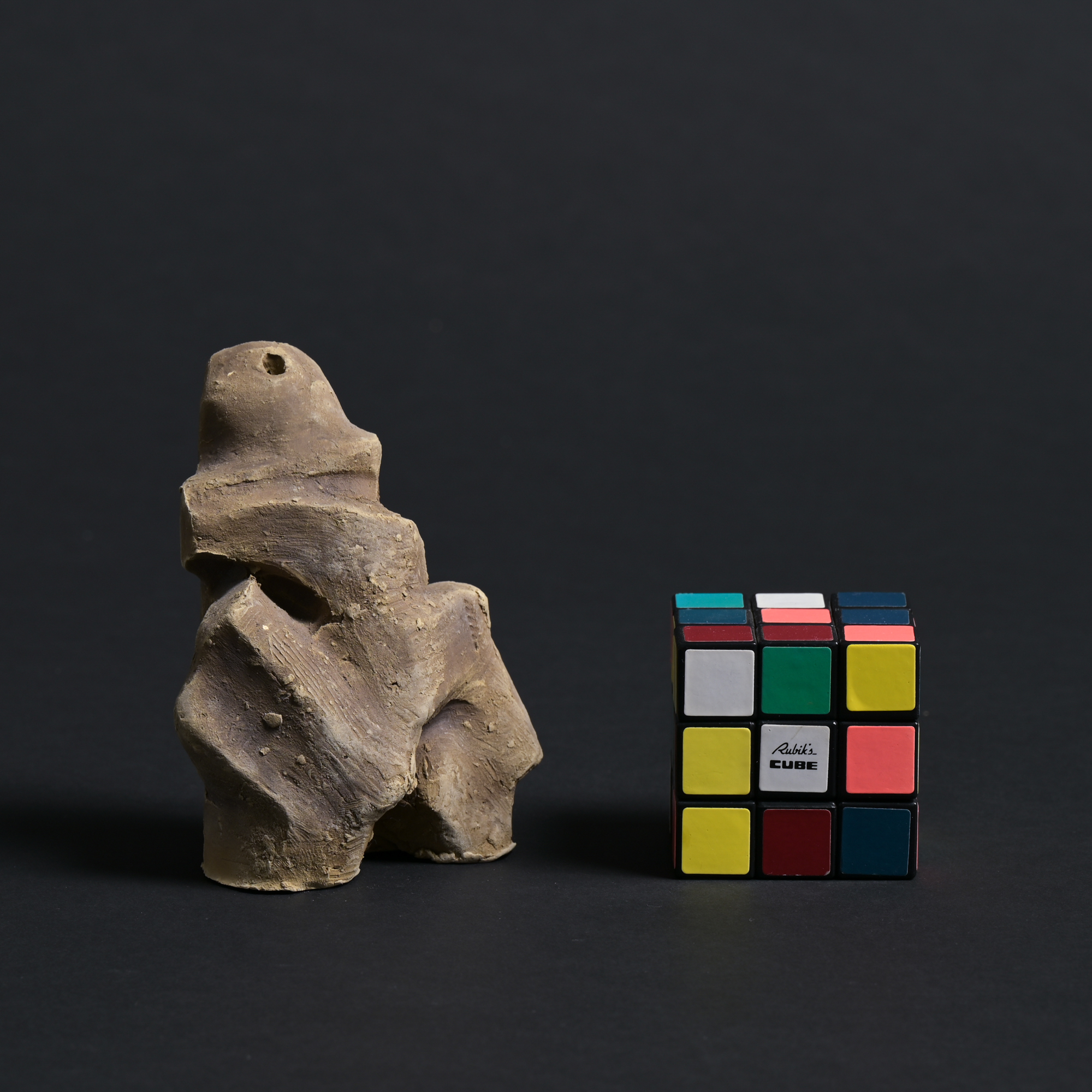 This abstract sculpture in clay was made by the Belgian artist Jan Keustermans.