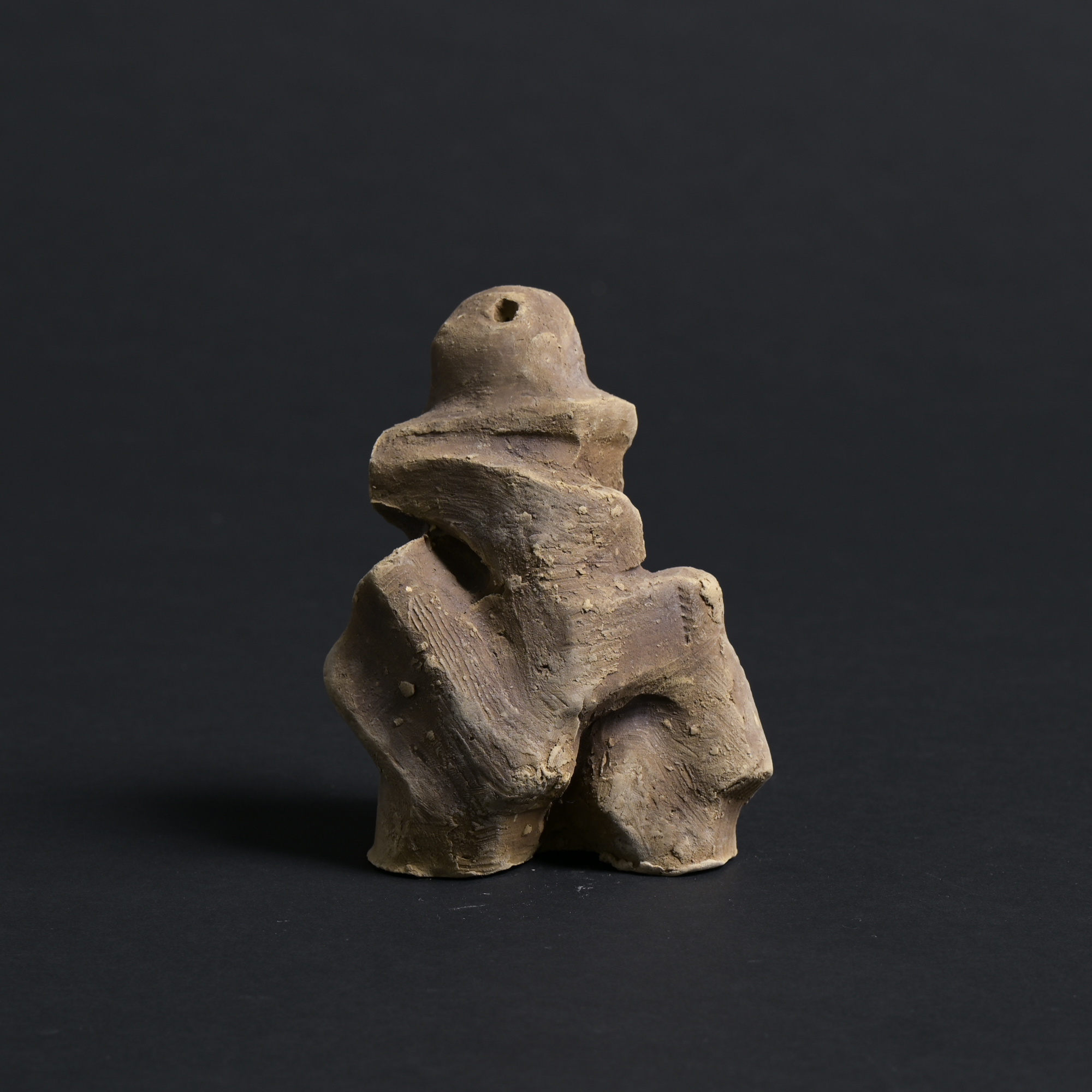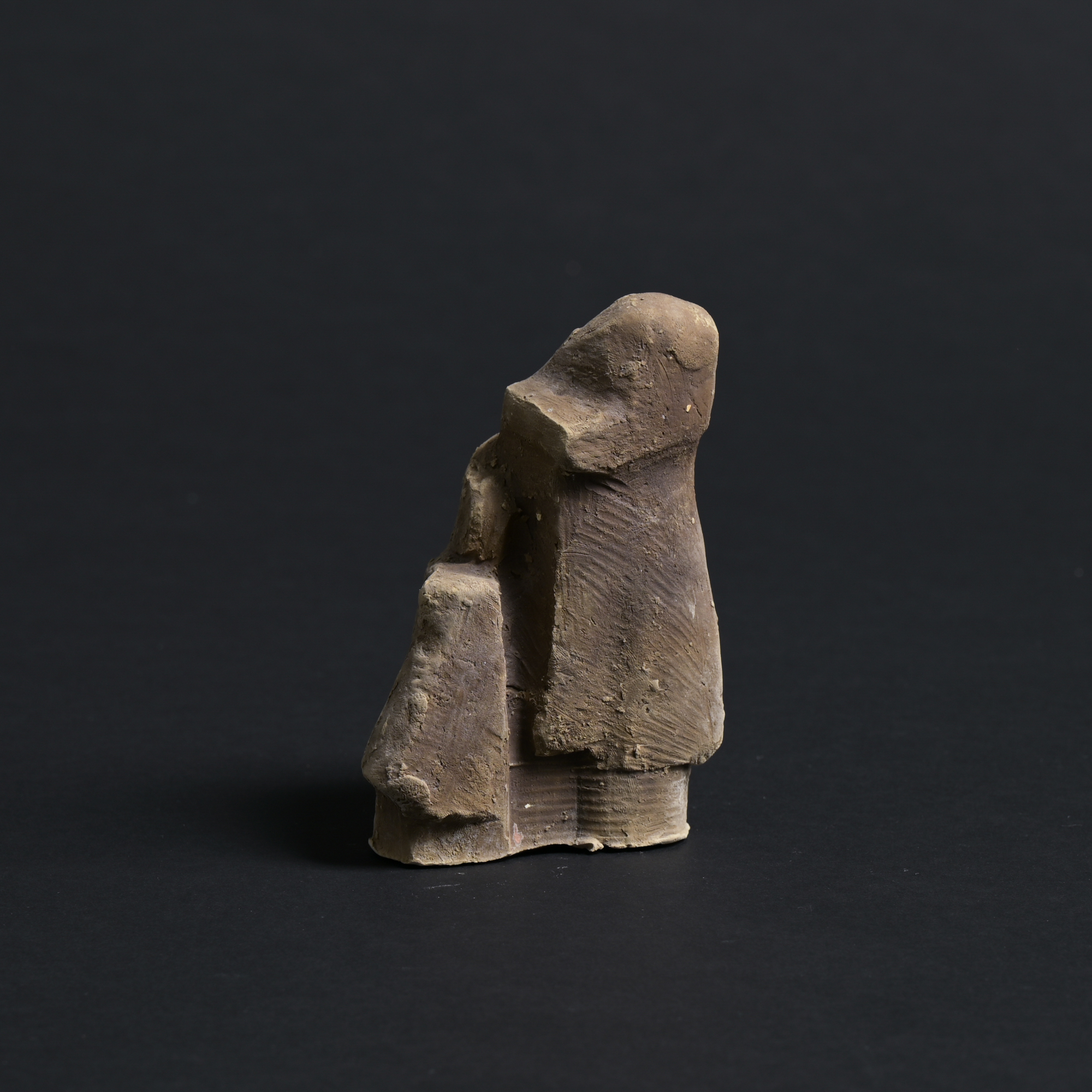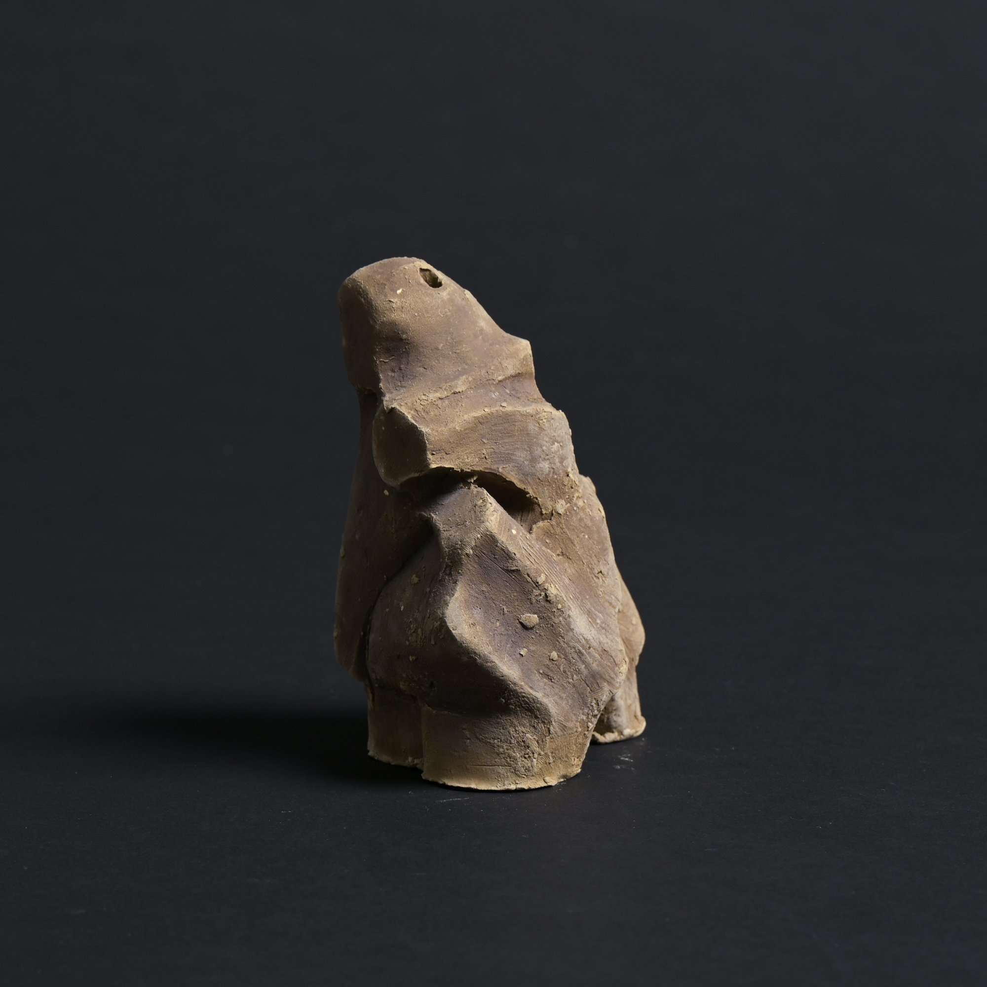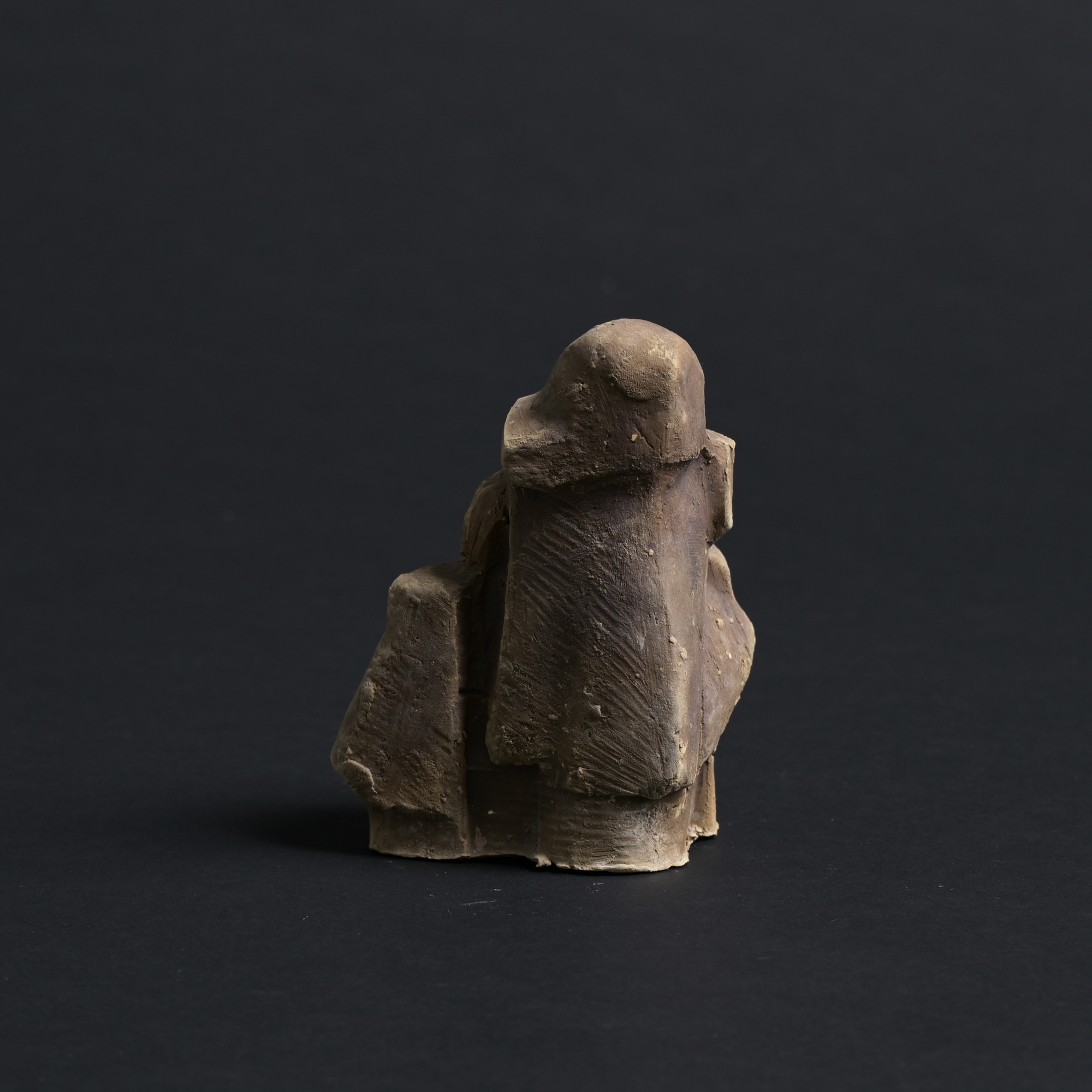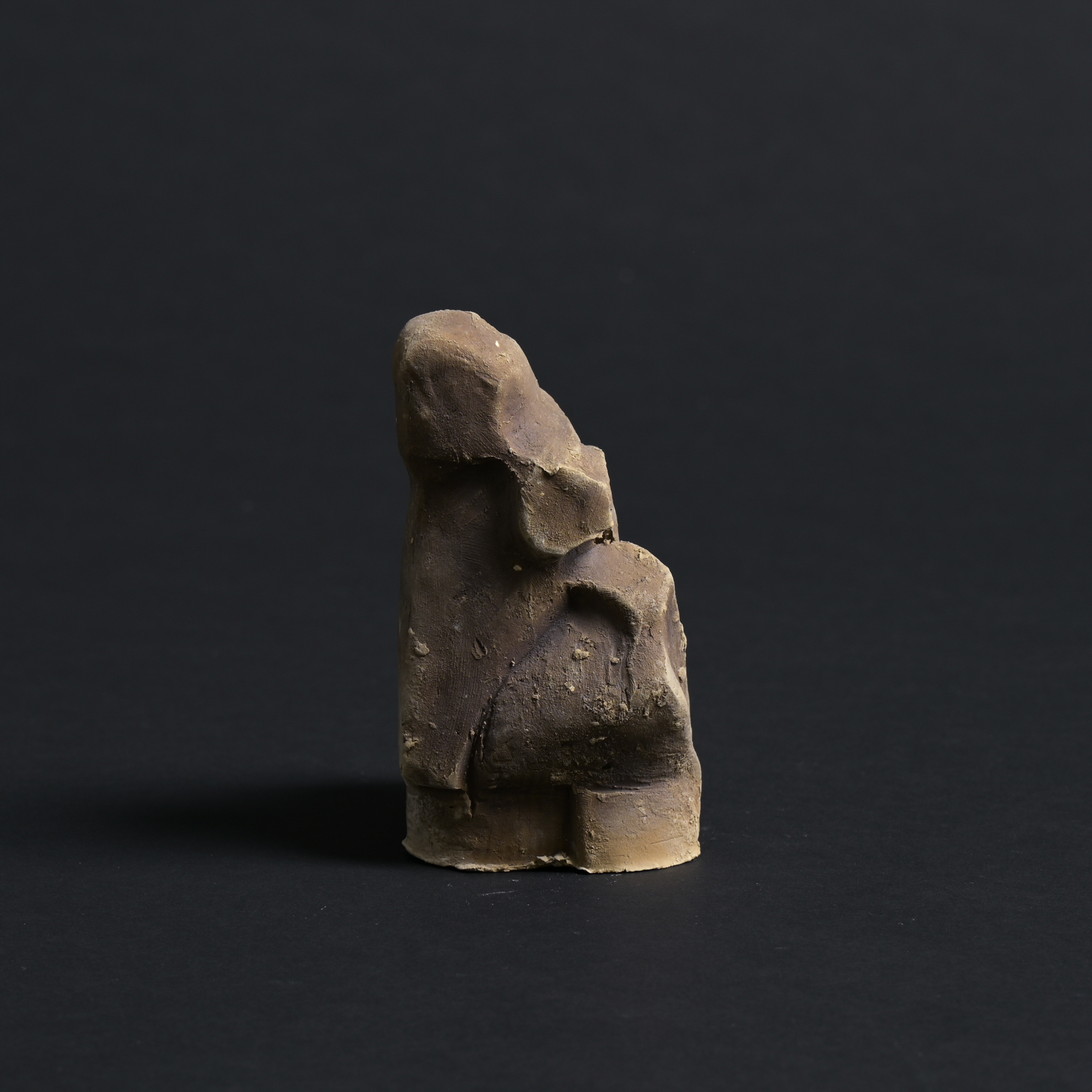 The sculpture has a rough clay finish. It is a unique piece, that shows a preparation part of this artist’s process.
