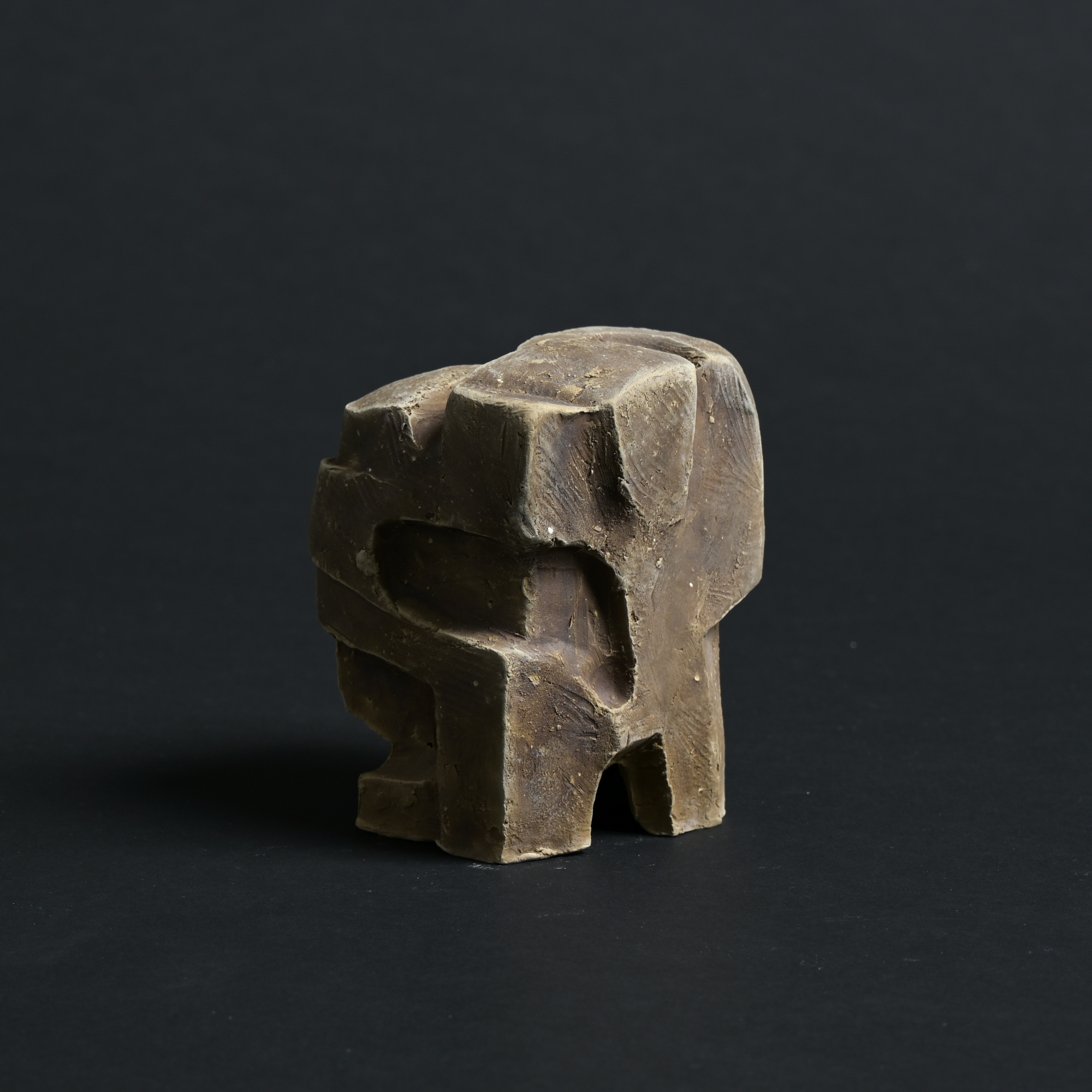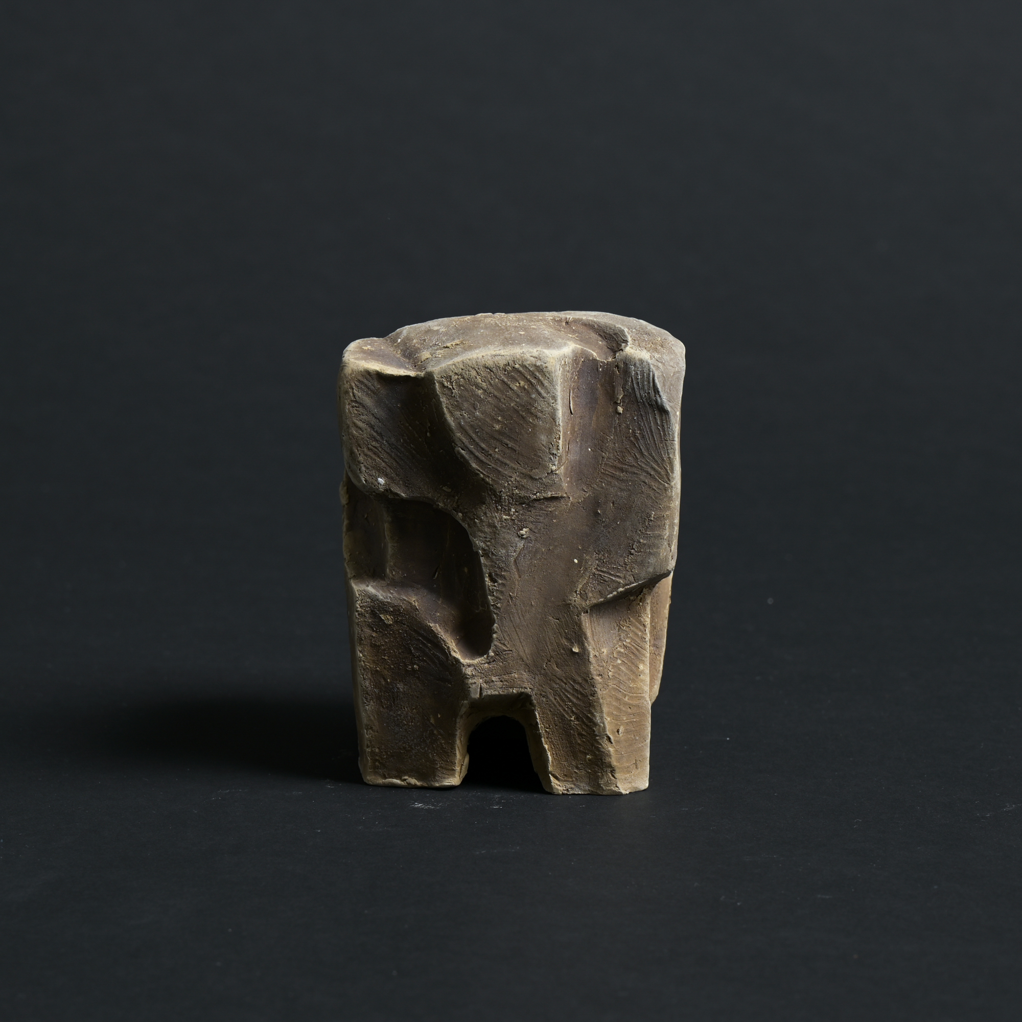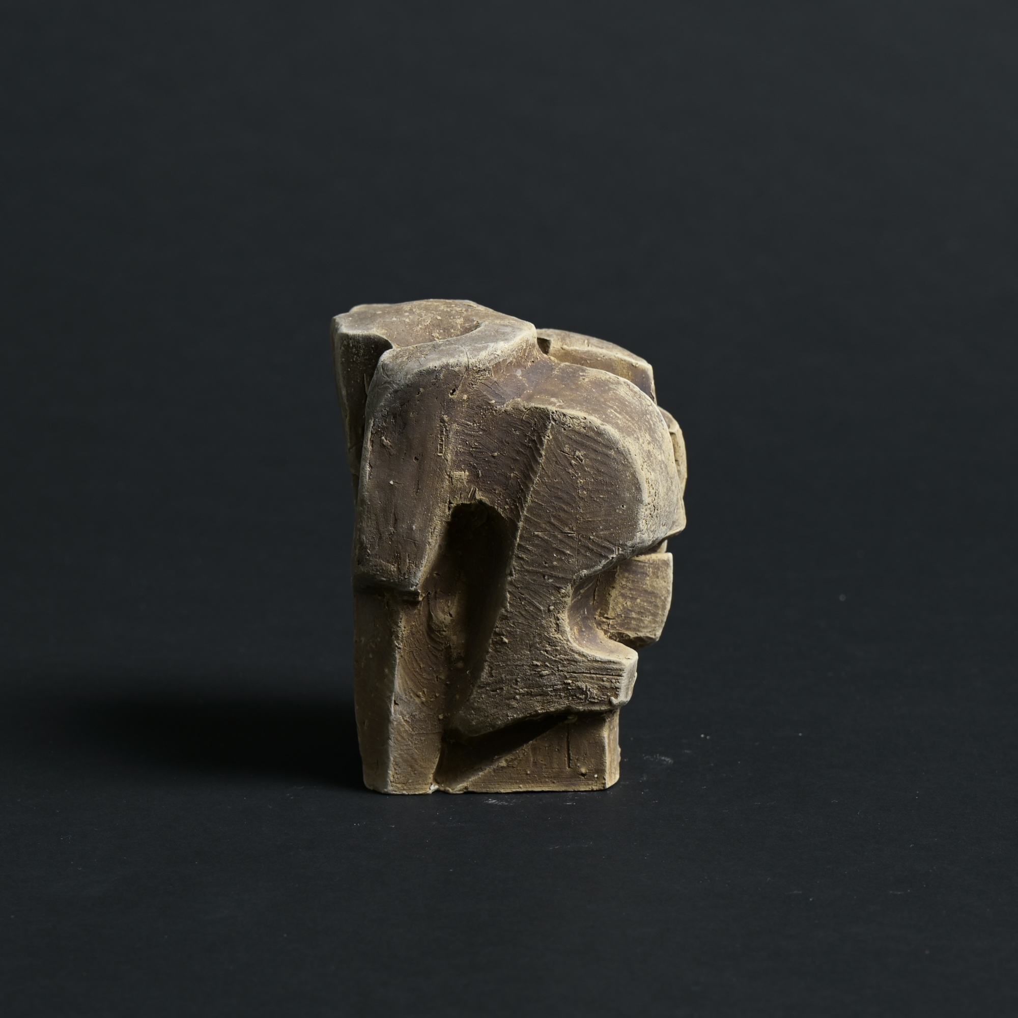 The sculpture has a rough clay finish. It is a unique piece, that shows a preparation part of this artist’s process.