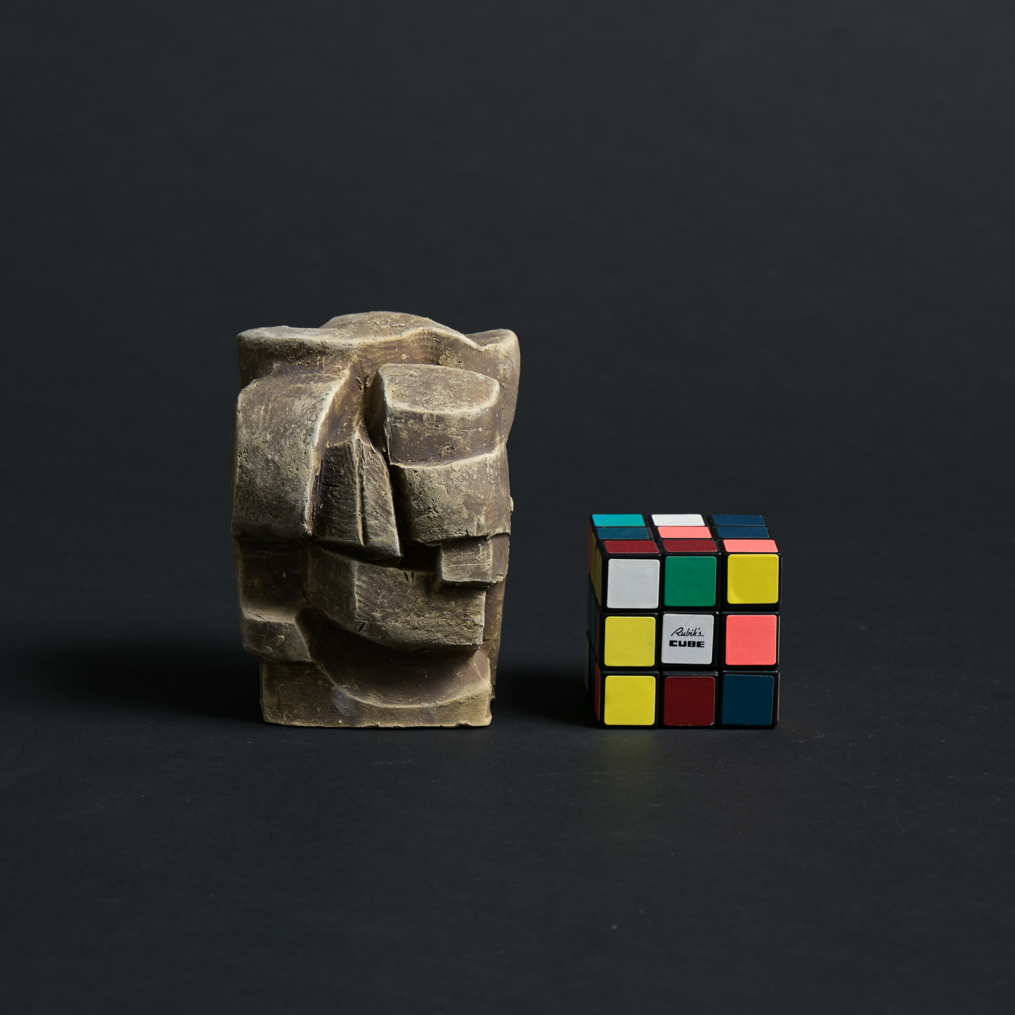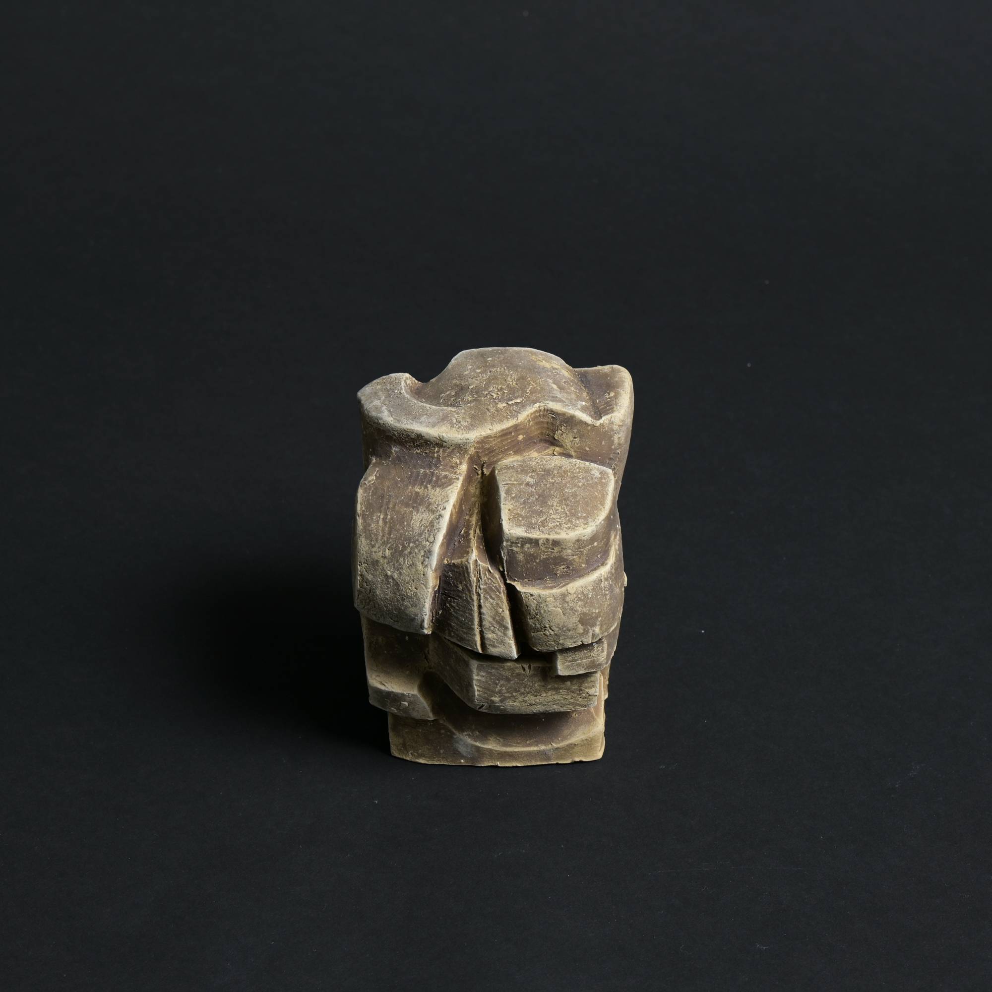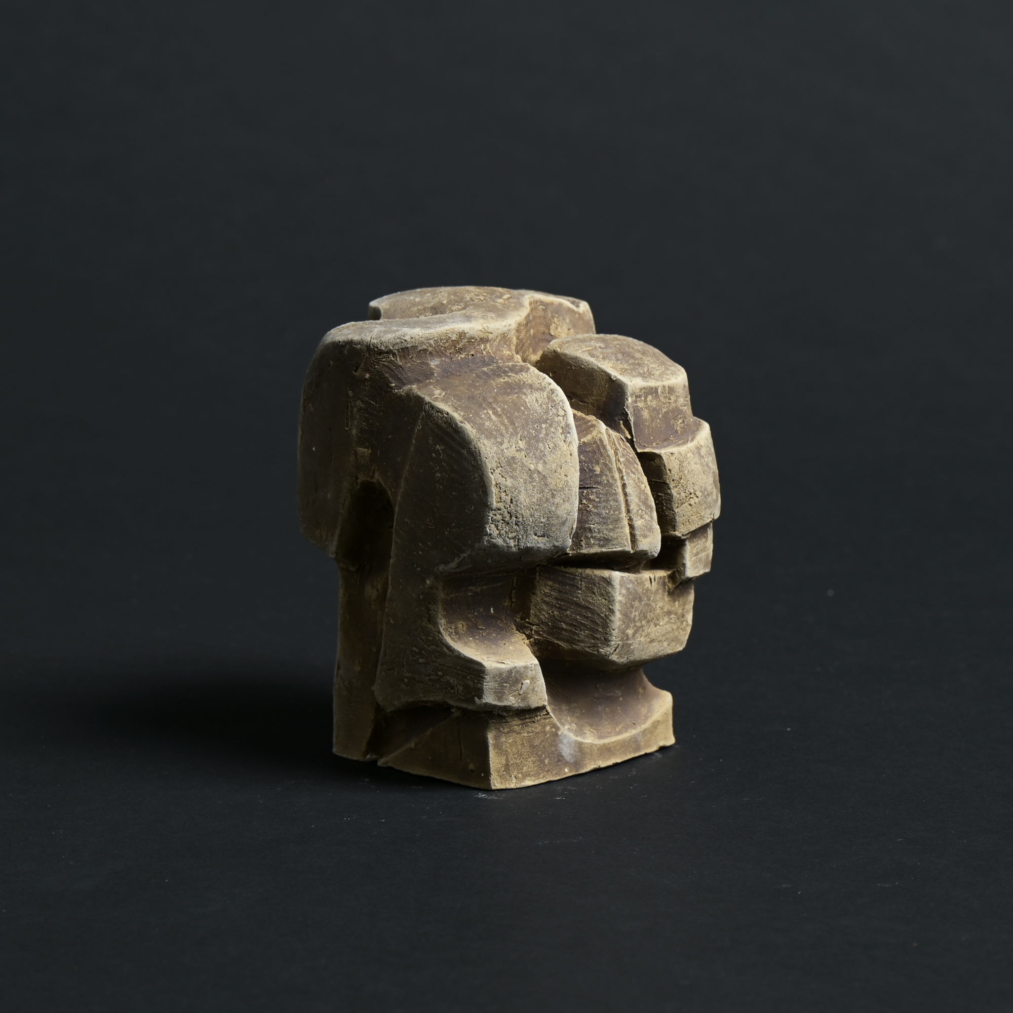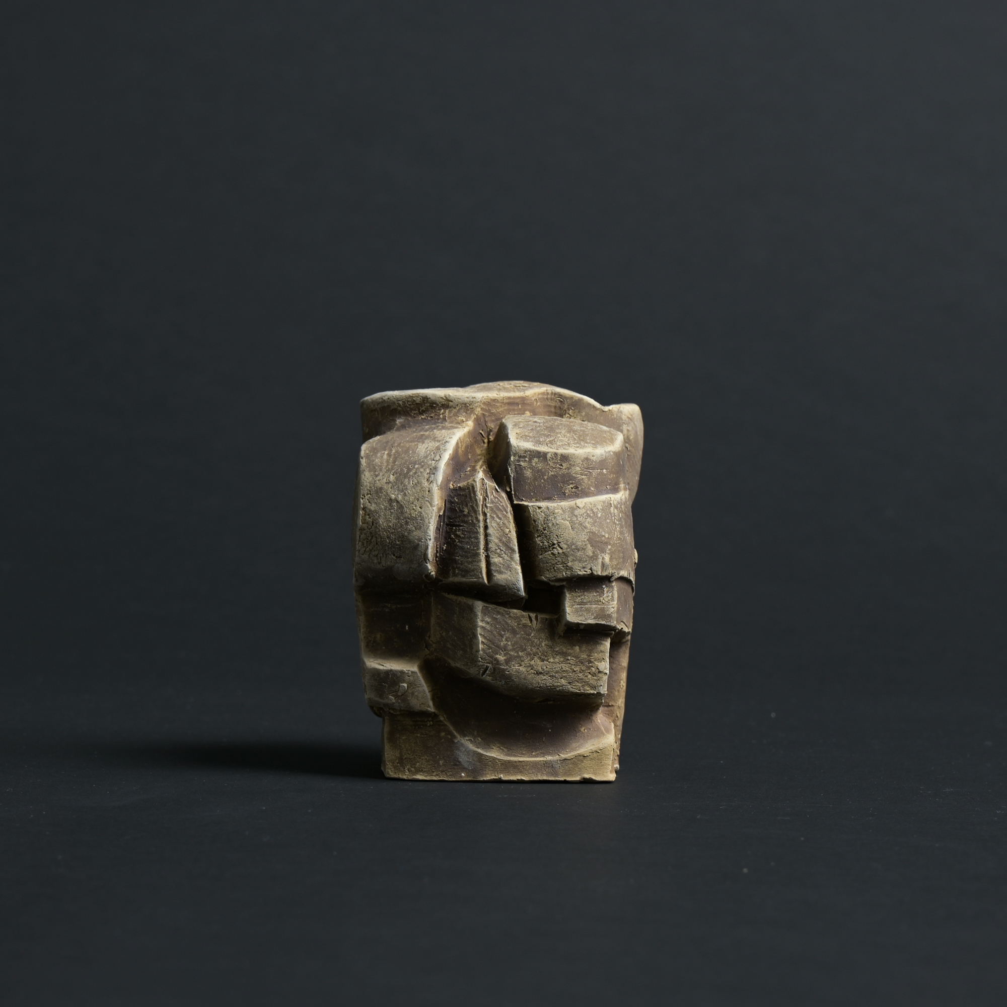 The sculpture has a rough clay finish. It is a unique piece, that shows a preparation part of this artist’s process.