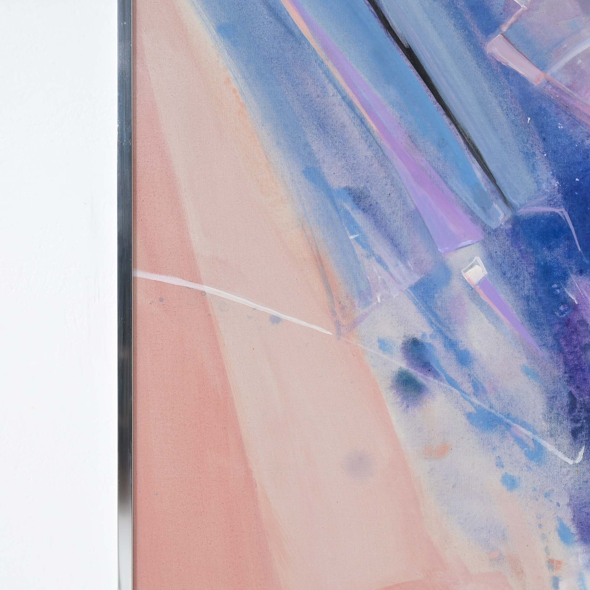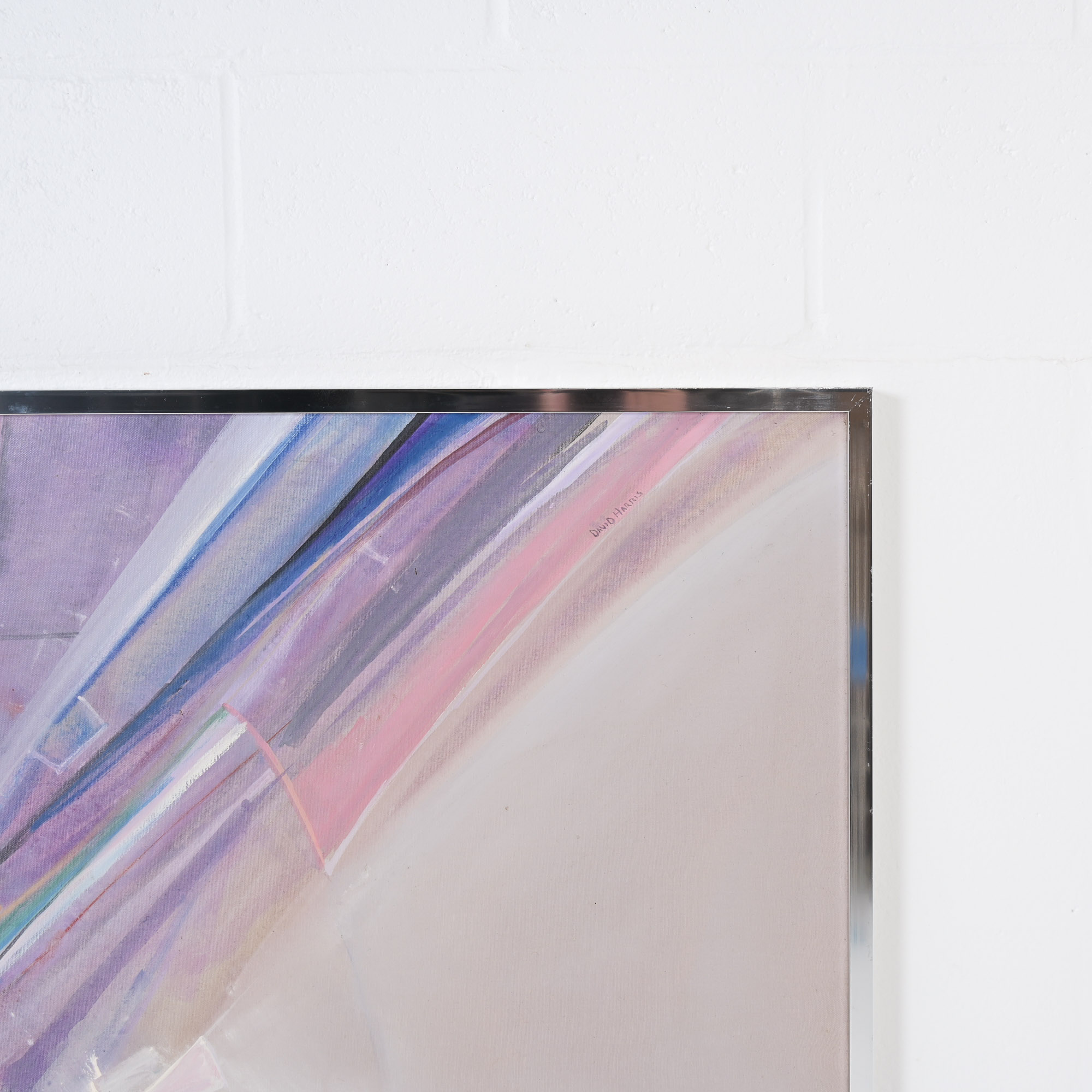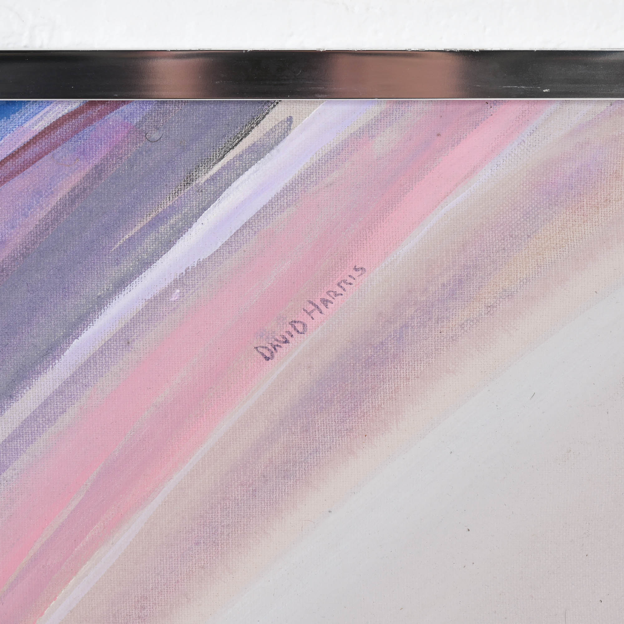 This abstract painting was made by David Harris. It is an oil on canvas and is signed by the artist.