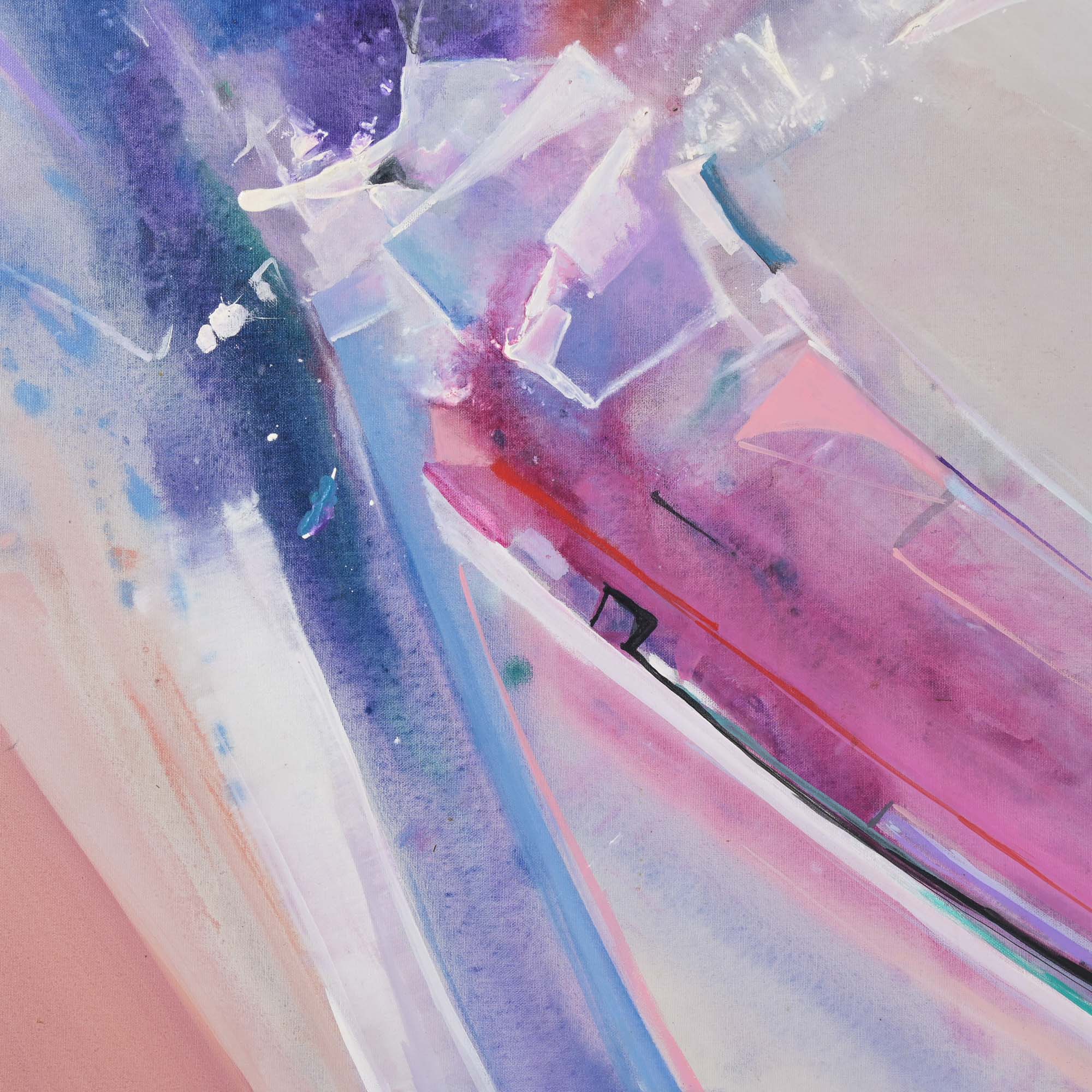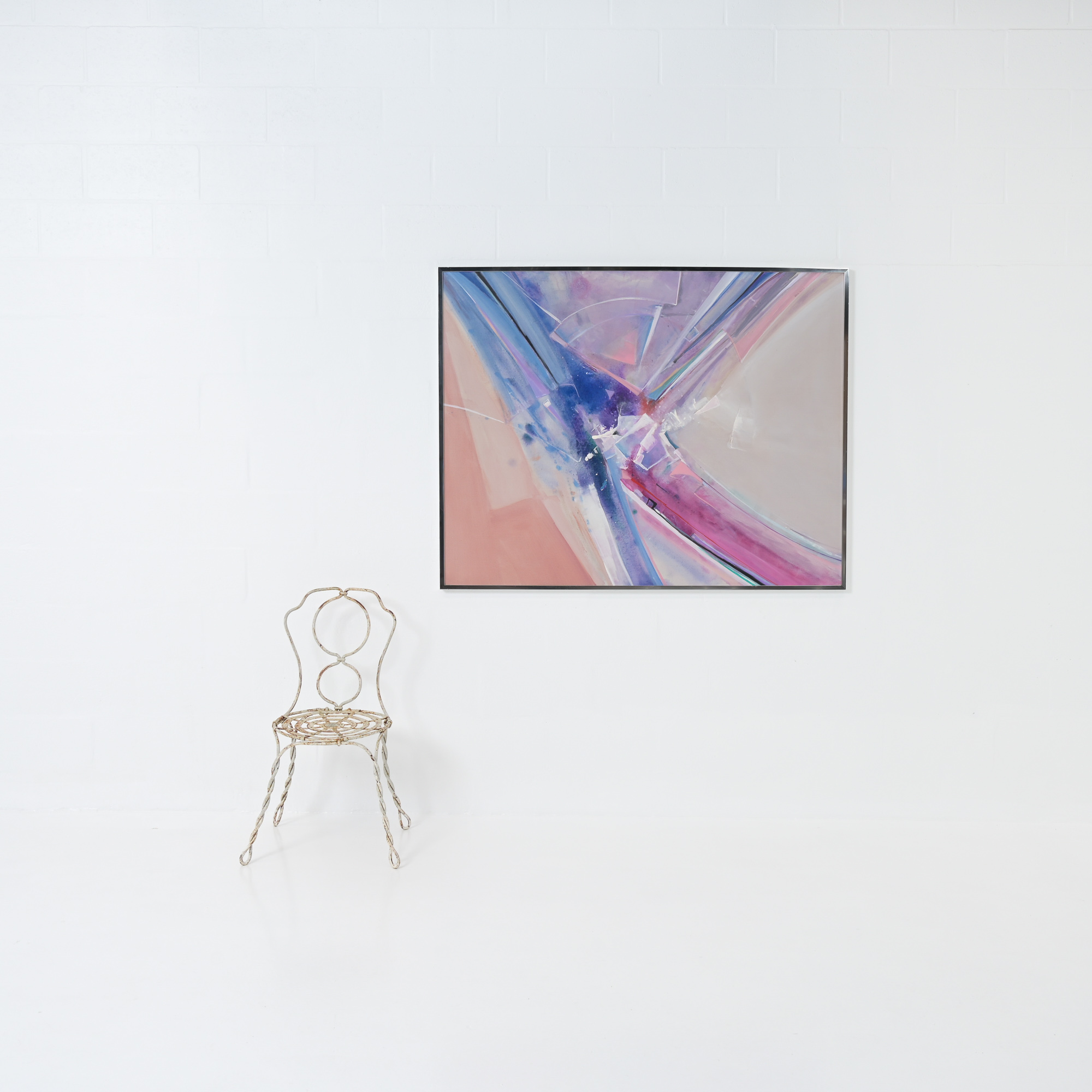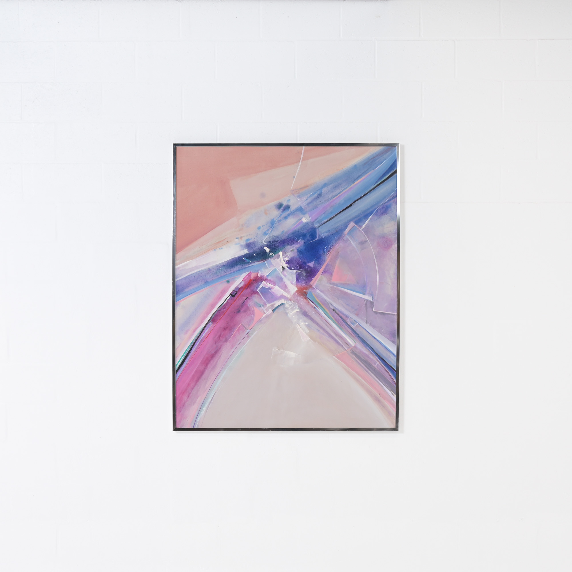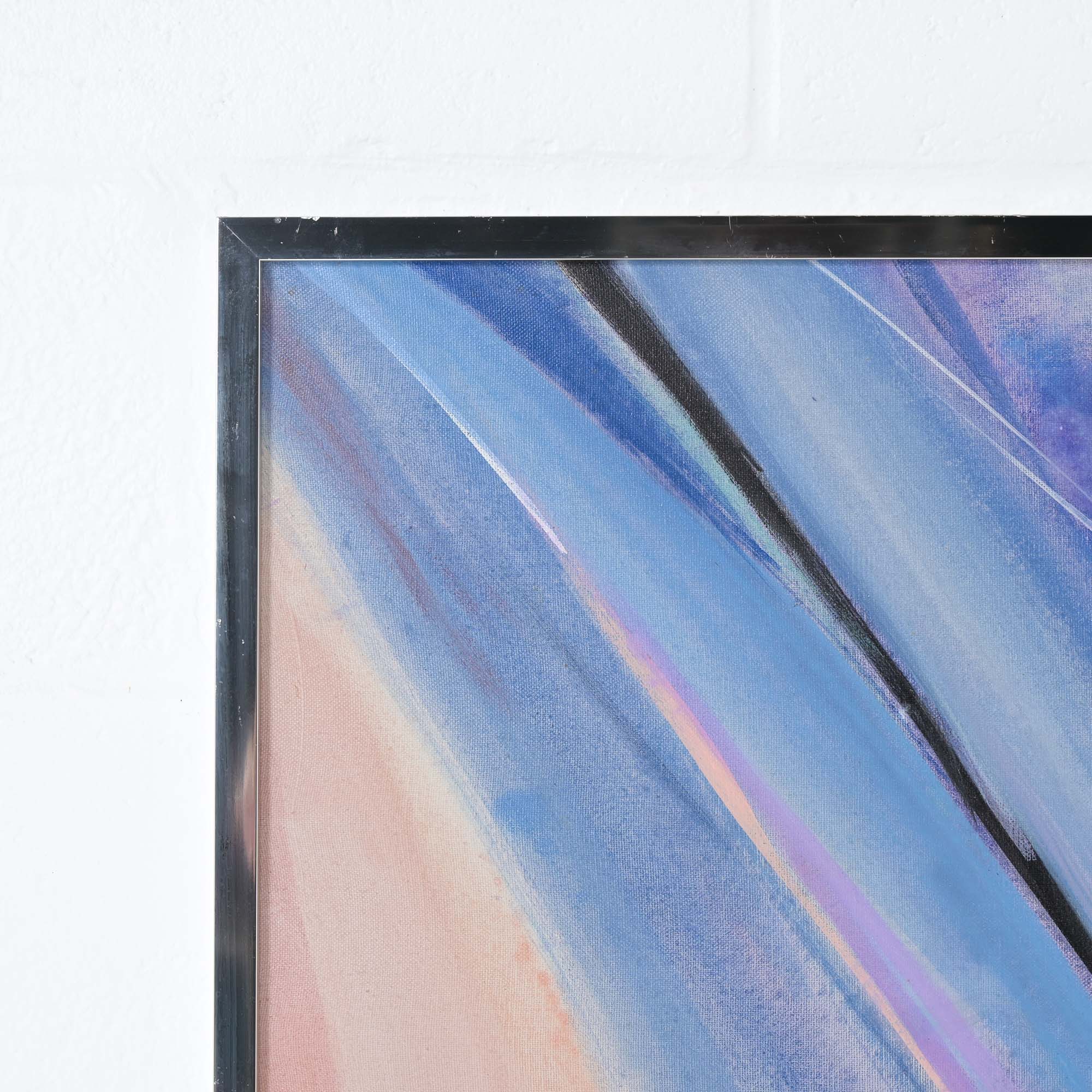 This abstract painting was made by David Harris. It is an oil on canvas and is signed by the artist.