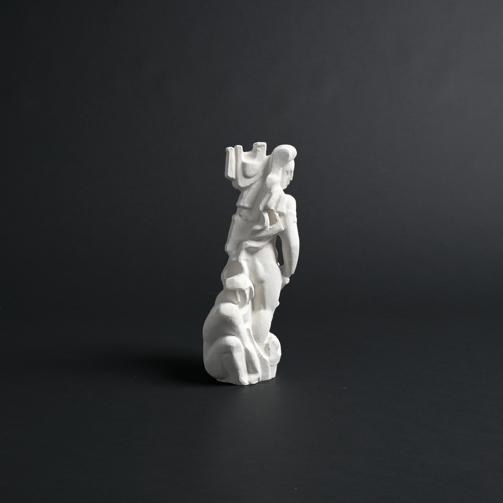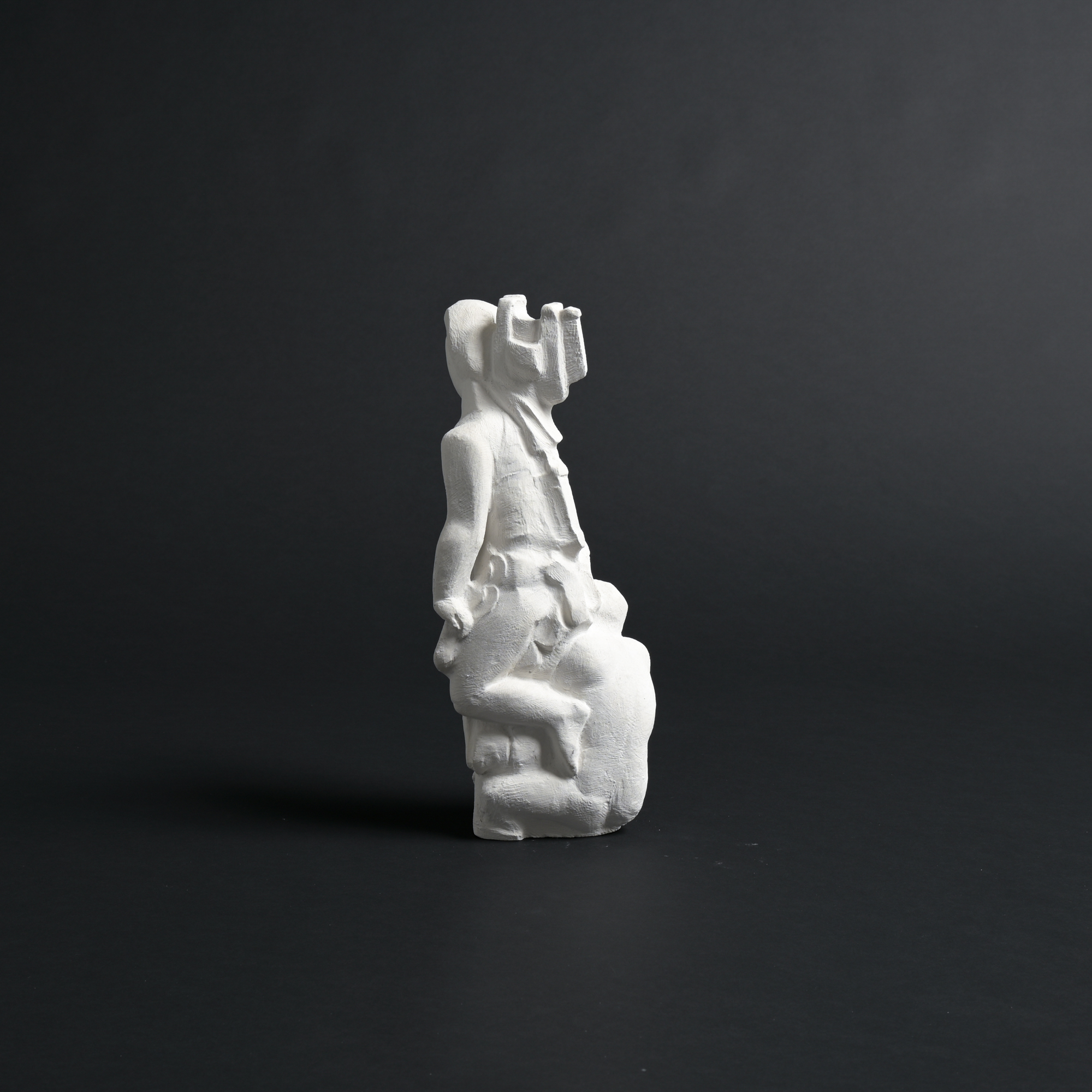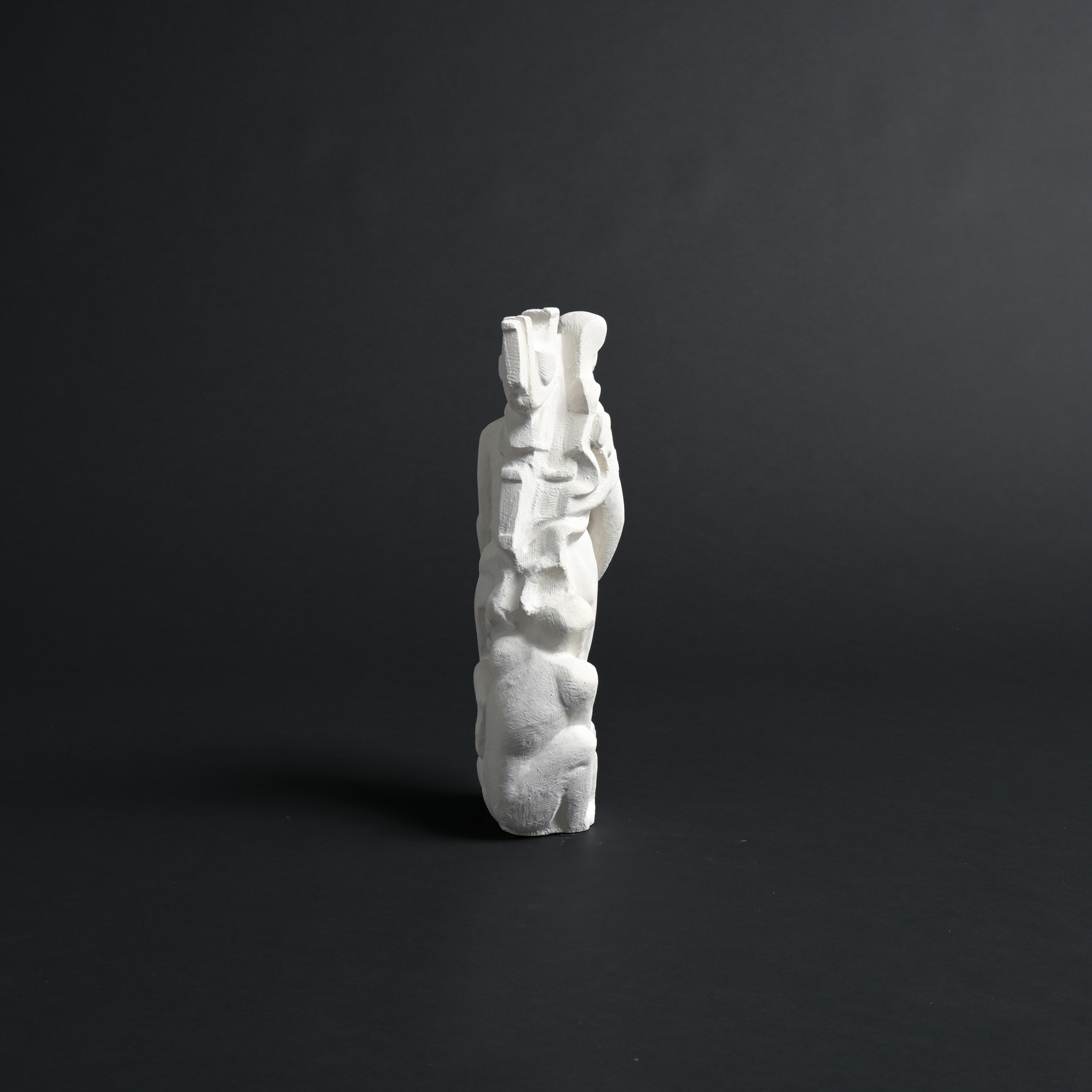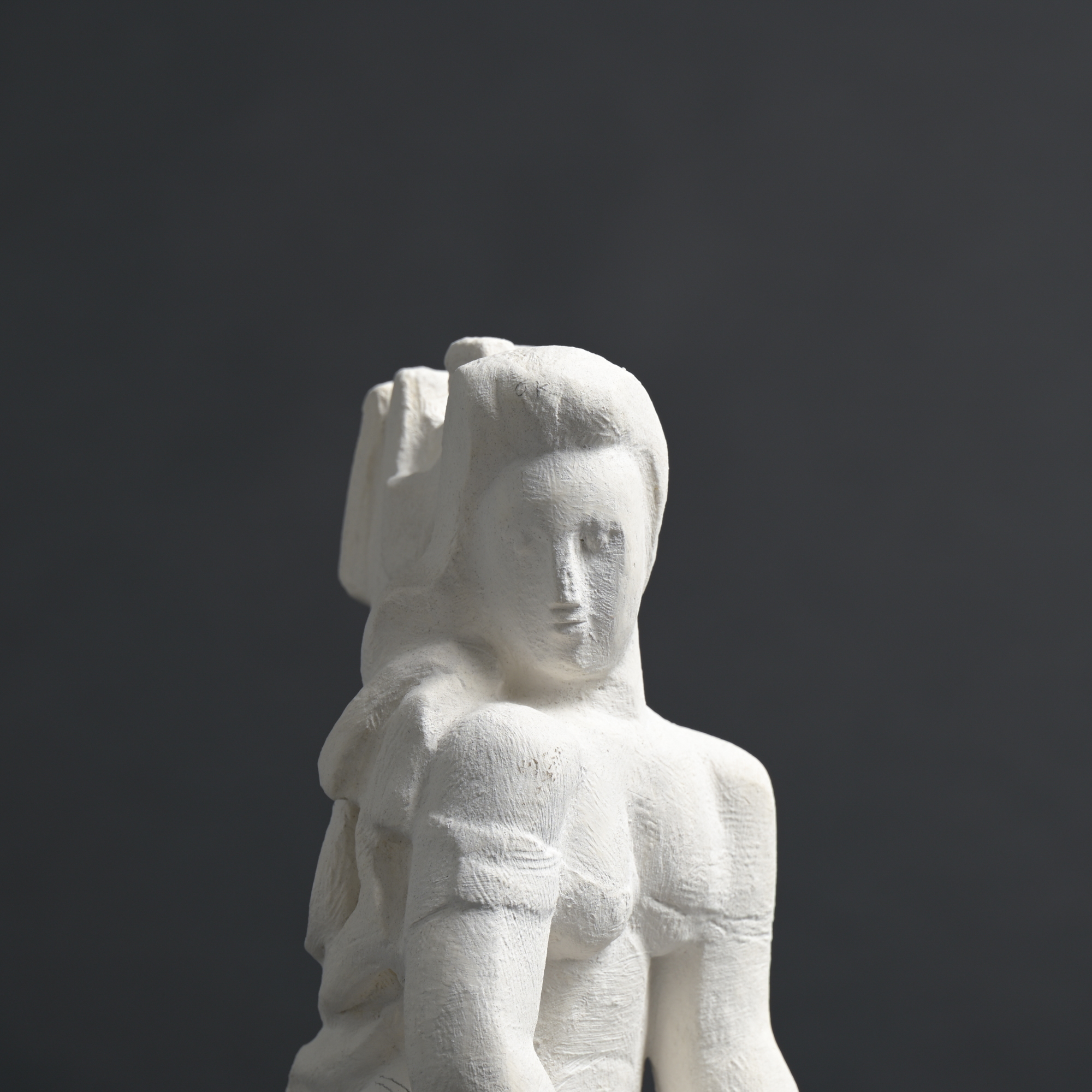 The sculpture has a rough plaster finish. It is a unique piece and one of the artist’s most recent works.