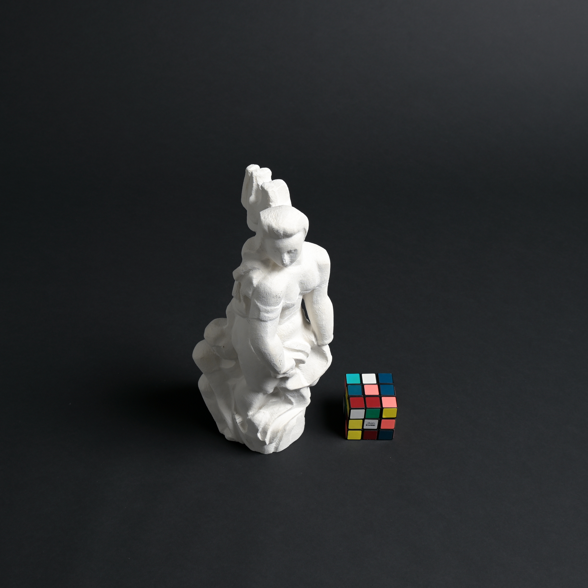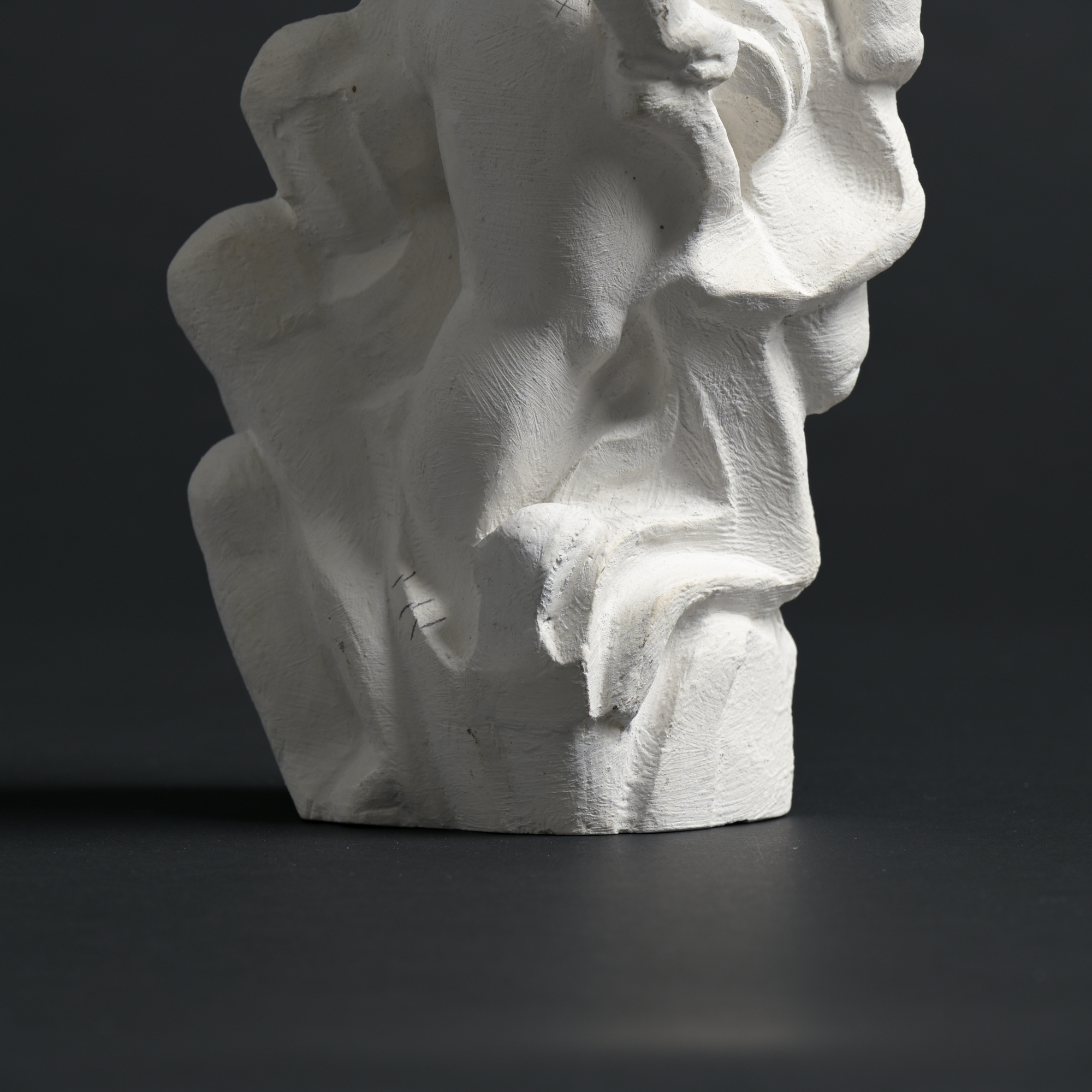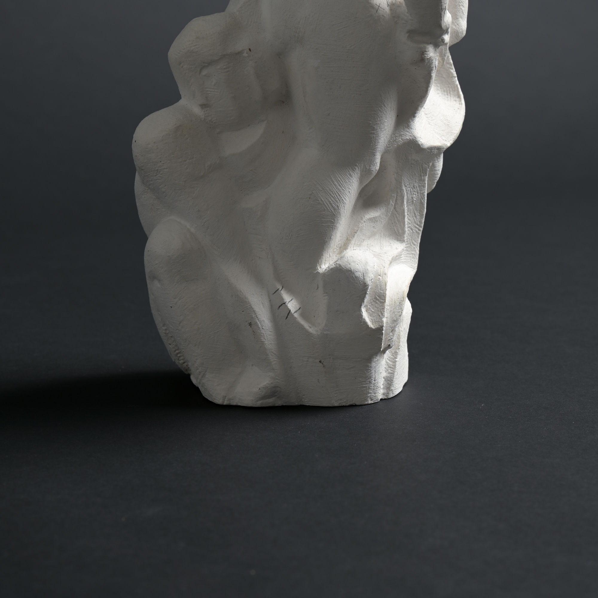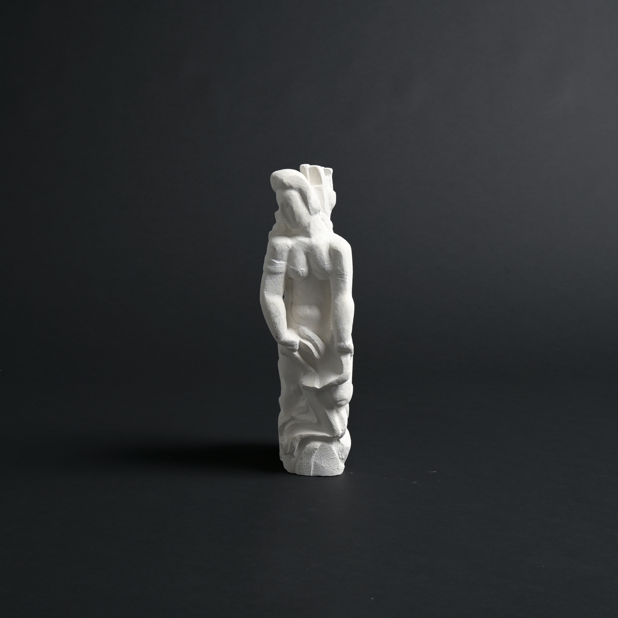 The sculpture has a rough plaster finish. It is a unique piece and one of the artist’s most recent works.