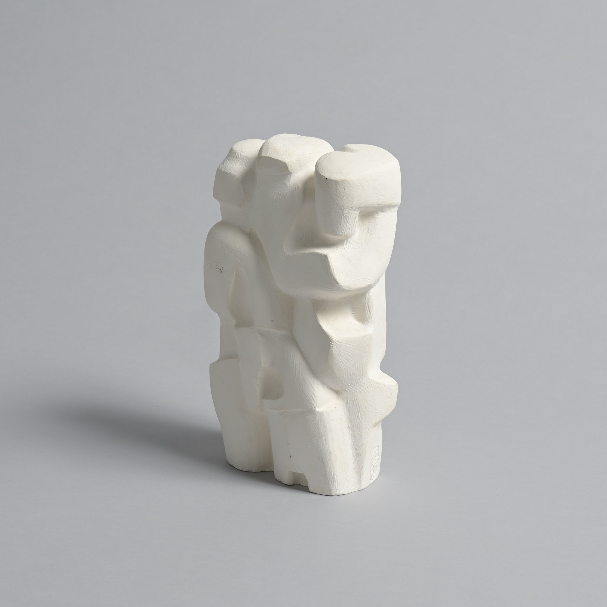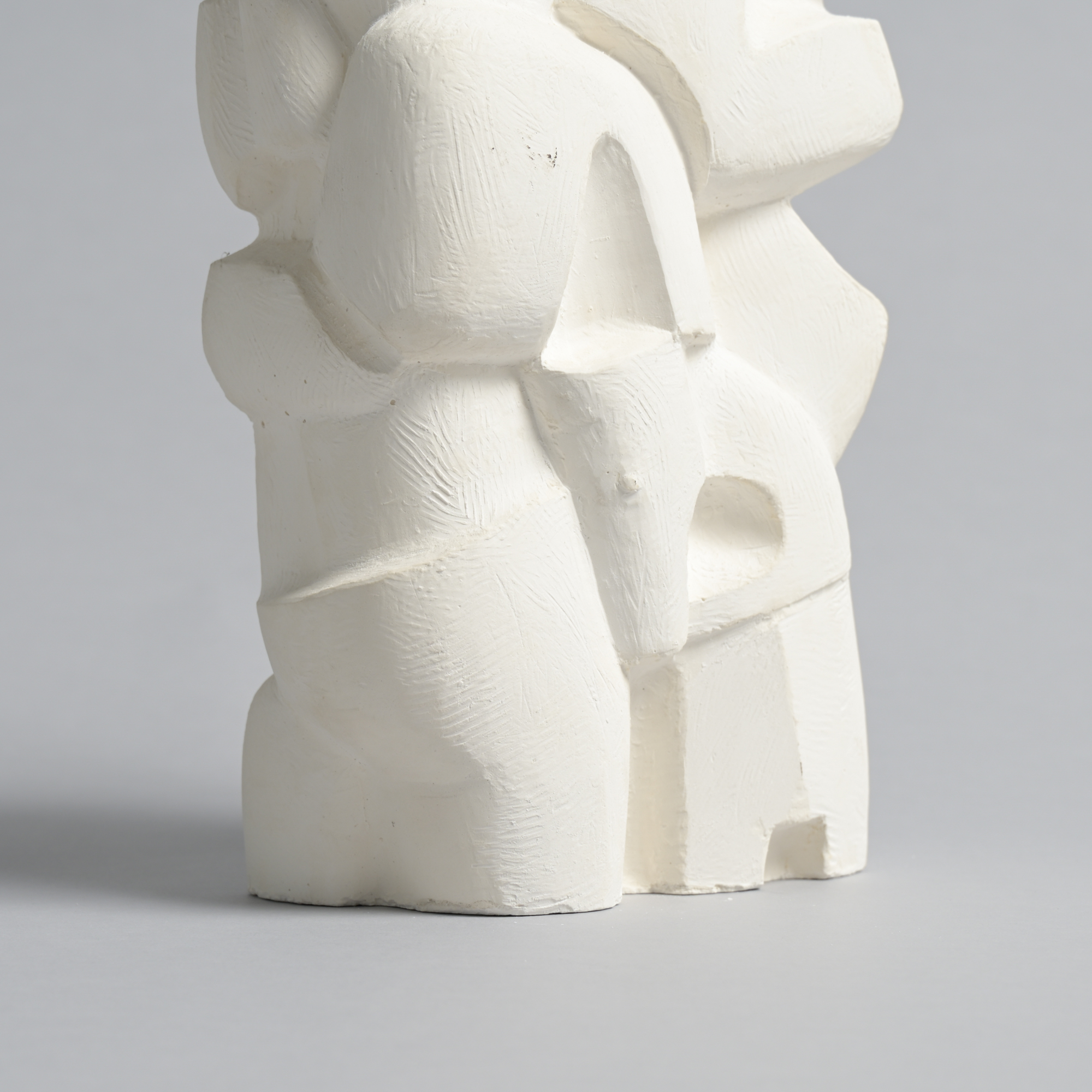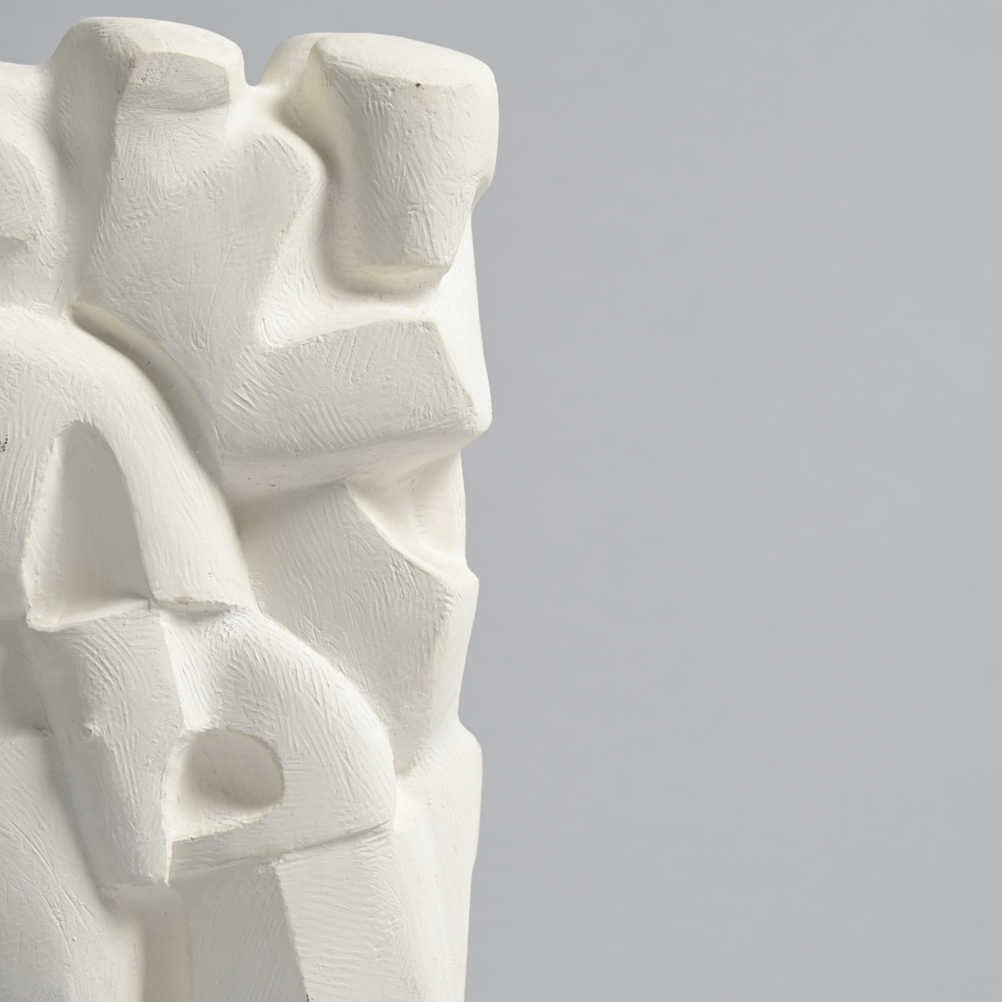 This abstract sculpture in plaster was made by the Belgian artist Jan Keustermans.