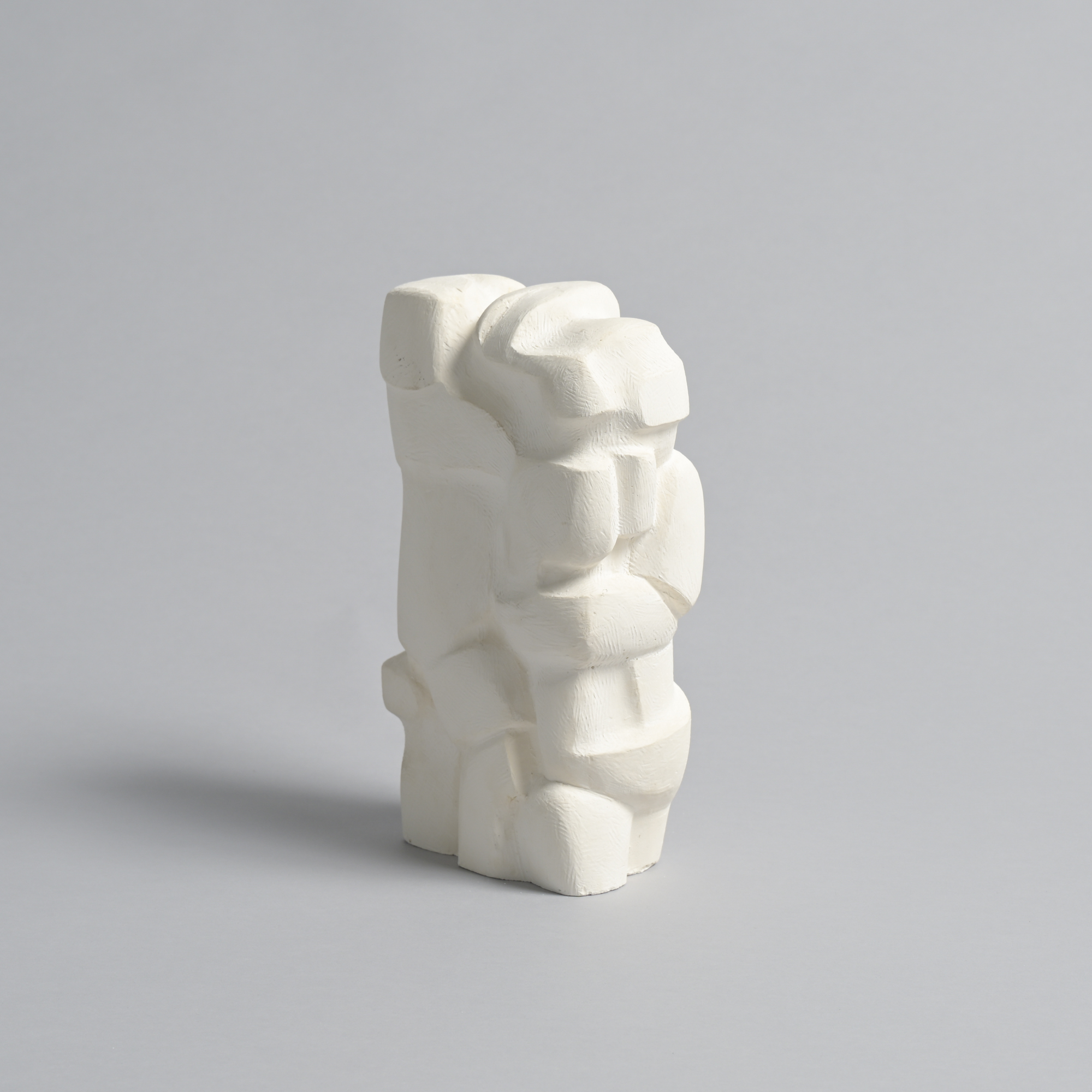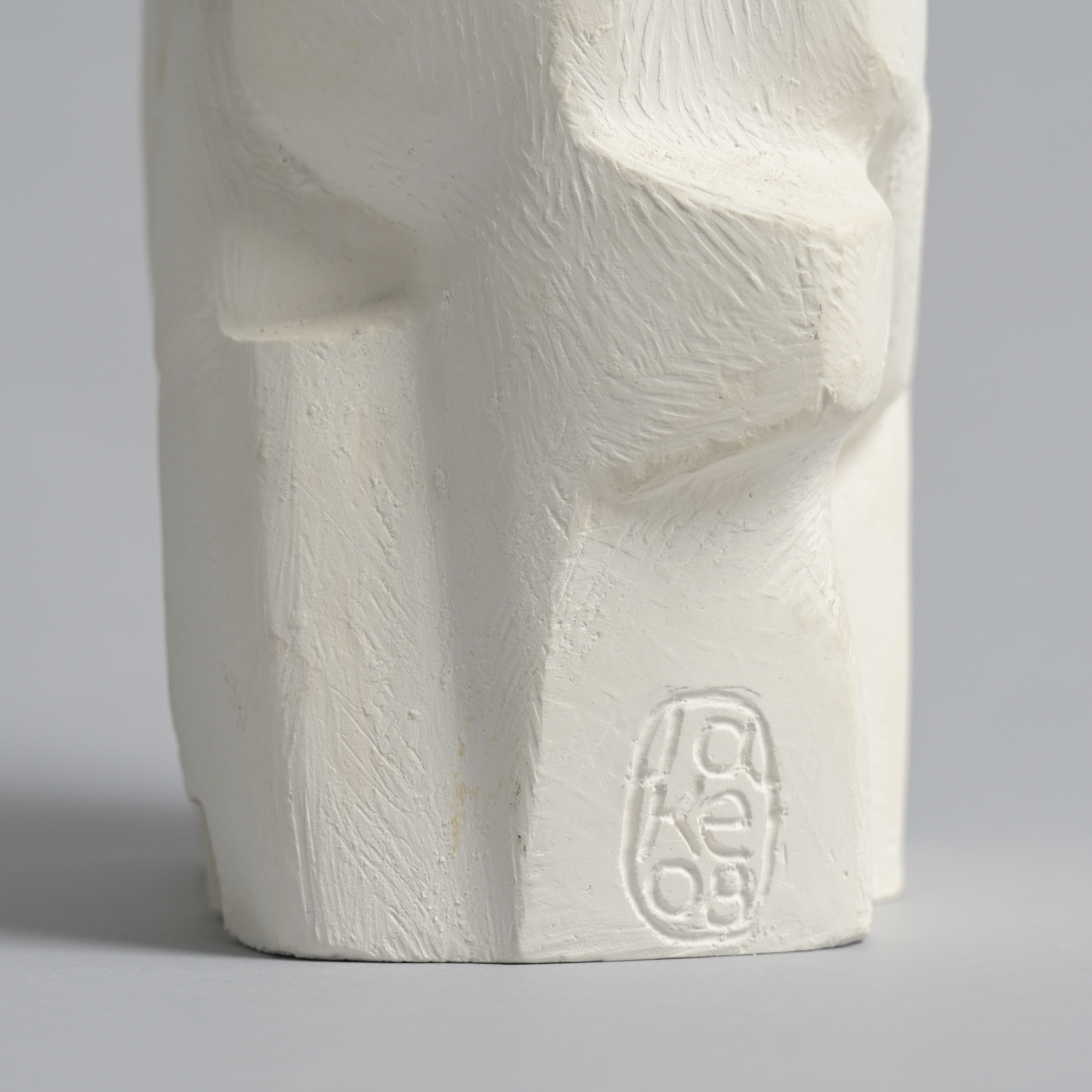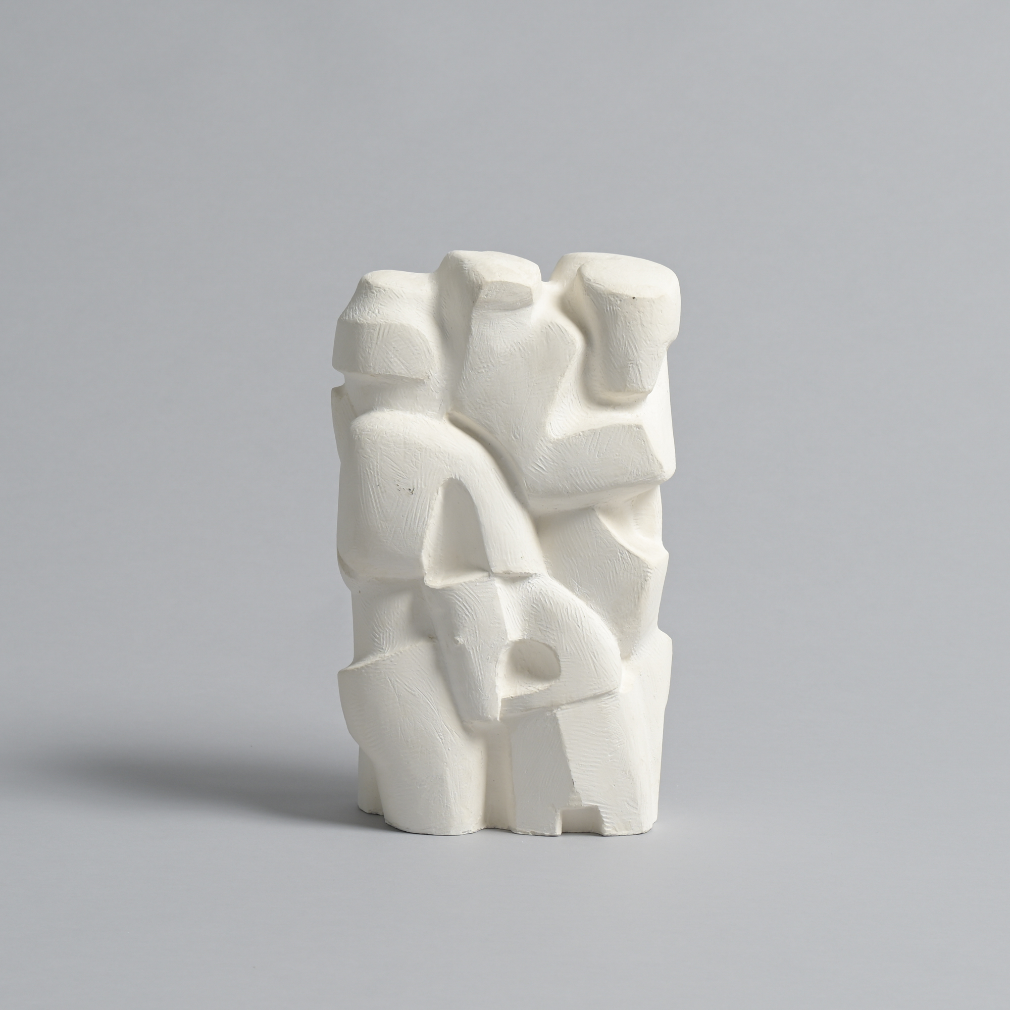 This abstract sculpture in plaster was made by the Belgian artist Jan Keustermans.