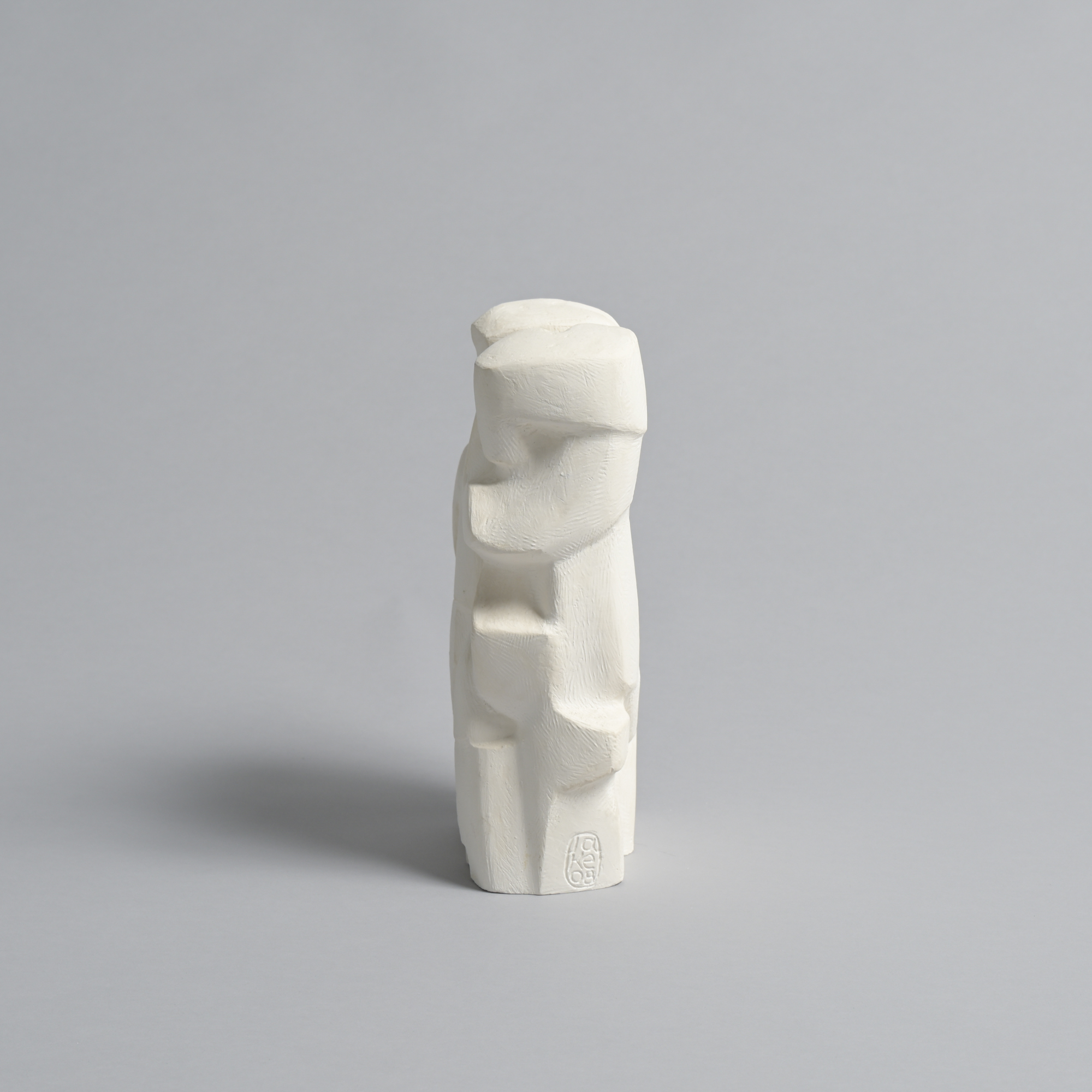 The sculpture has a rough plaster finish. It is a unique piece and one of the artist’s most recent works.