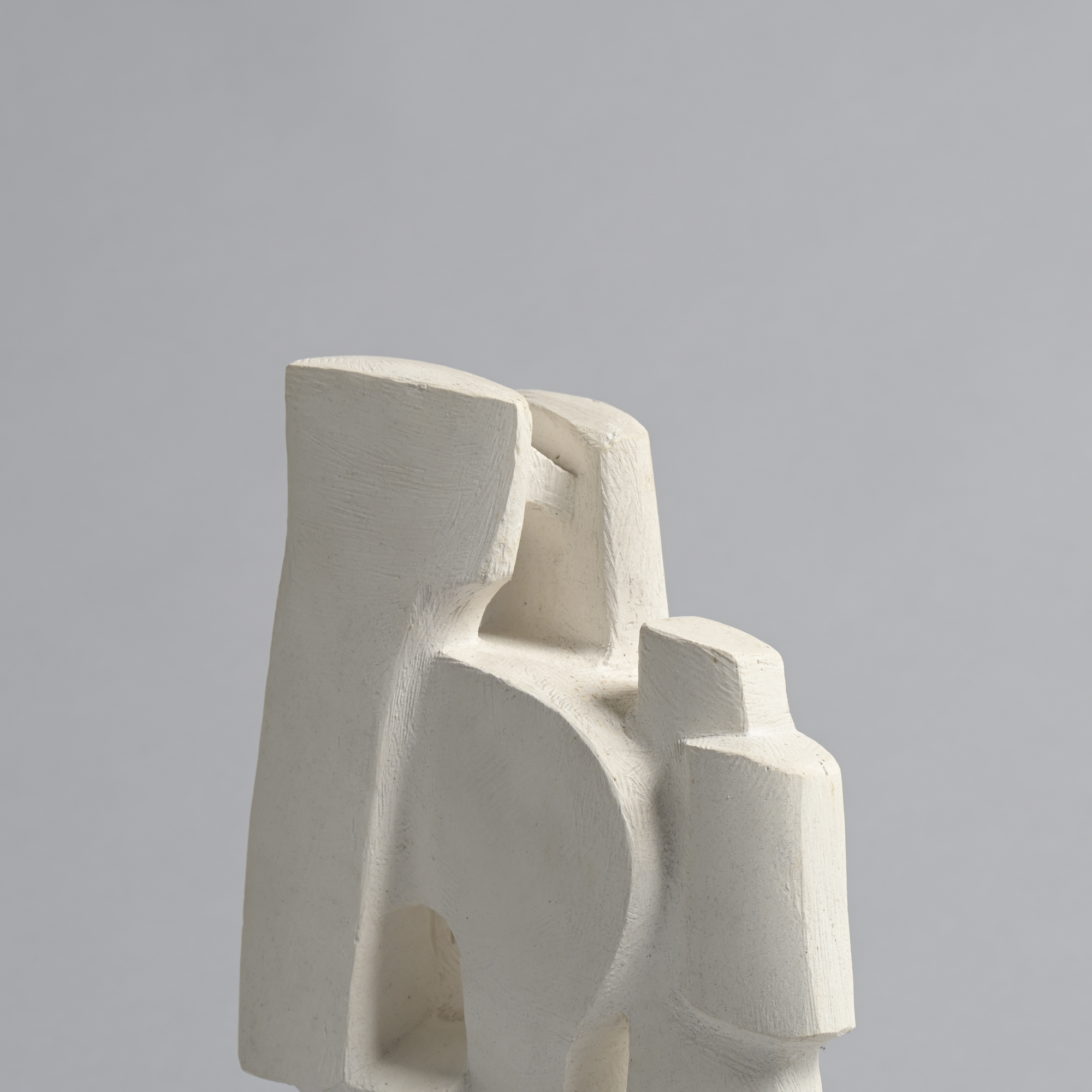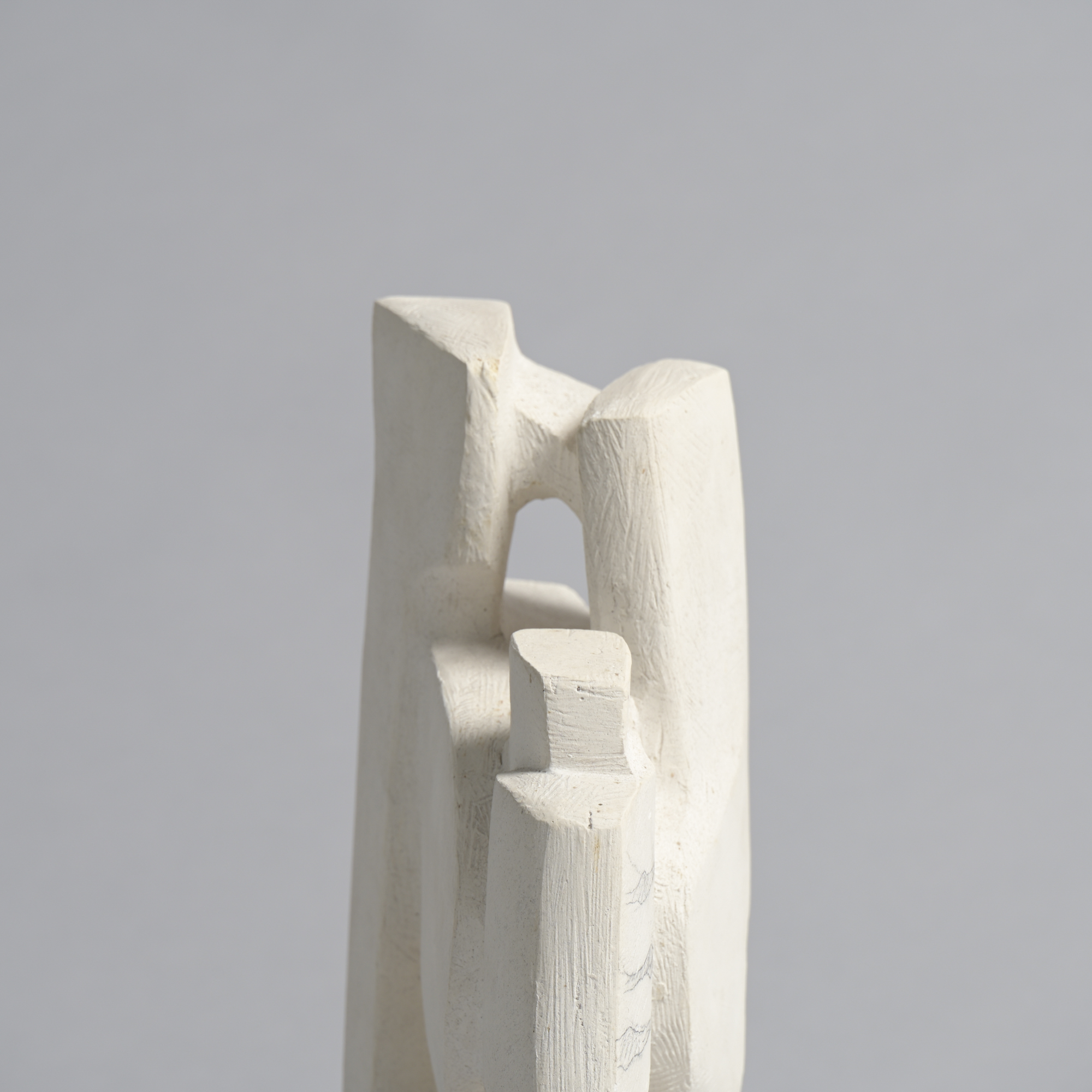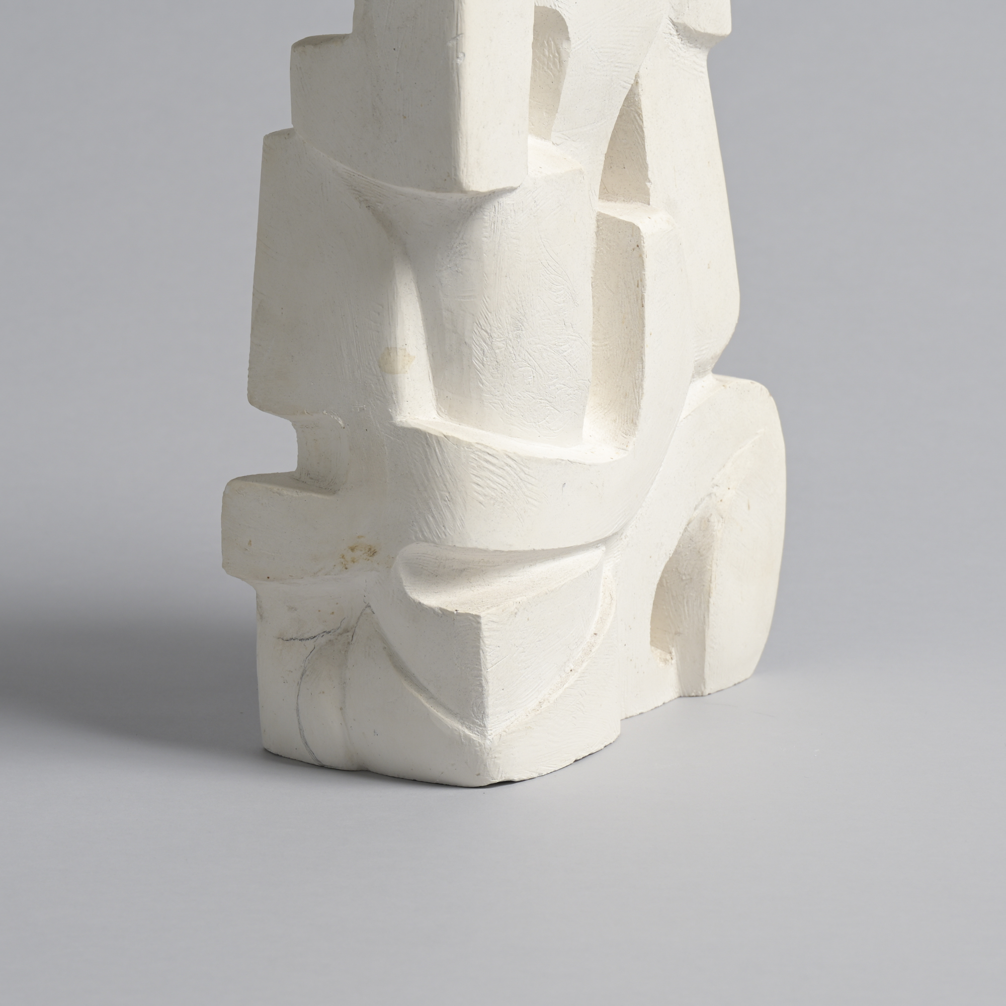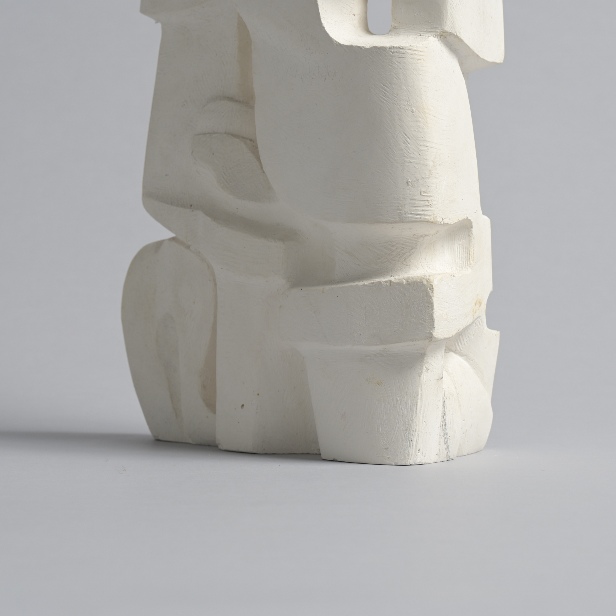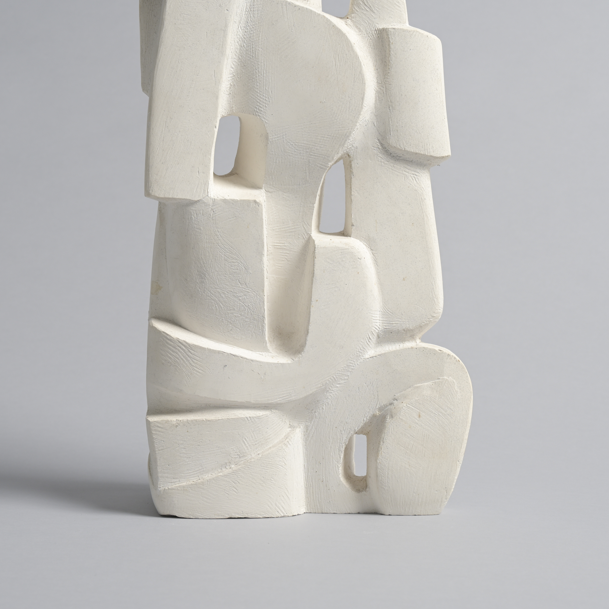 This abstract sculpture in plaster was made by the Belgian artist Jan Keustermans.