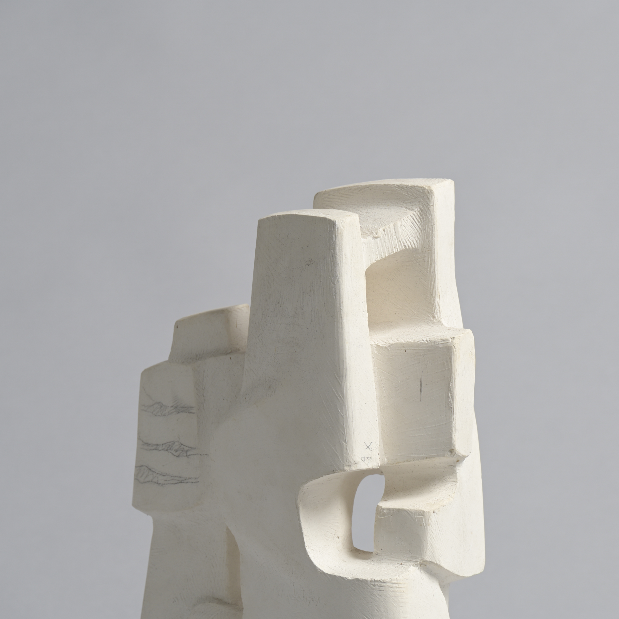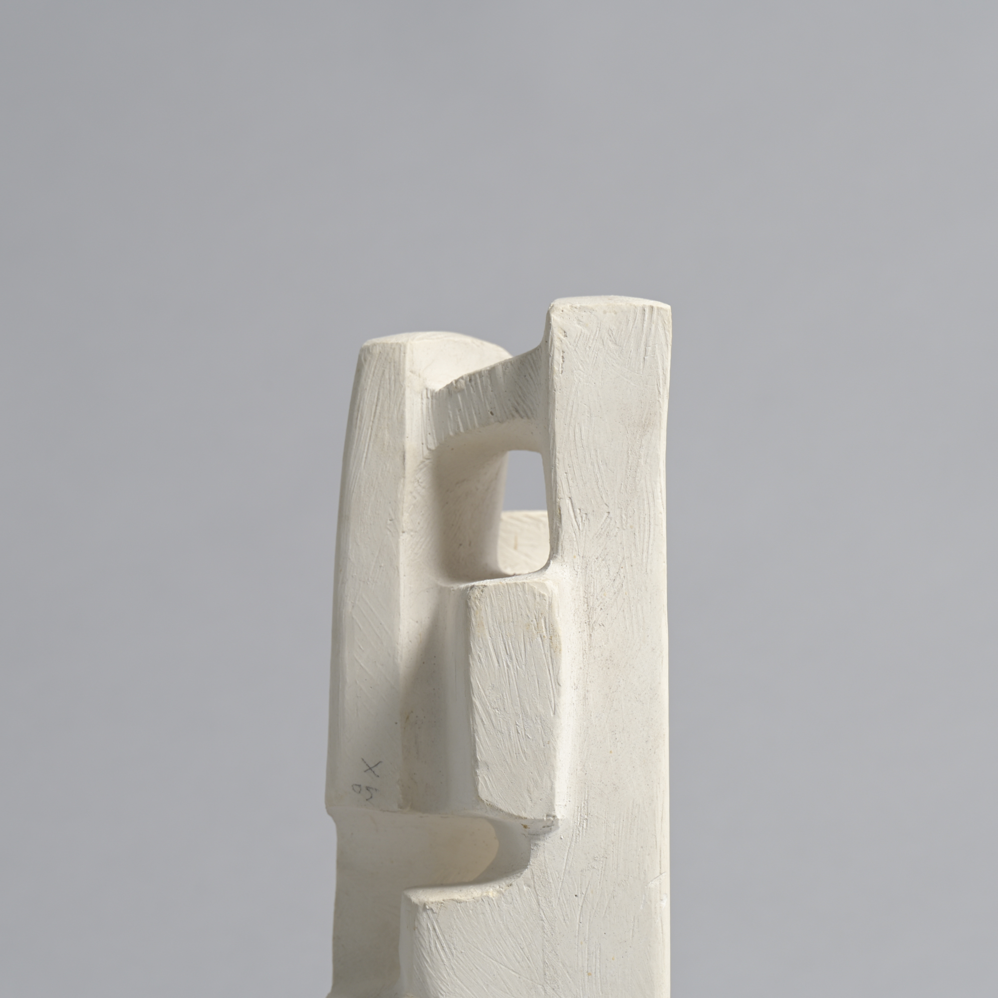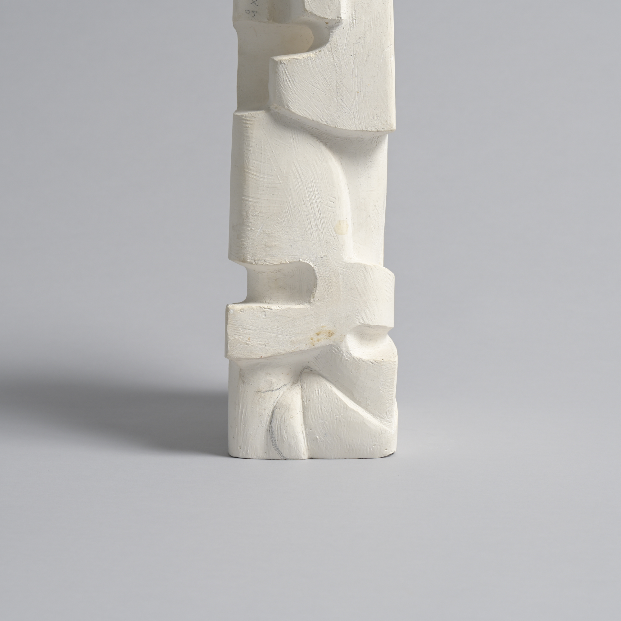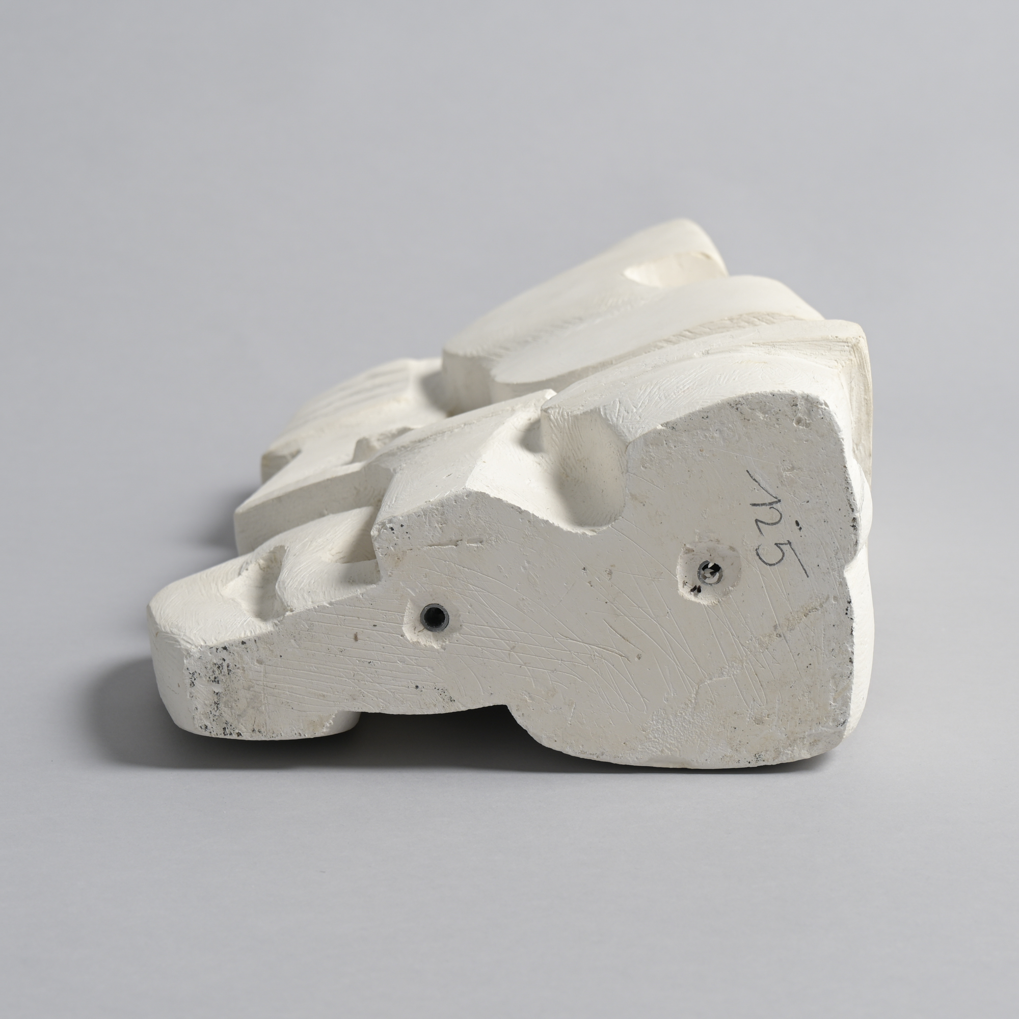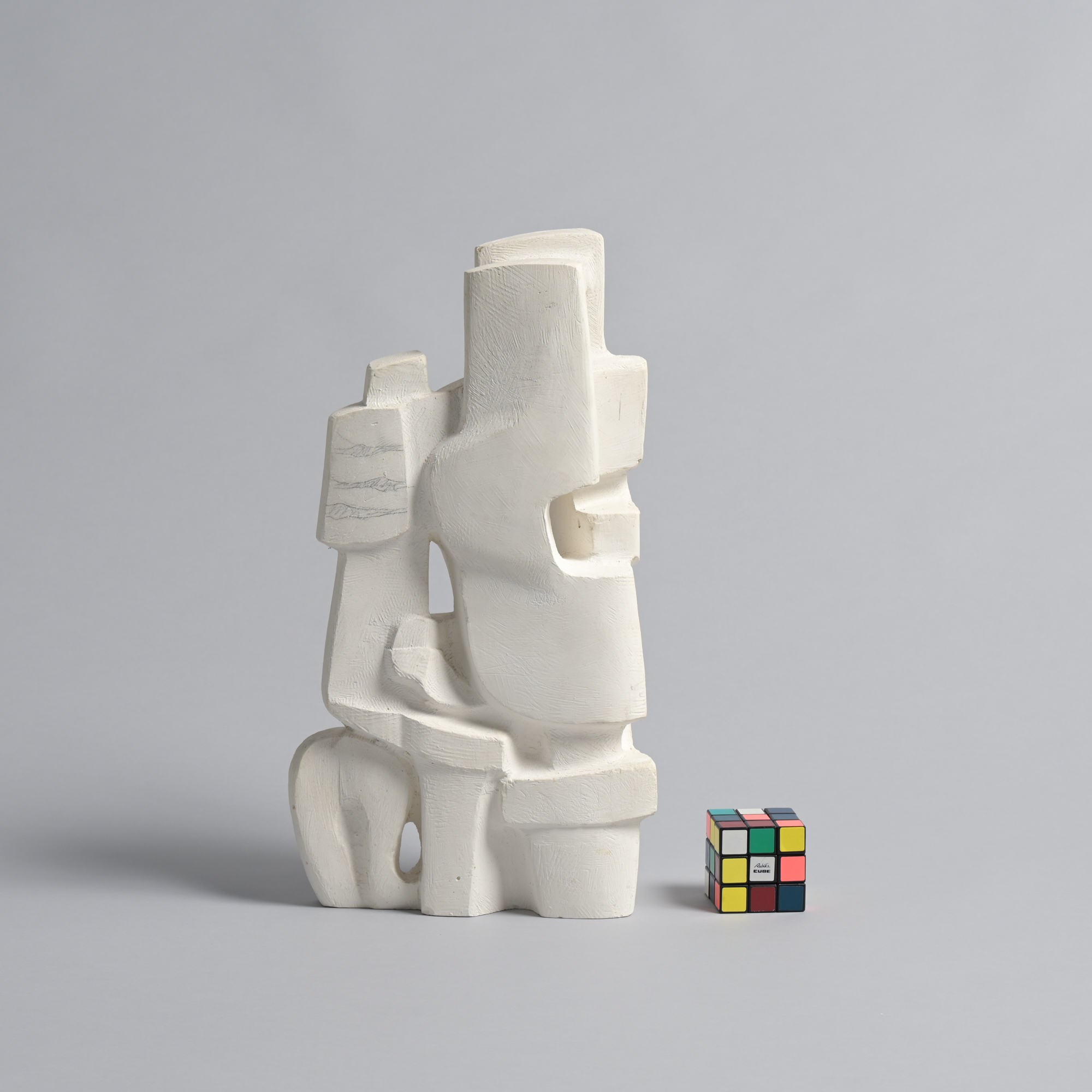This abstract sculpture in plaster was made by the Belgian artist Jan Keustermans.