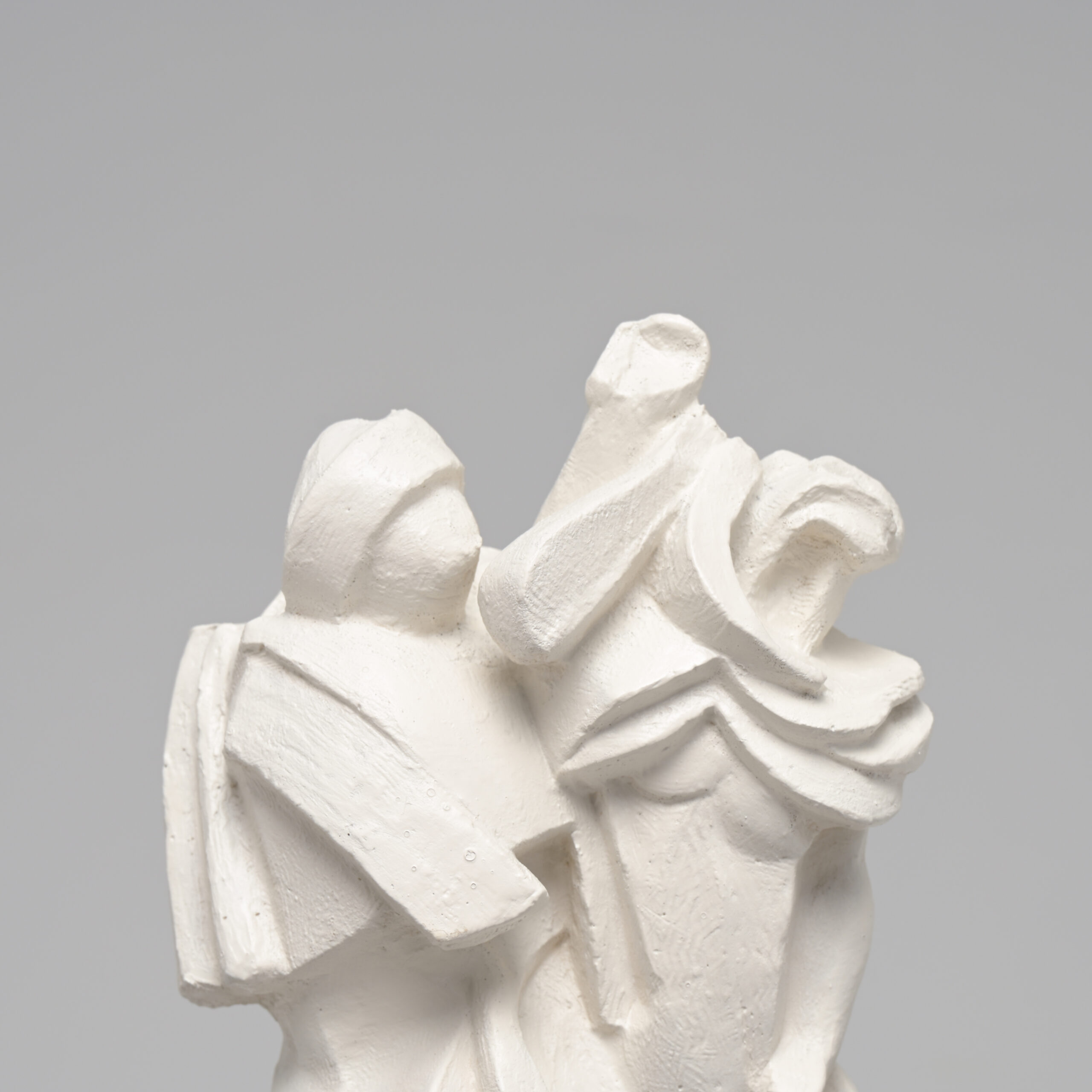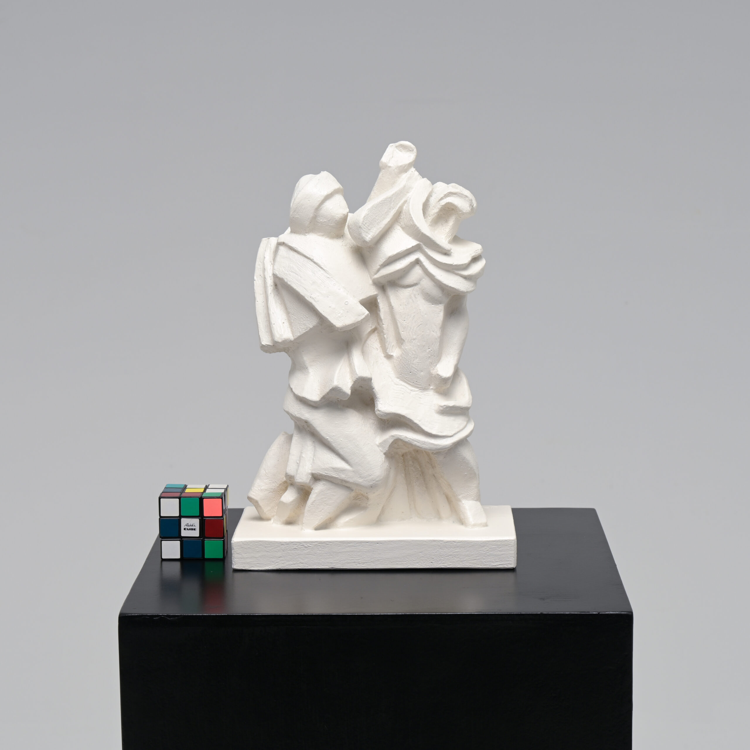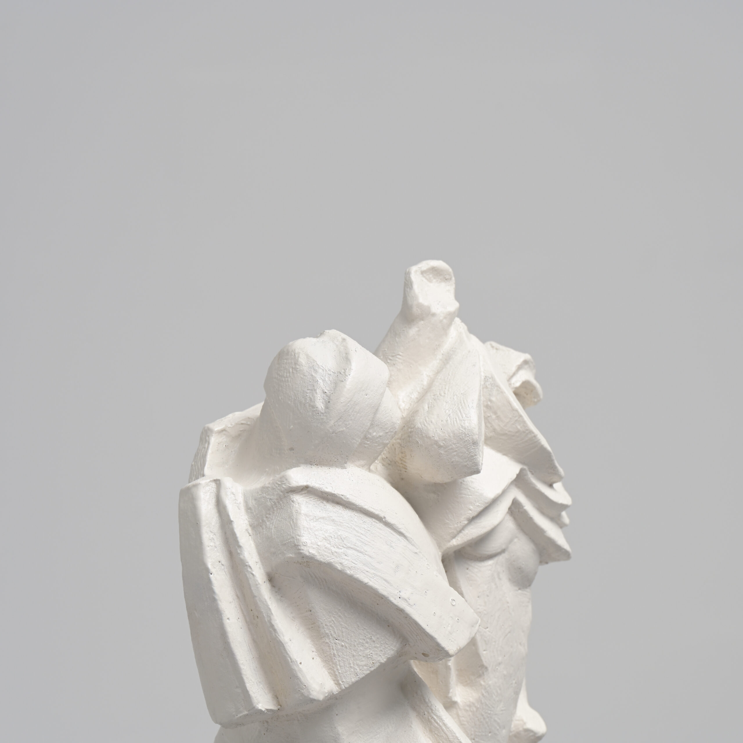 This abstract sculpture in plaster was made by the Belgian artist Jan Keustermans.