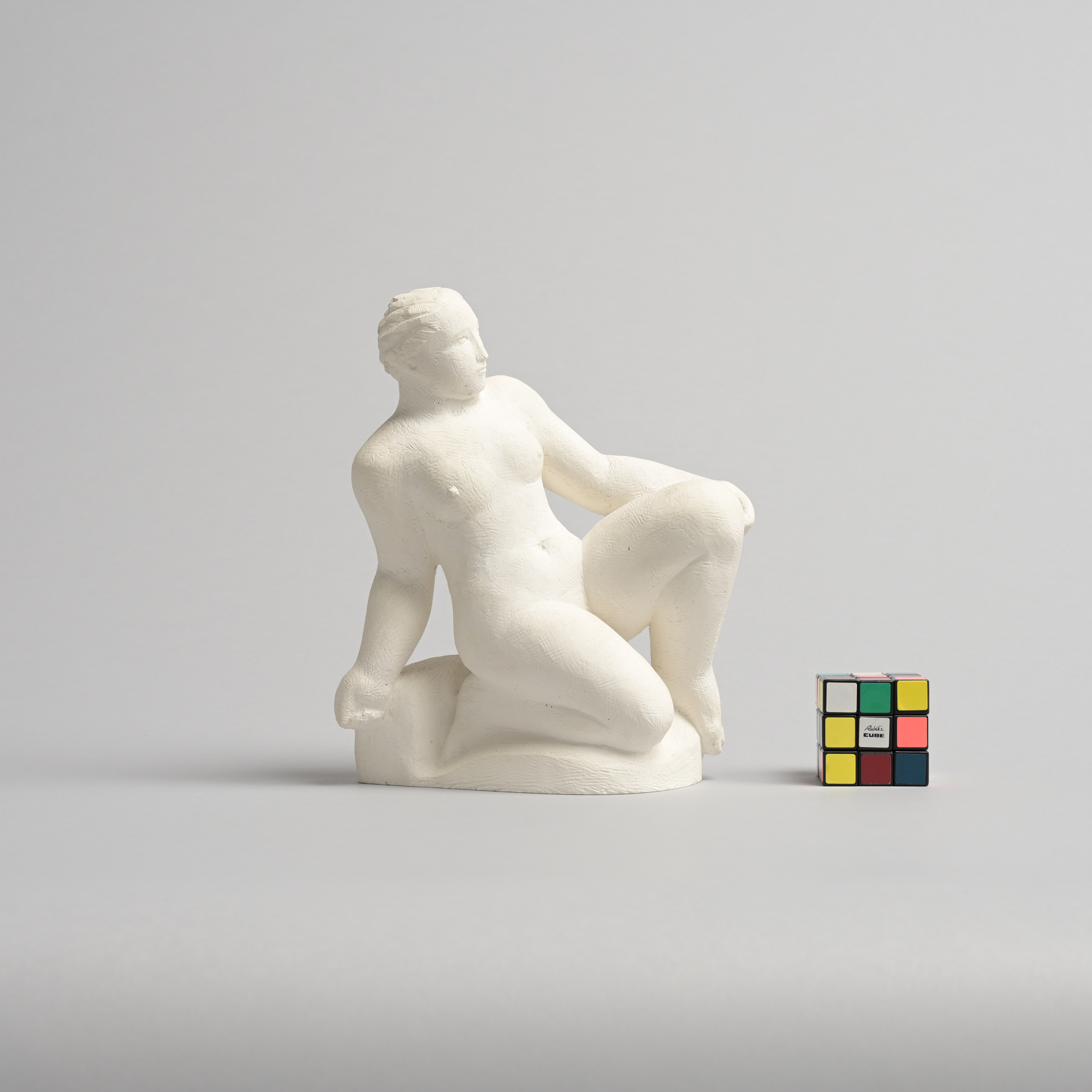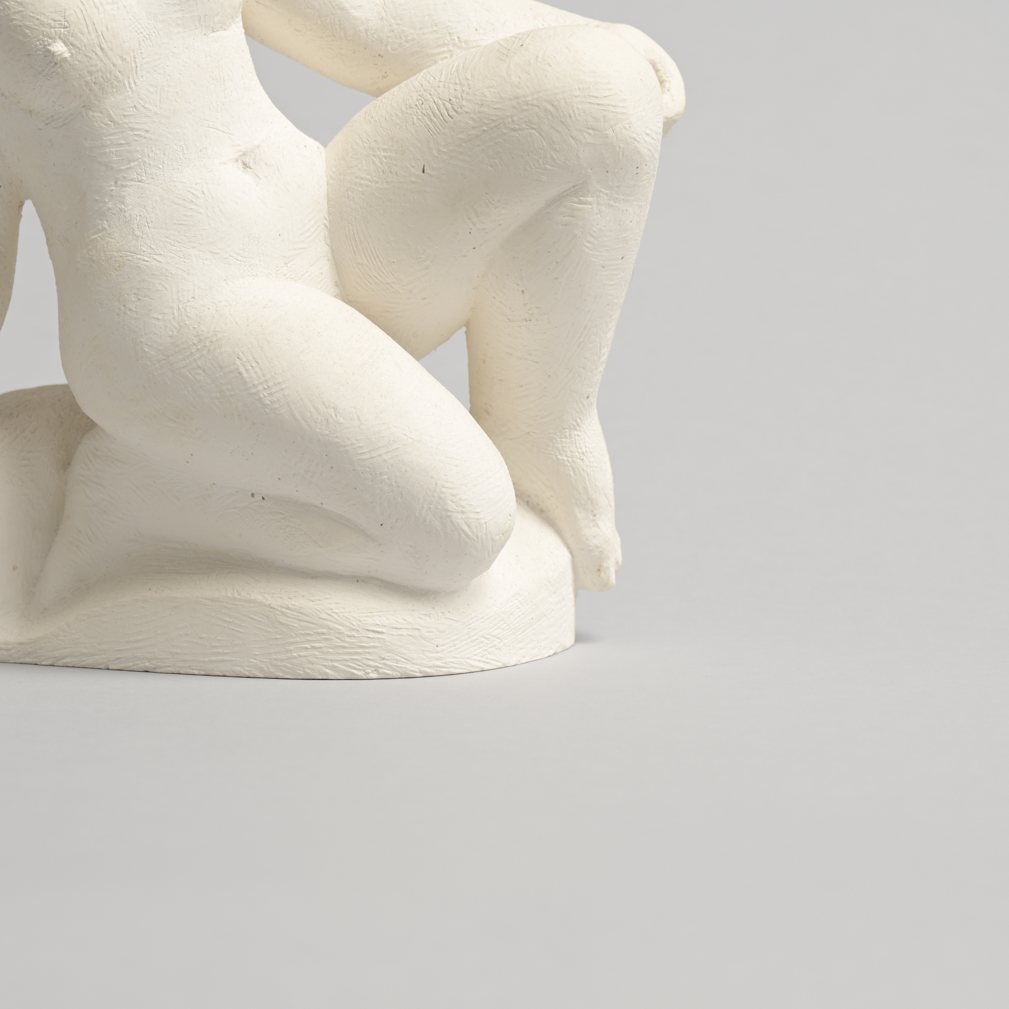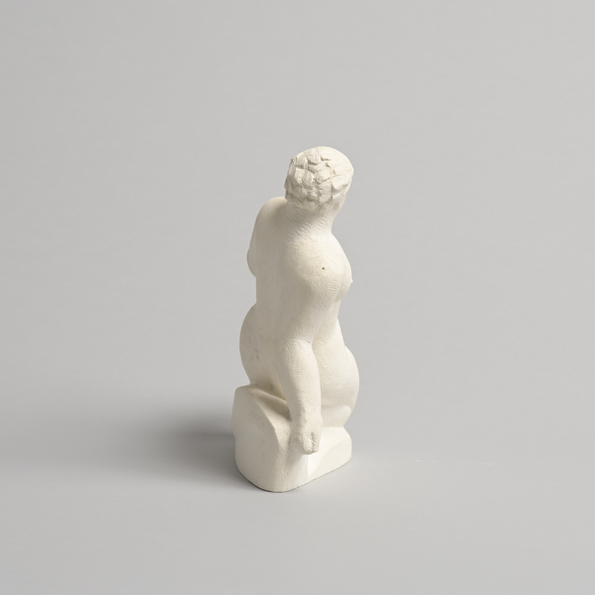 The sculpture has a rough plaster finish. It is a unique piece and one of the artist’s most recent works.