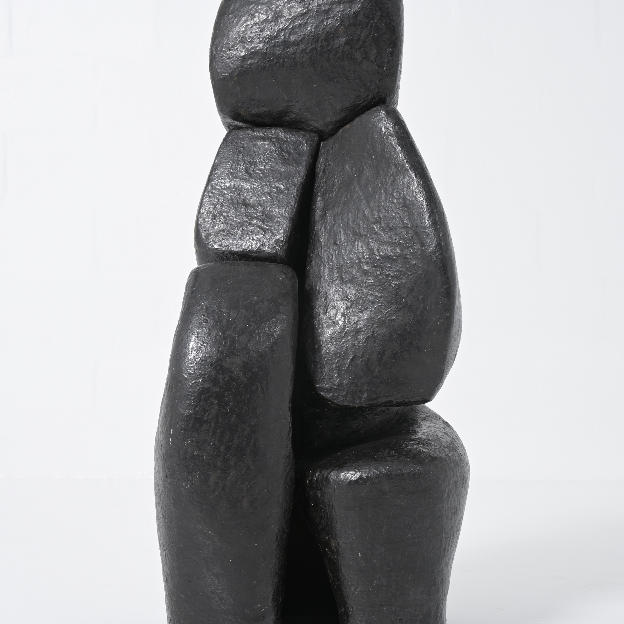 We were not able to attribute this large ceramic abstract sculpture to its maker. At the bottom, this piece is marked ‘JDERE’.