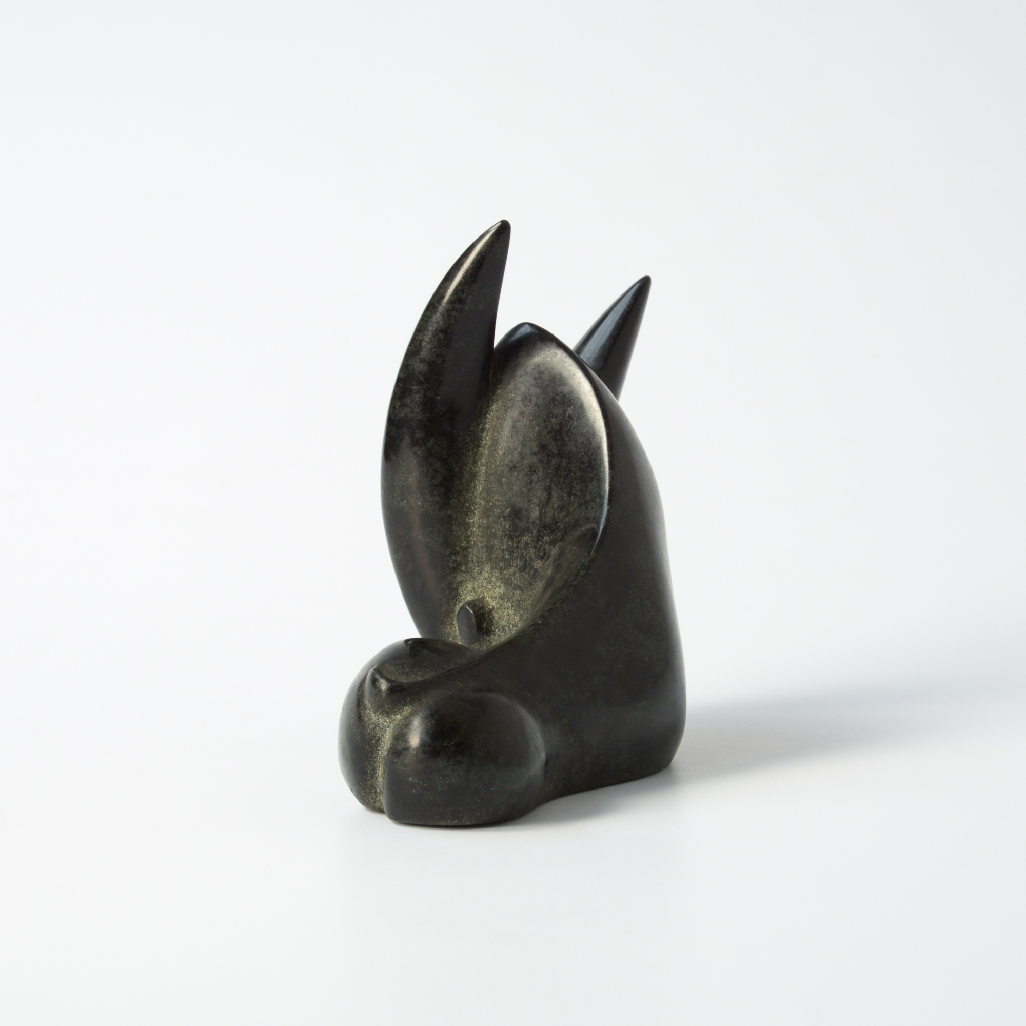 This abstracted capricorn sculpture is made of black granite. It is in perfect condition and marked with the monogram BB.