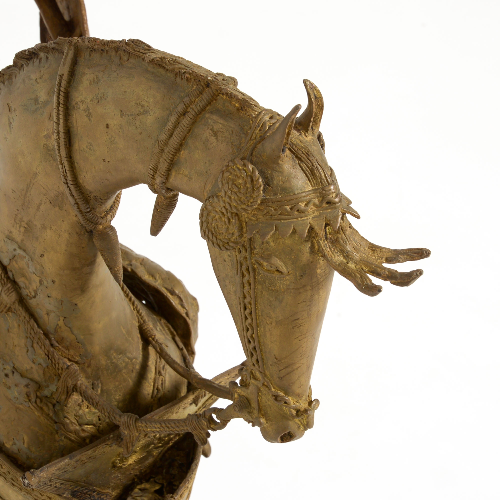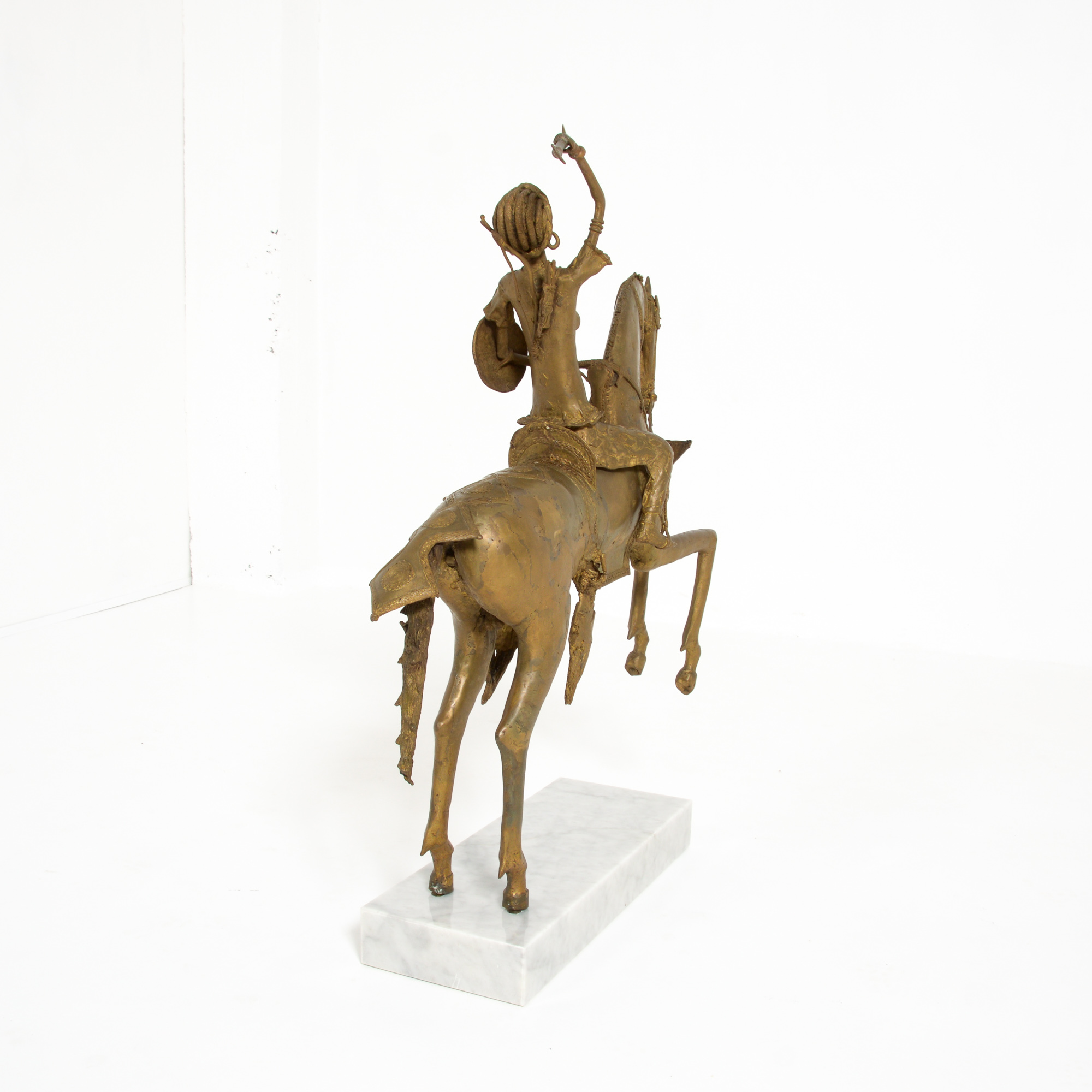 African Tribal Bronze Sculpture - Female Warrior on a Horse