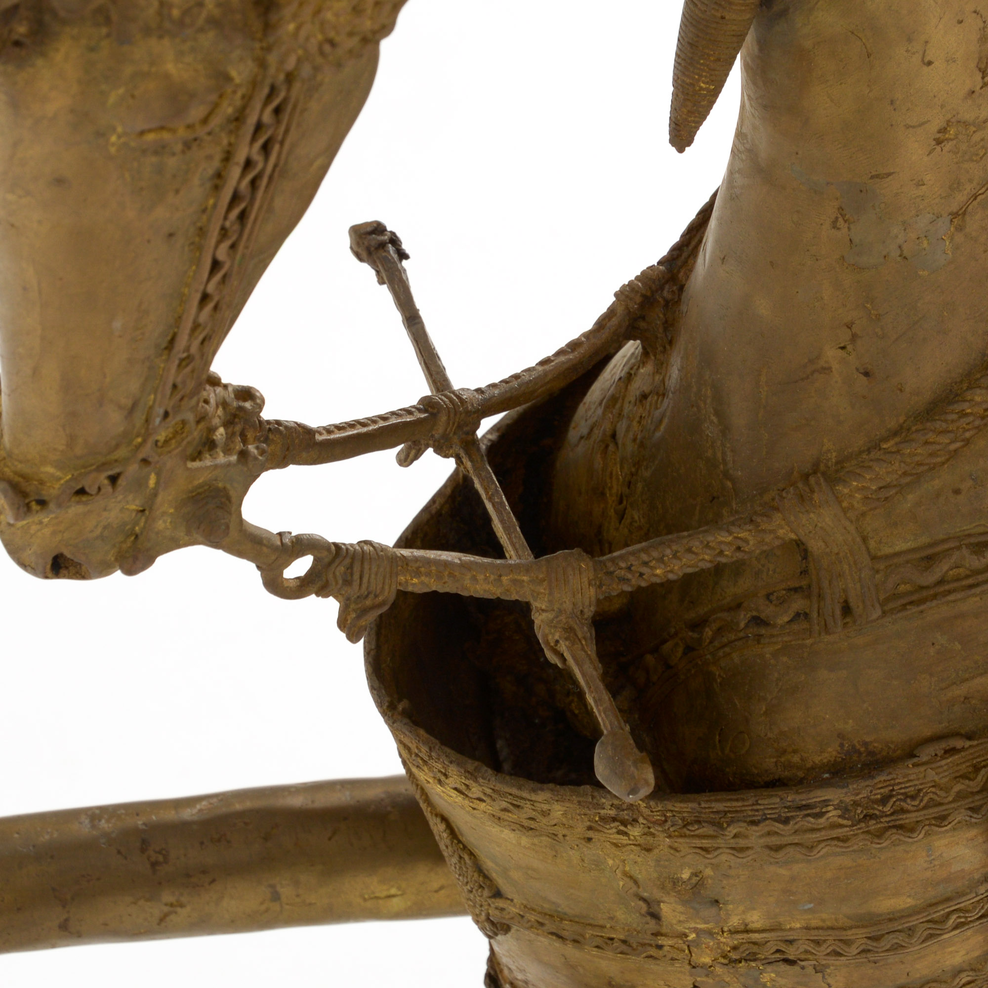 Made with the lost wax casting process the sculpture still shows the artist’s hand and the original clay sculpture. Due to the primitive casting process it has some casting flaws.