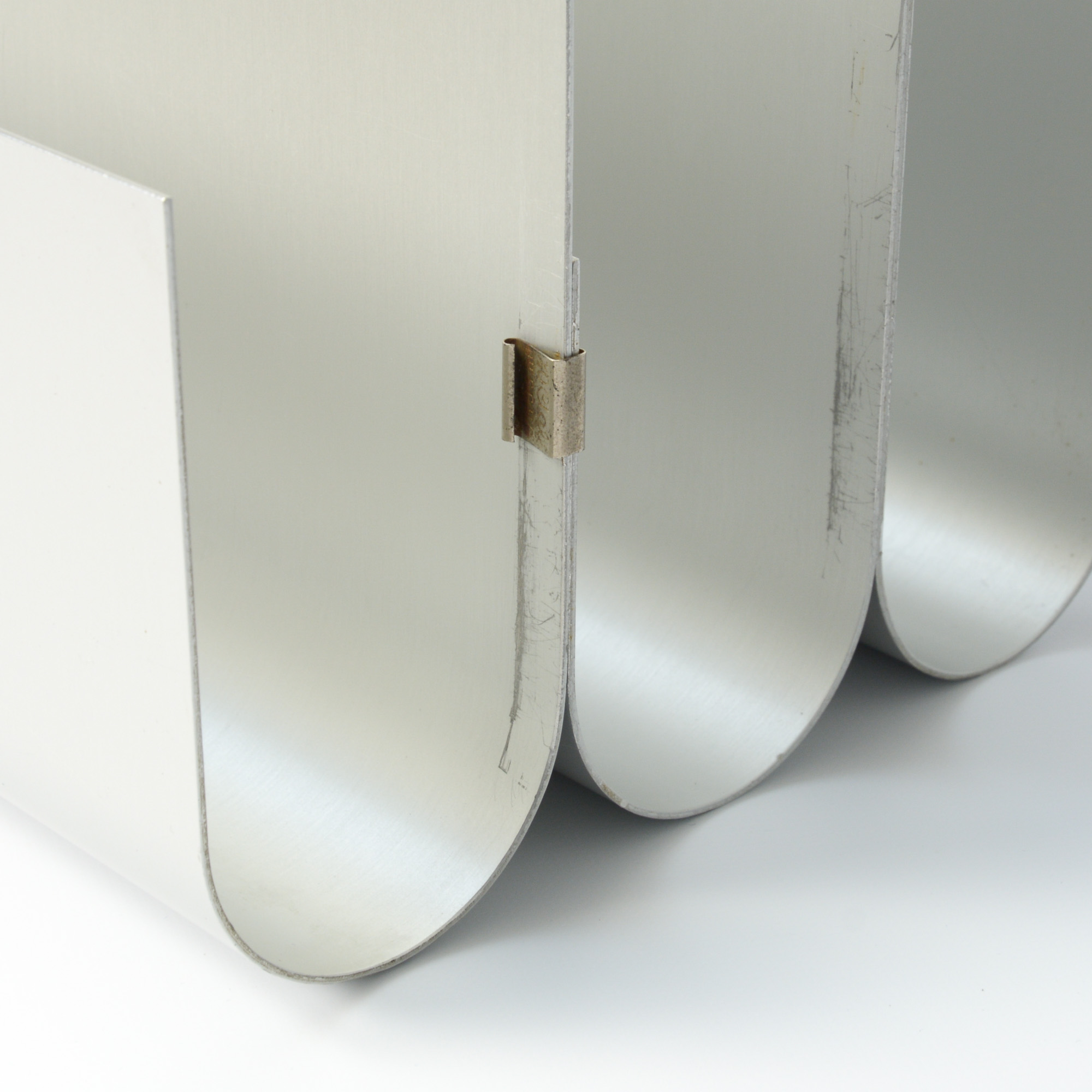 This aluminum magazine rack was designed by Pierre Vandel for Espace Pierre Cardin in the 1970s.