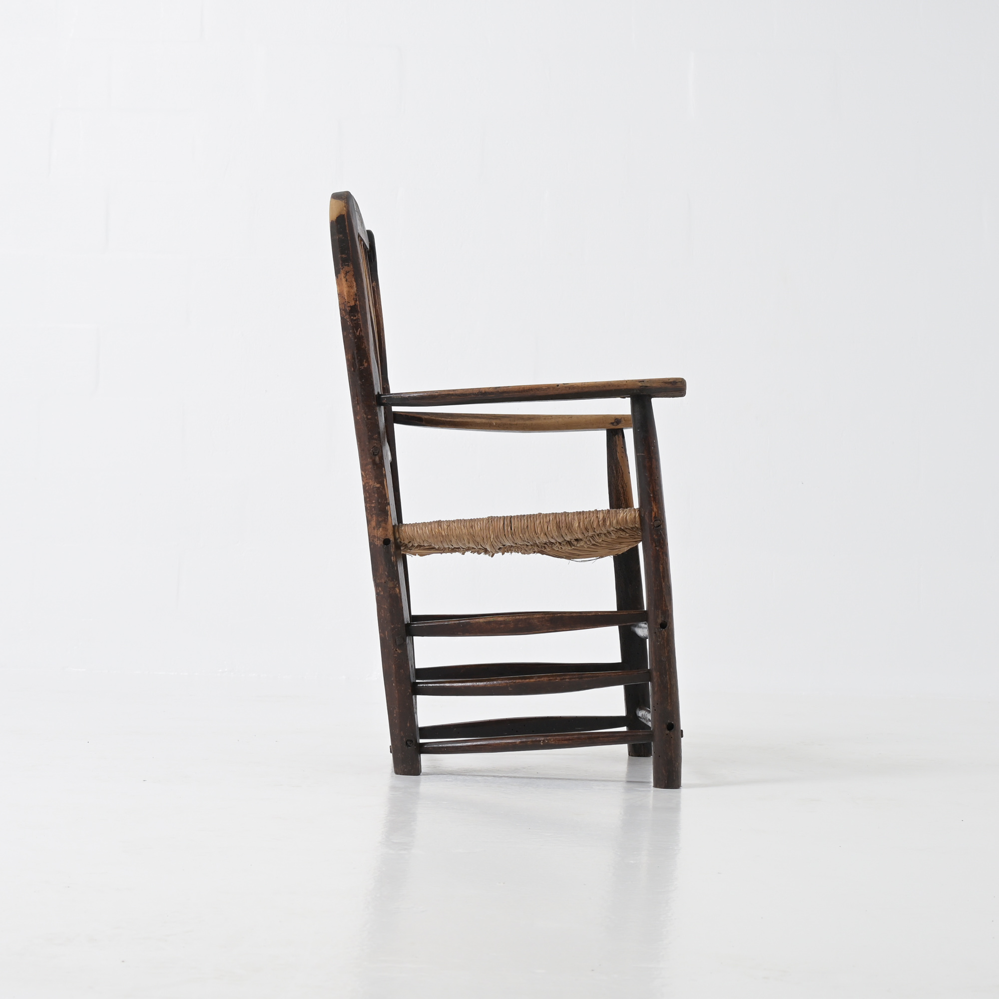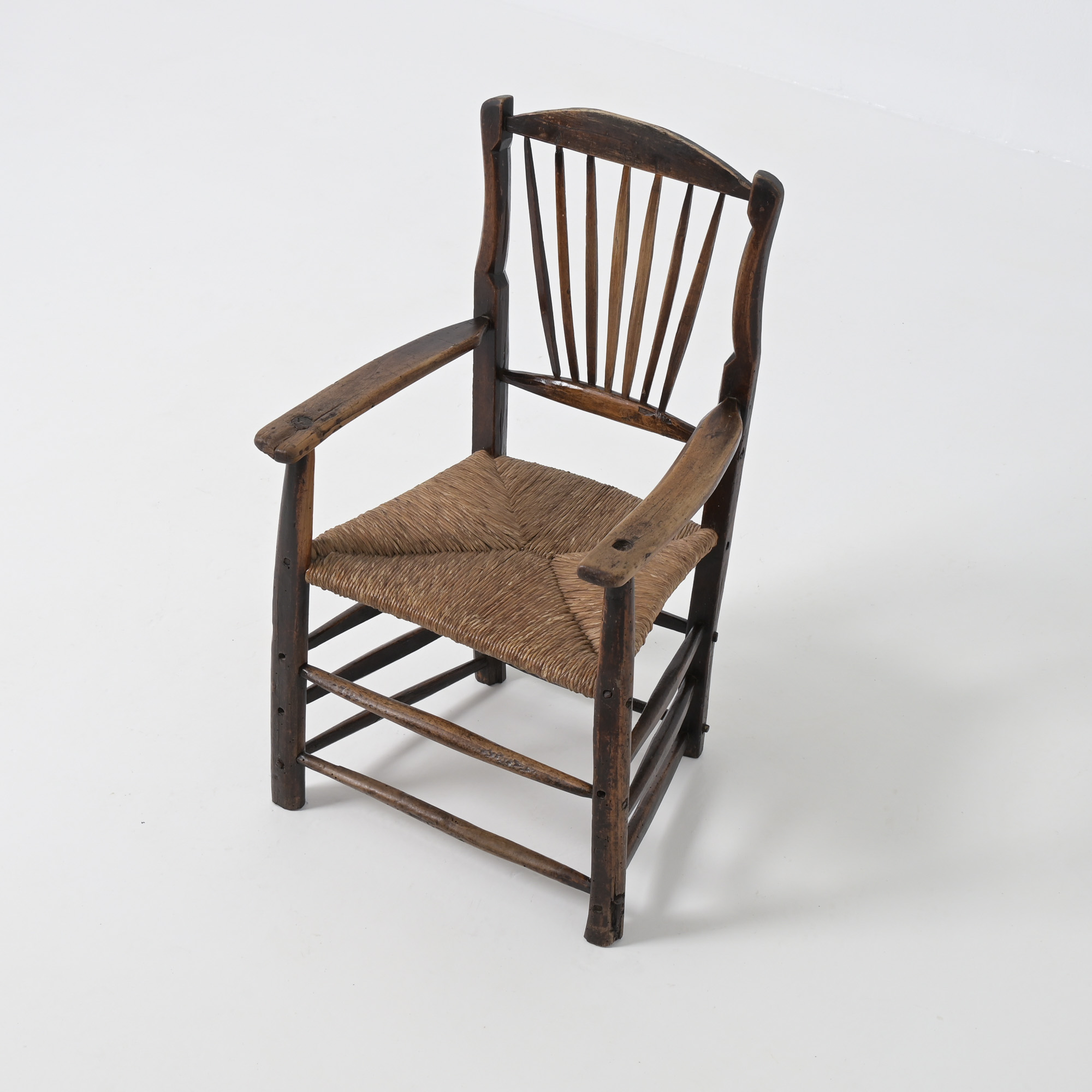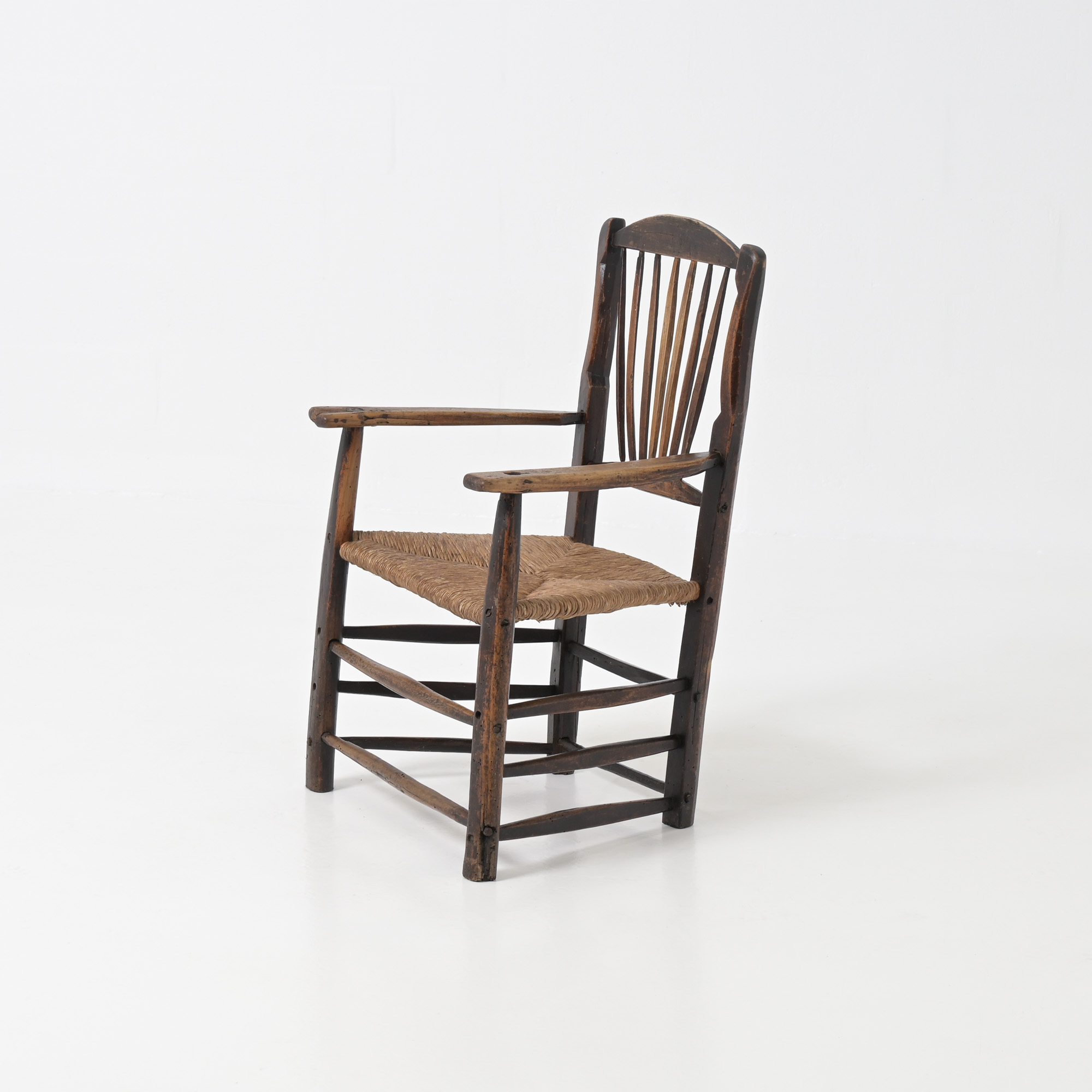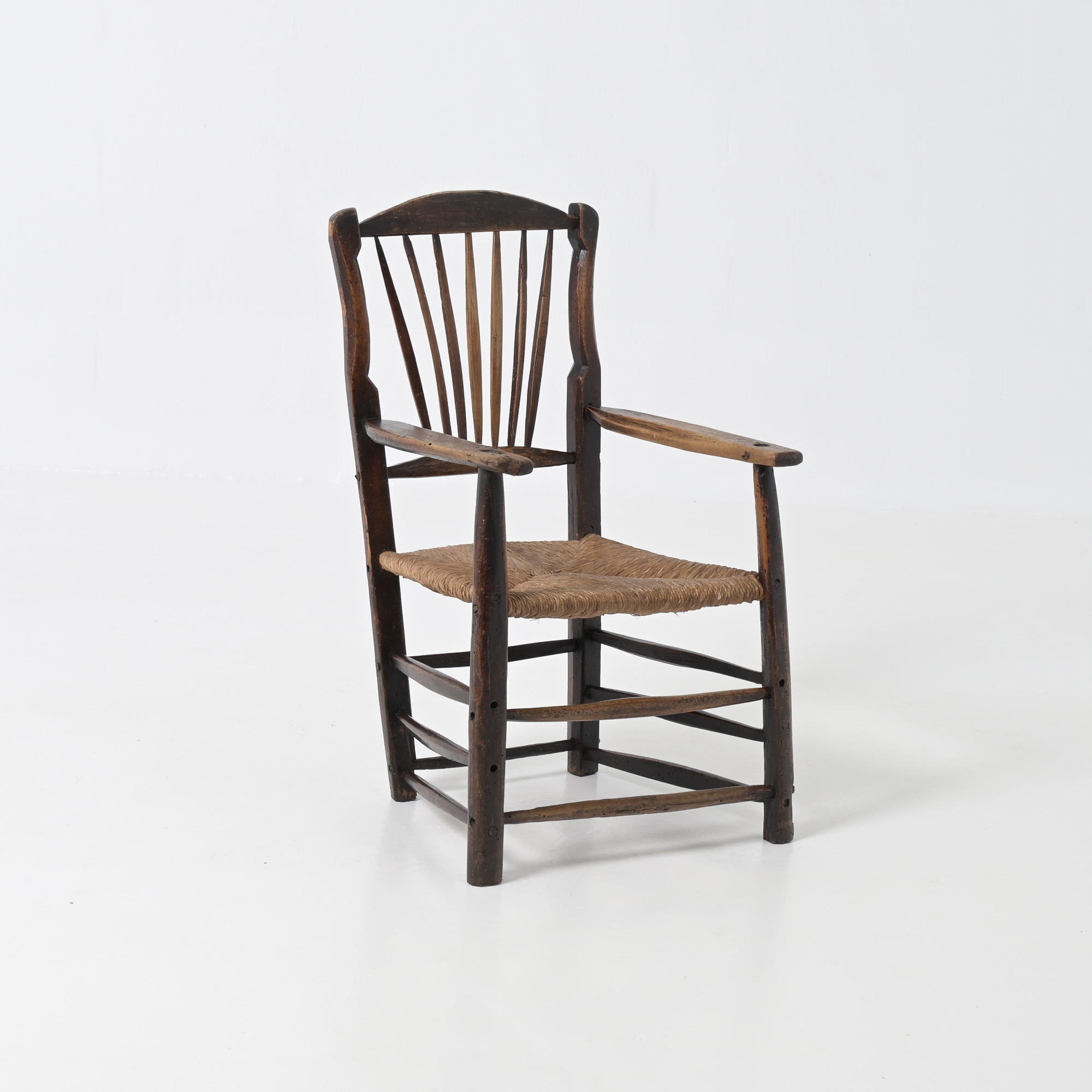 Antique traditional Irish chair. This chair is from the 19th century, it is perfectly usable but wobbles a bit because the connections are not glued or screwed.