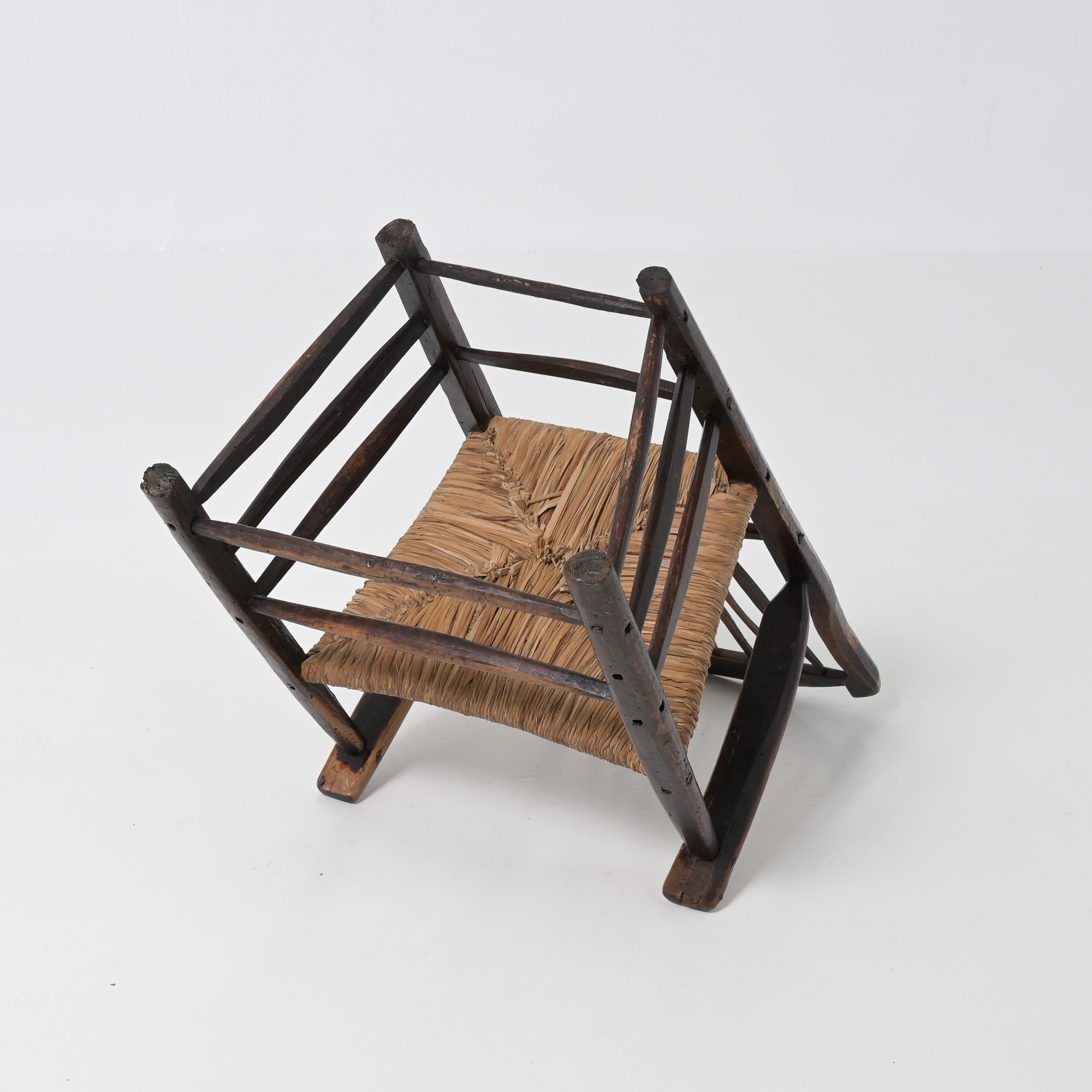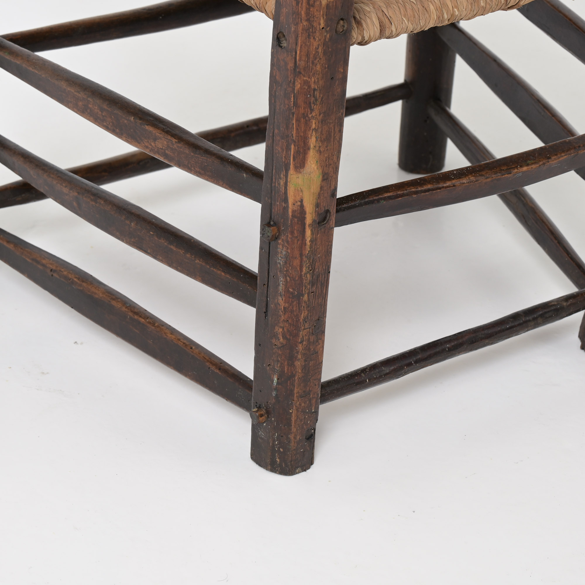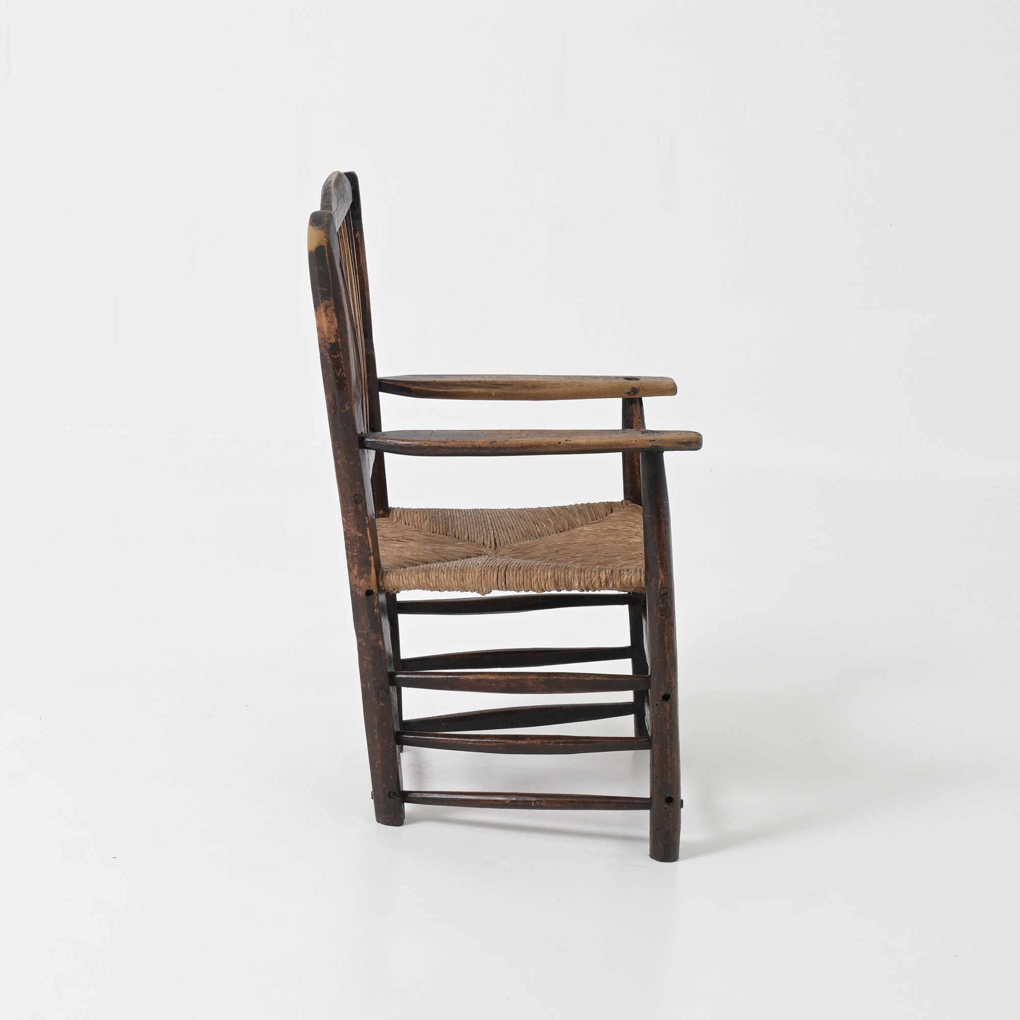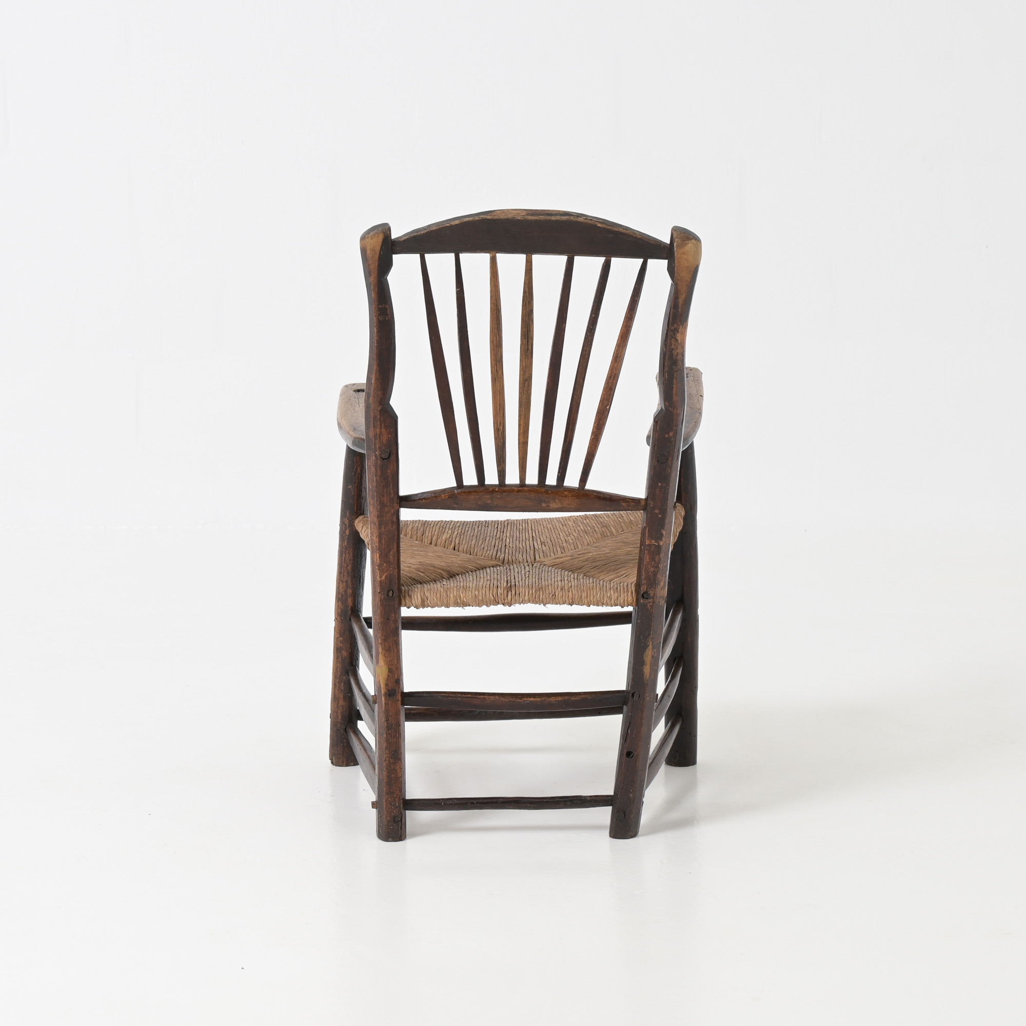 Antique traditional Irish chair. This chair is from the 19th century, it is perfectly usable but wobbles a bit because the connections are not glued or screwed.
