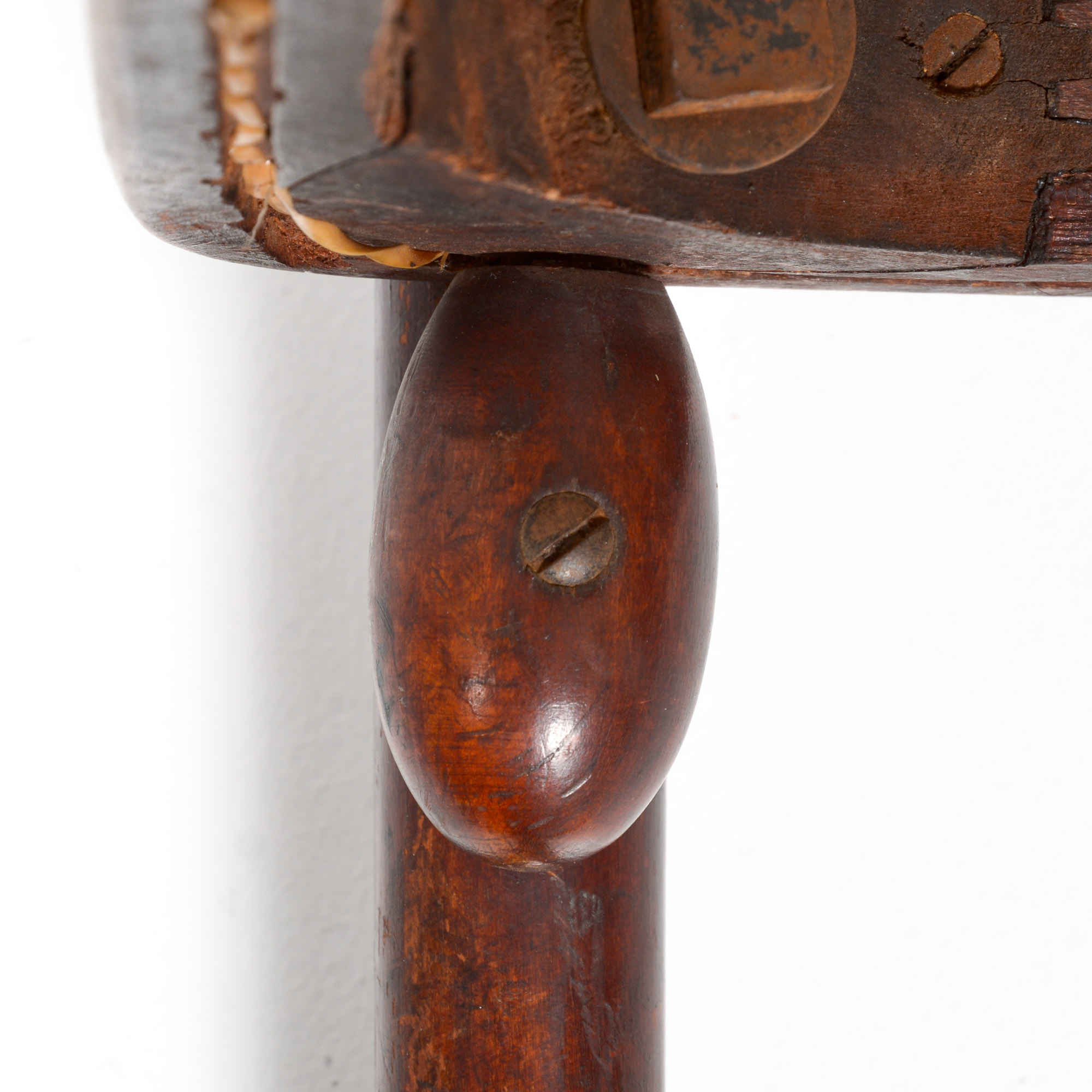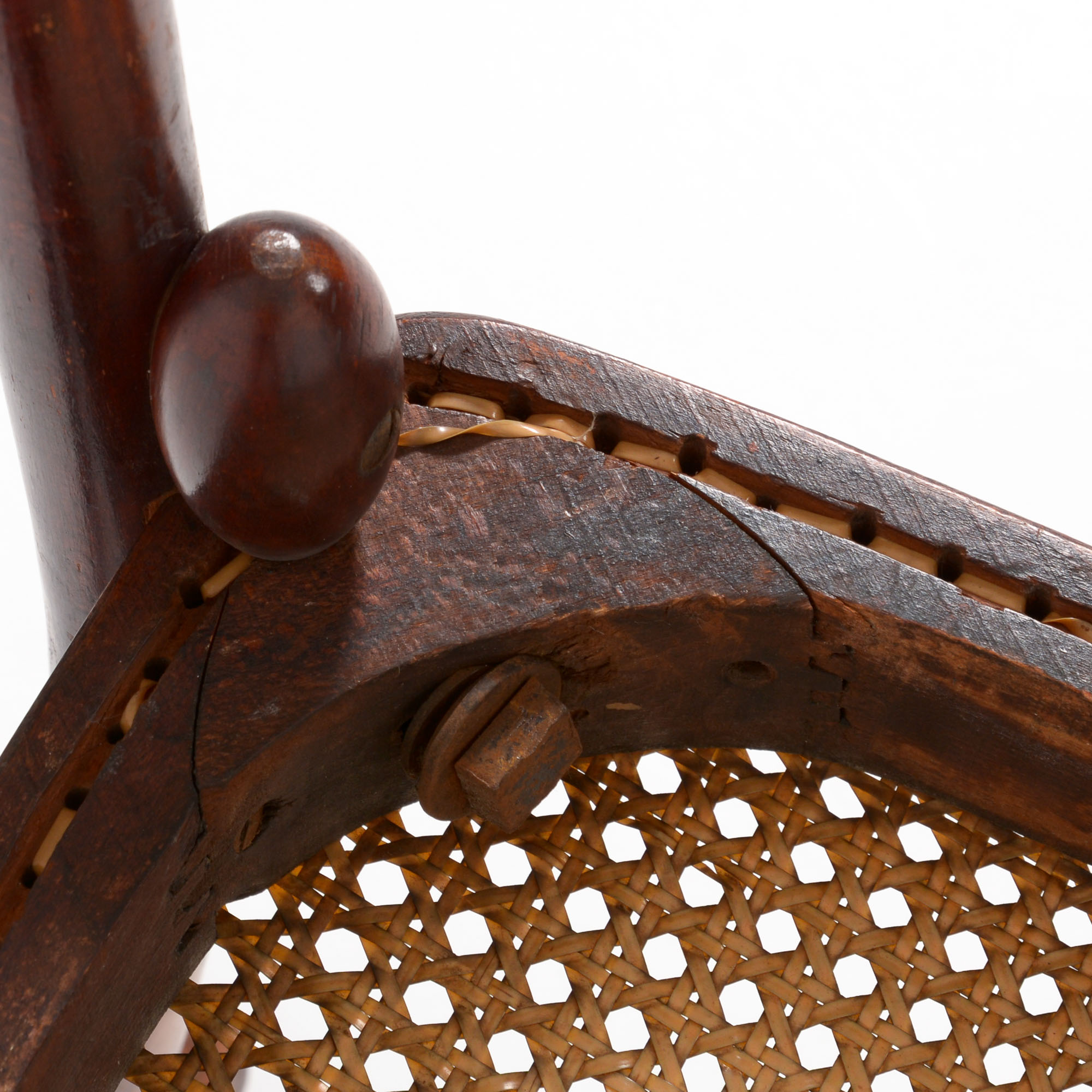It is a beautifully shaped chair with egg shaped details under the seat. The seat was renewed in the 1970s with a faux cane webbing.