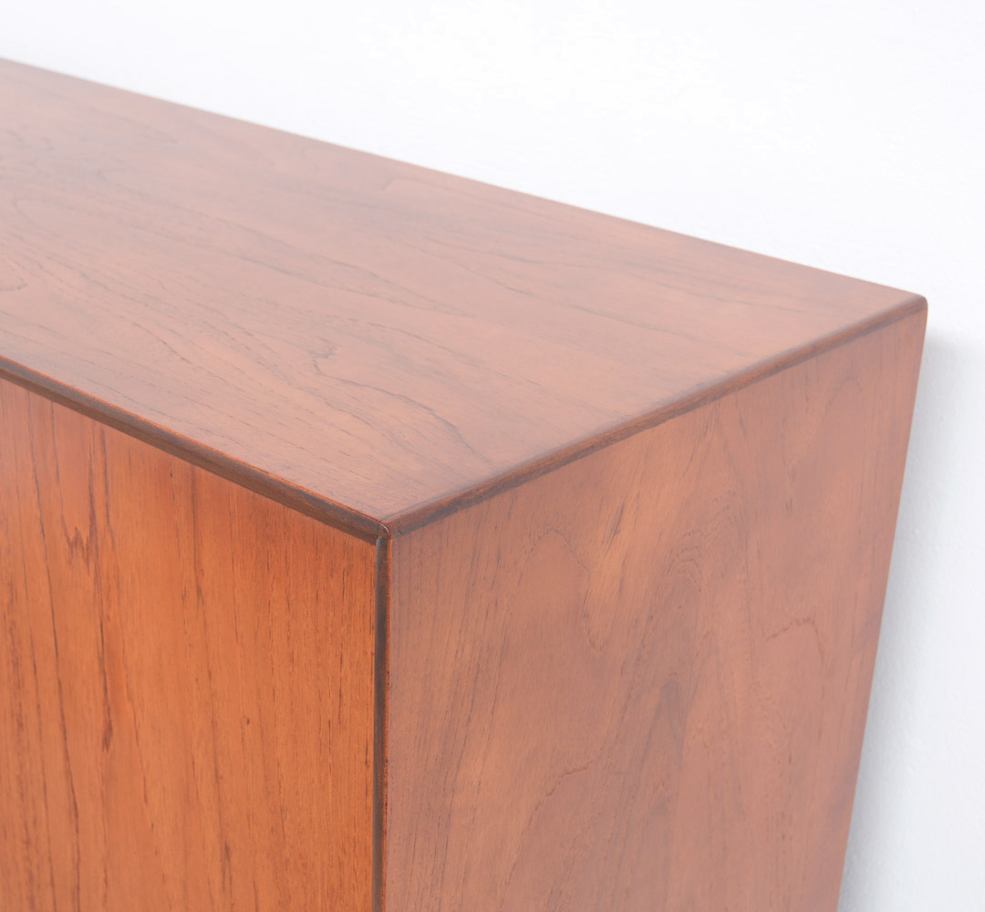 This cabinet is made of teak. This pure design is both functional and decorative.