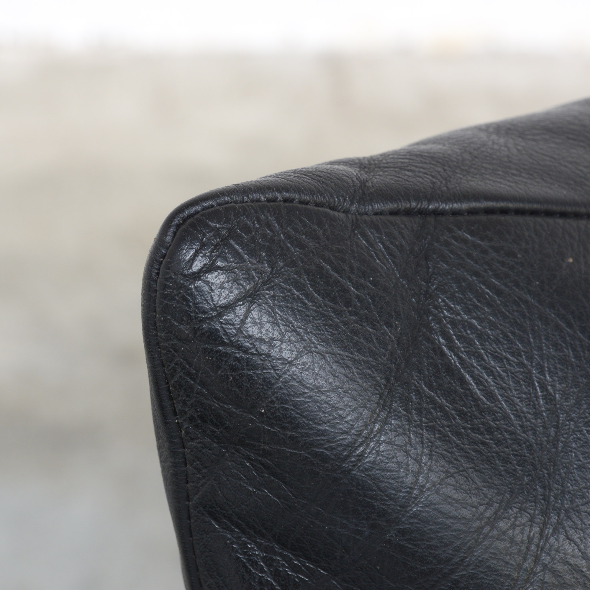 This design classic is beautiful and comfortable. It is made of black soft leather.