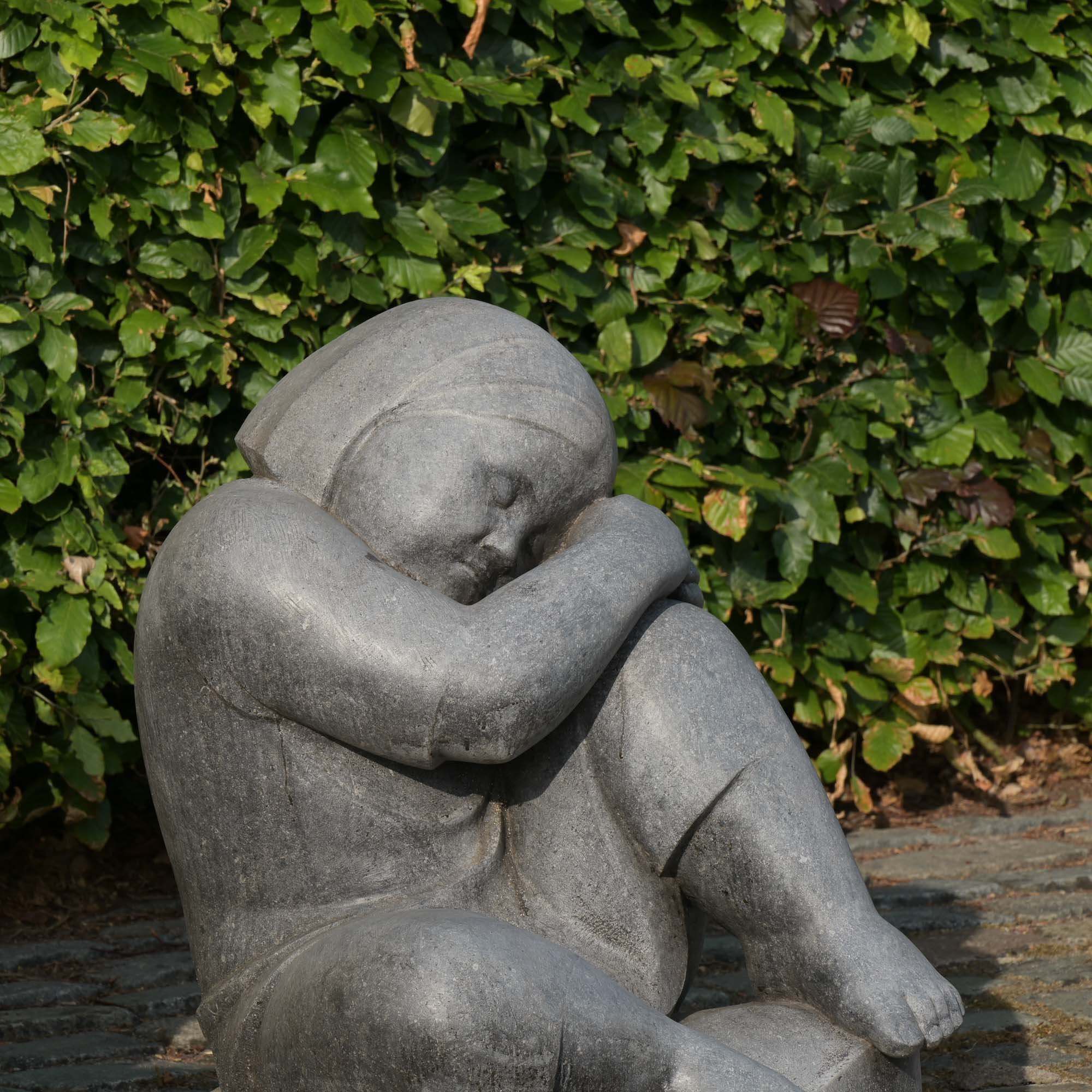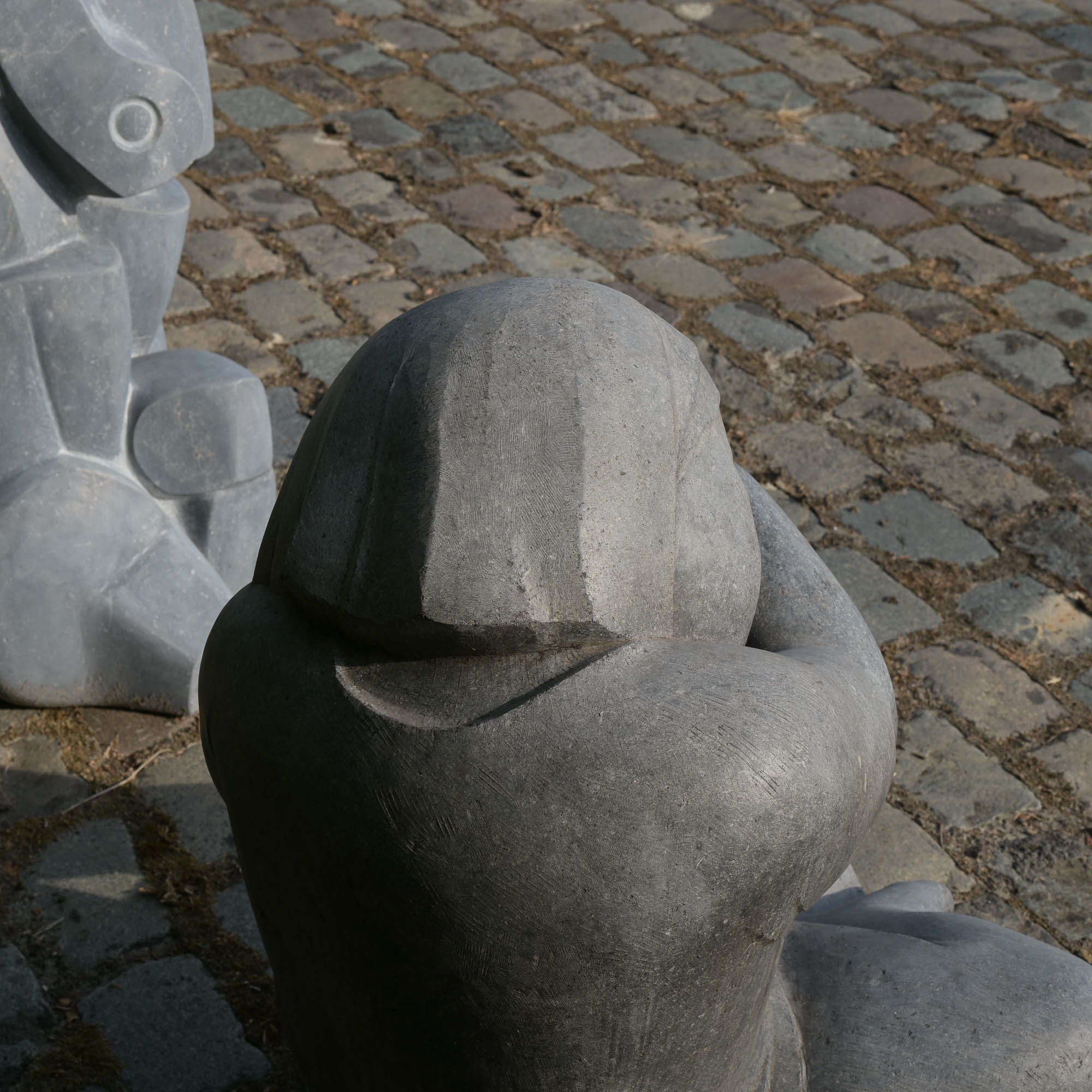 This blue stone statue is made by the Belgian artist Jan Keustermans.