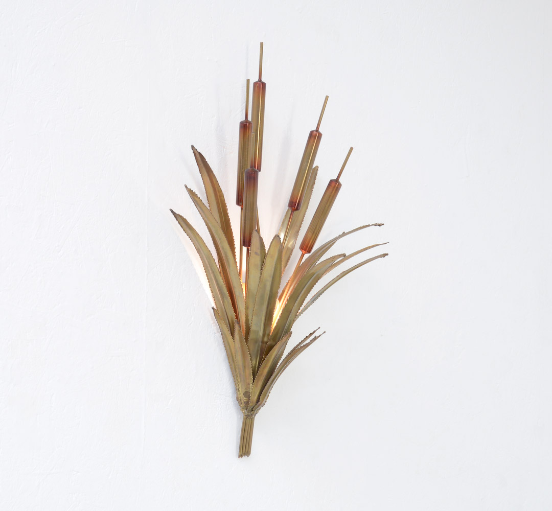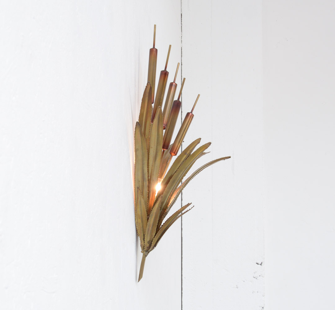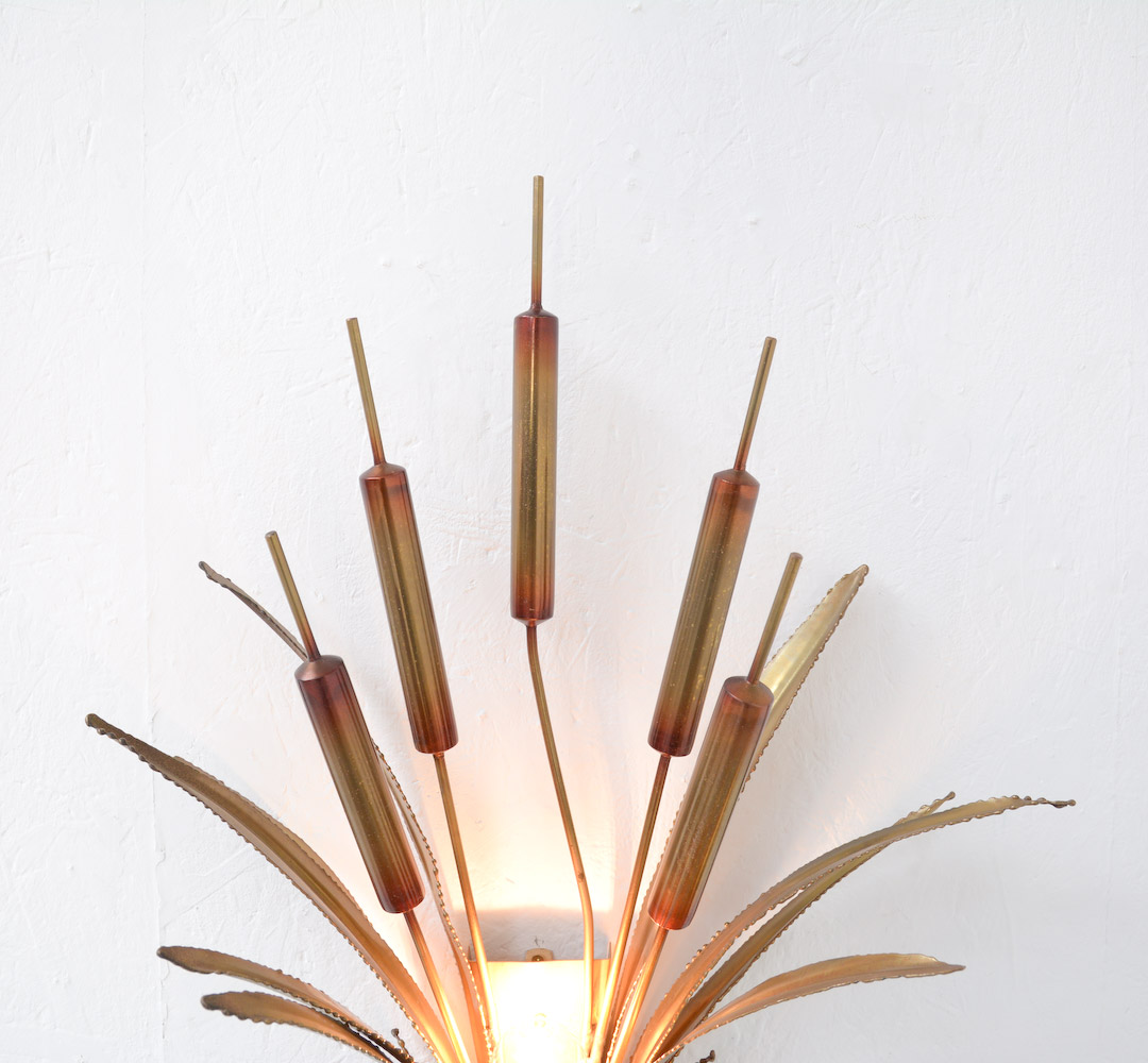 Brass Cattail Wall Lamp attr. to Maison Jansen