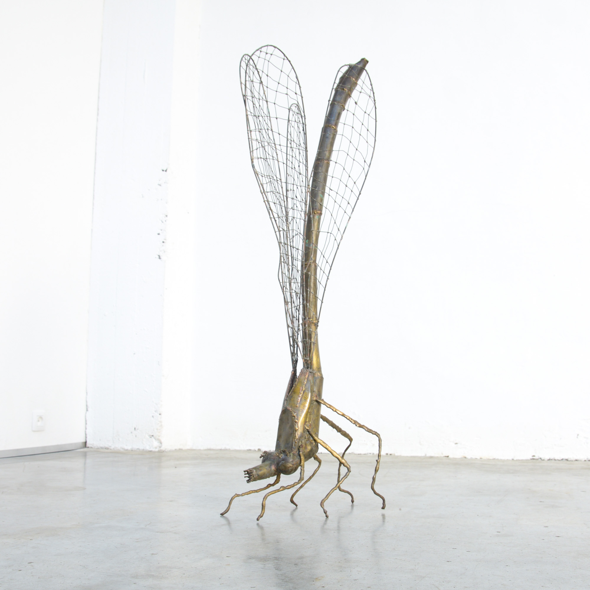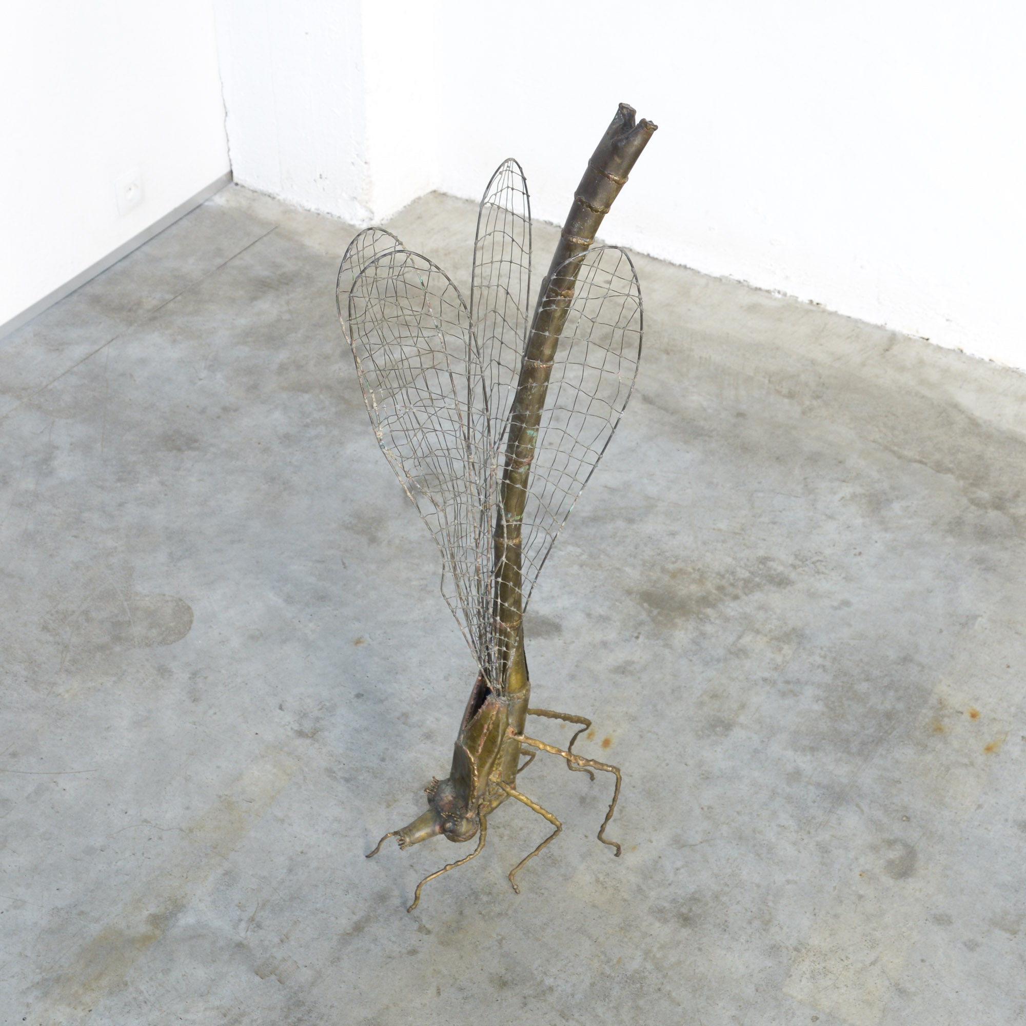 This brass dragonfly sculpture was designed and made by Belgian artist Daniel Dhaeseleer in the 1970s.