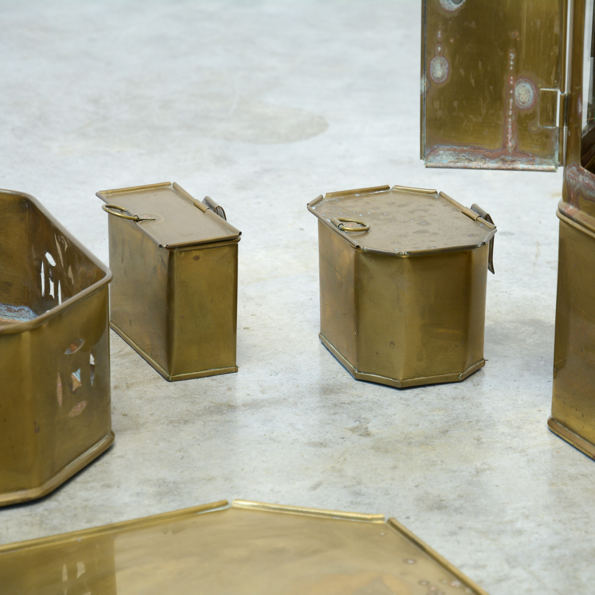This oriental tea, bar or picnic set can be dated in the 1970s and is made of brass. It is a decorative piece with many possibilities.