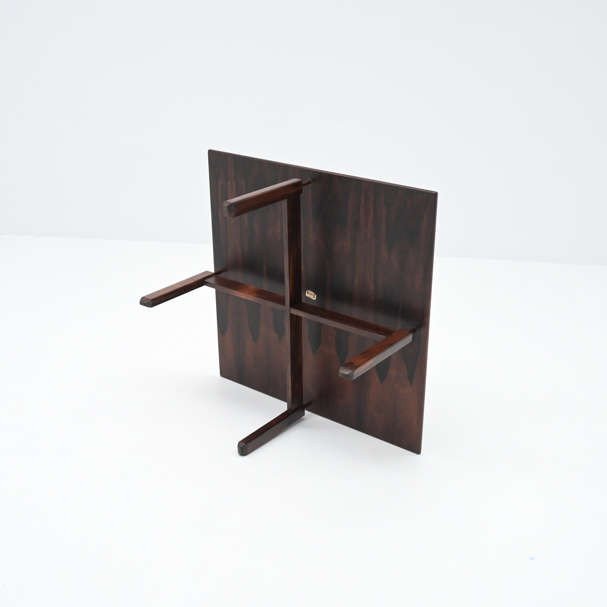 This elegant square coffee table with 4 nesting stools was designed by Jean Gillon for Wood Art in Brazil in the 1960s.