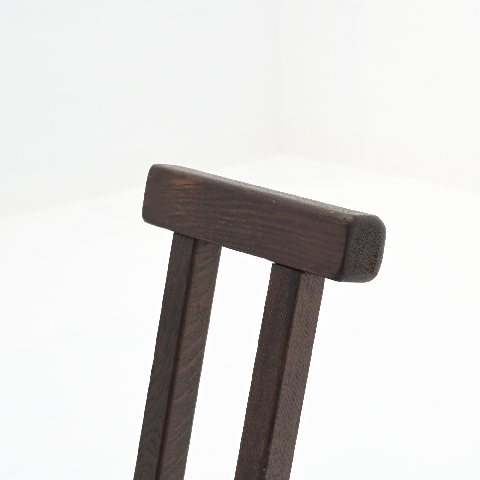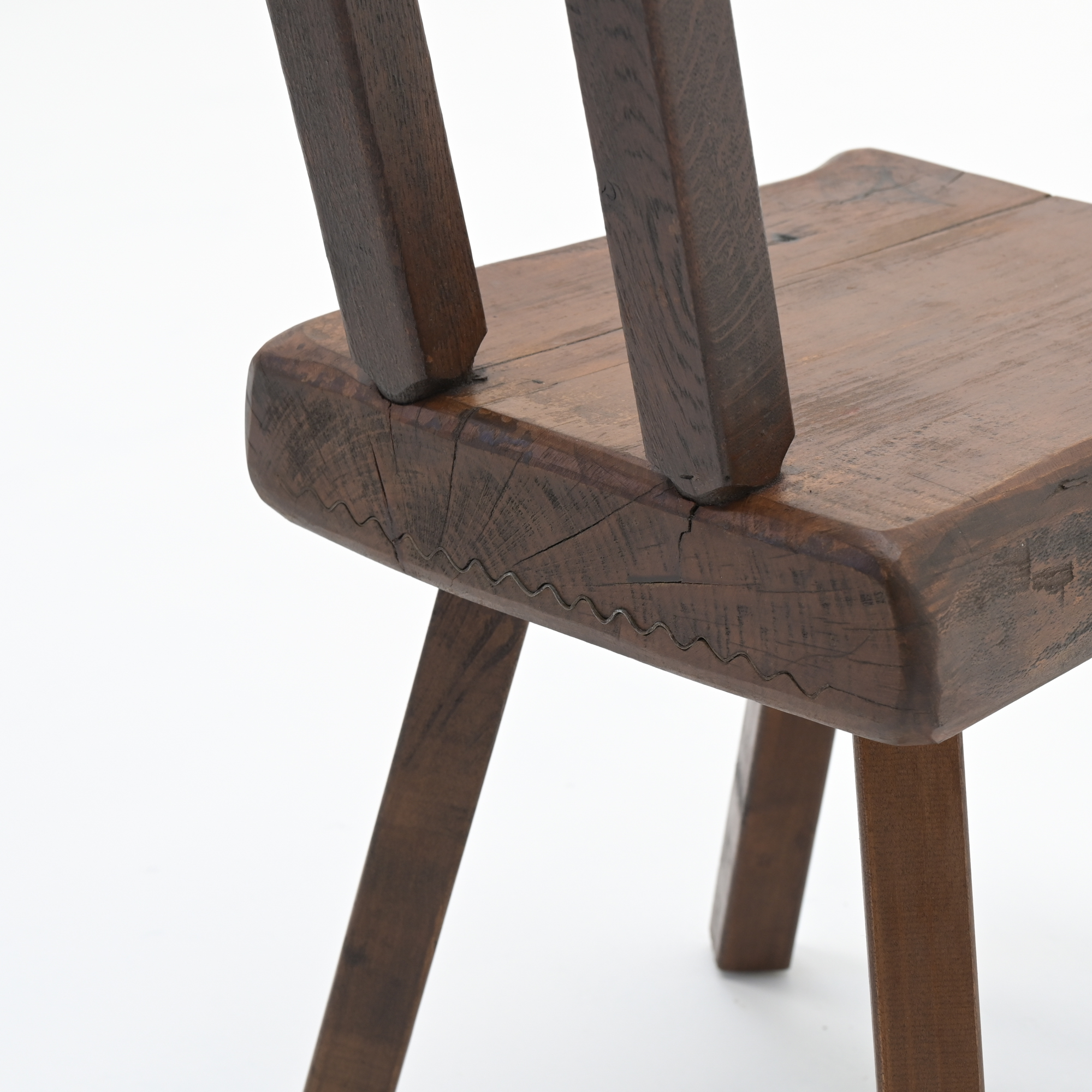 This strong robust chair is handmade of dark colored oak wood. It will bring a bucolic and natural feel to your interior.