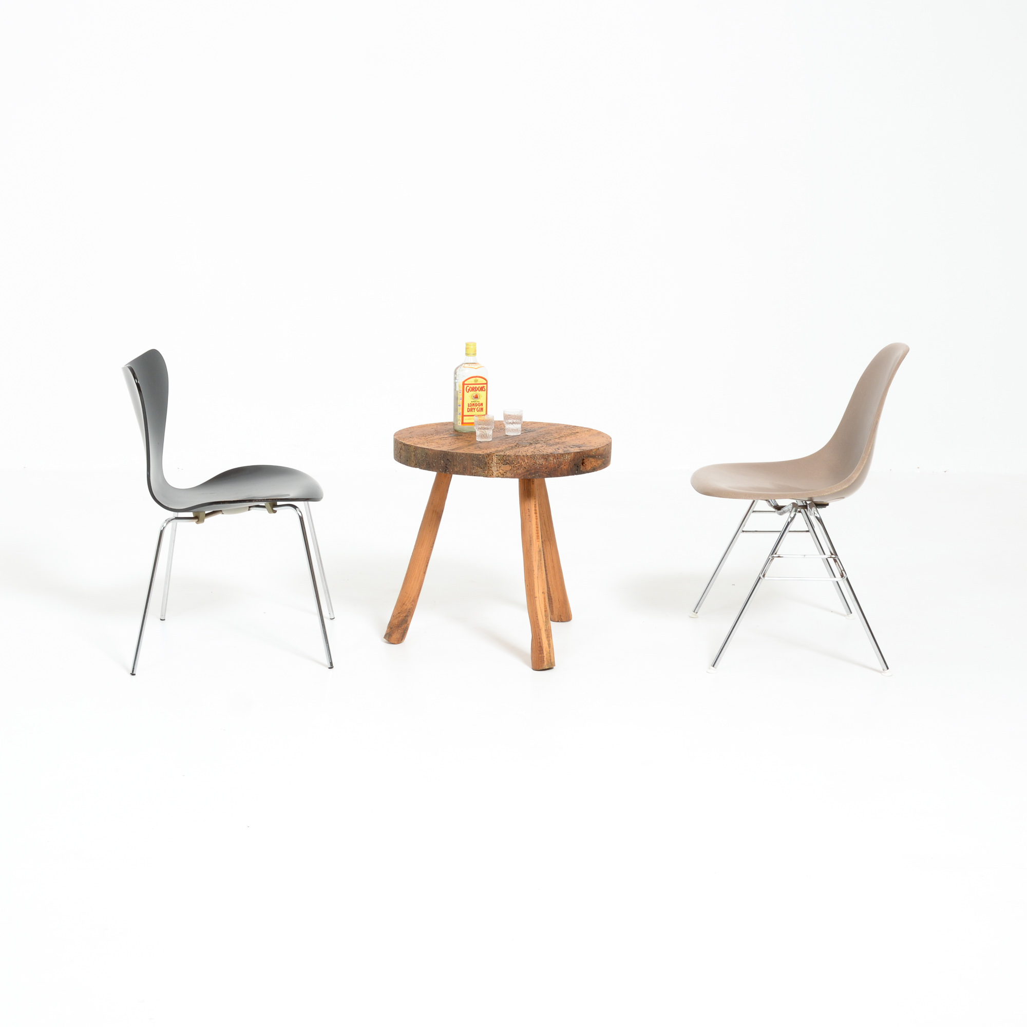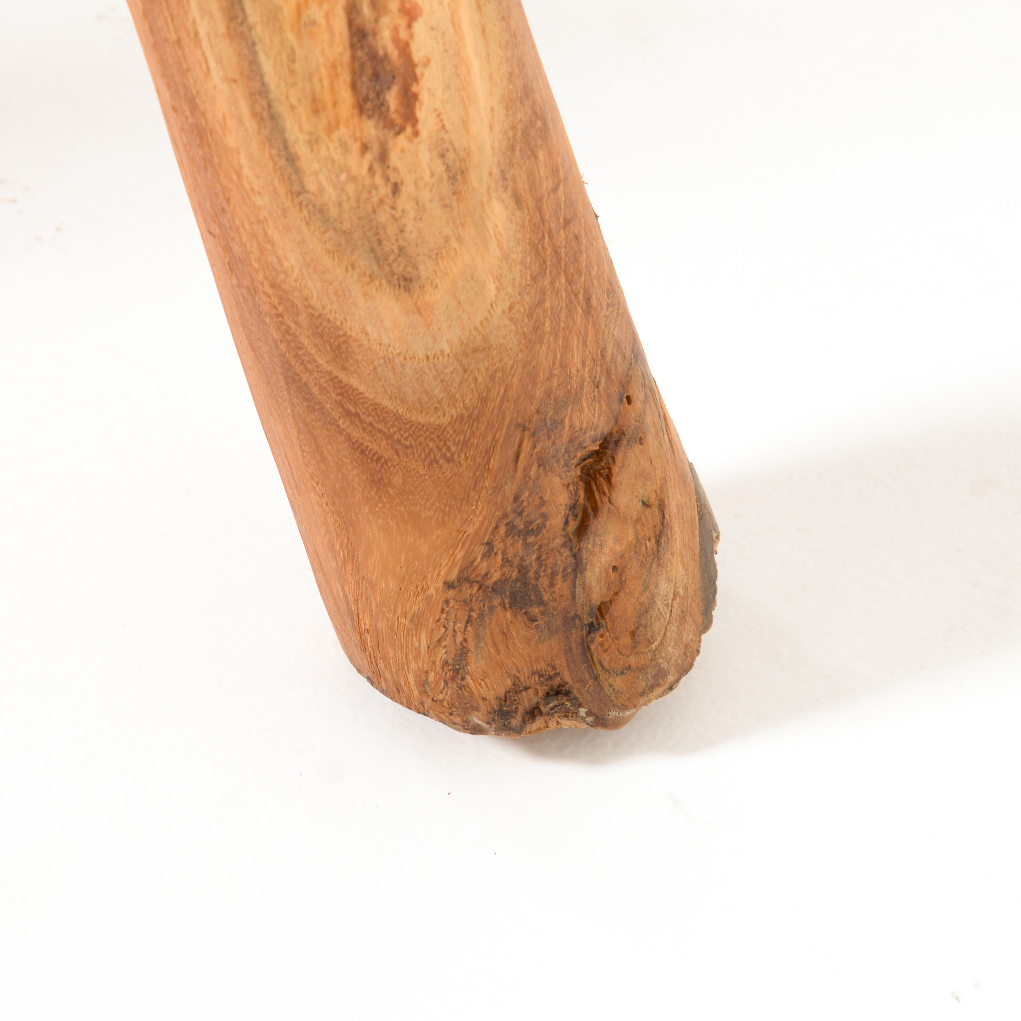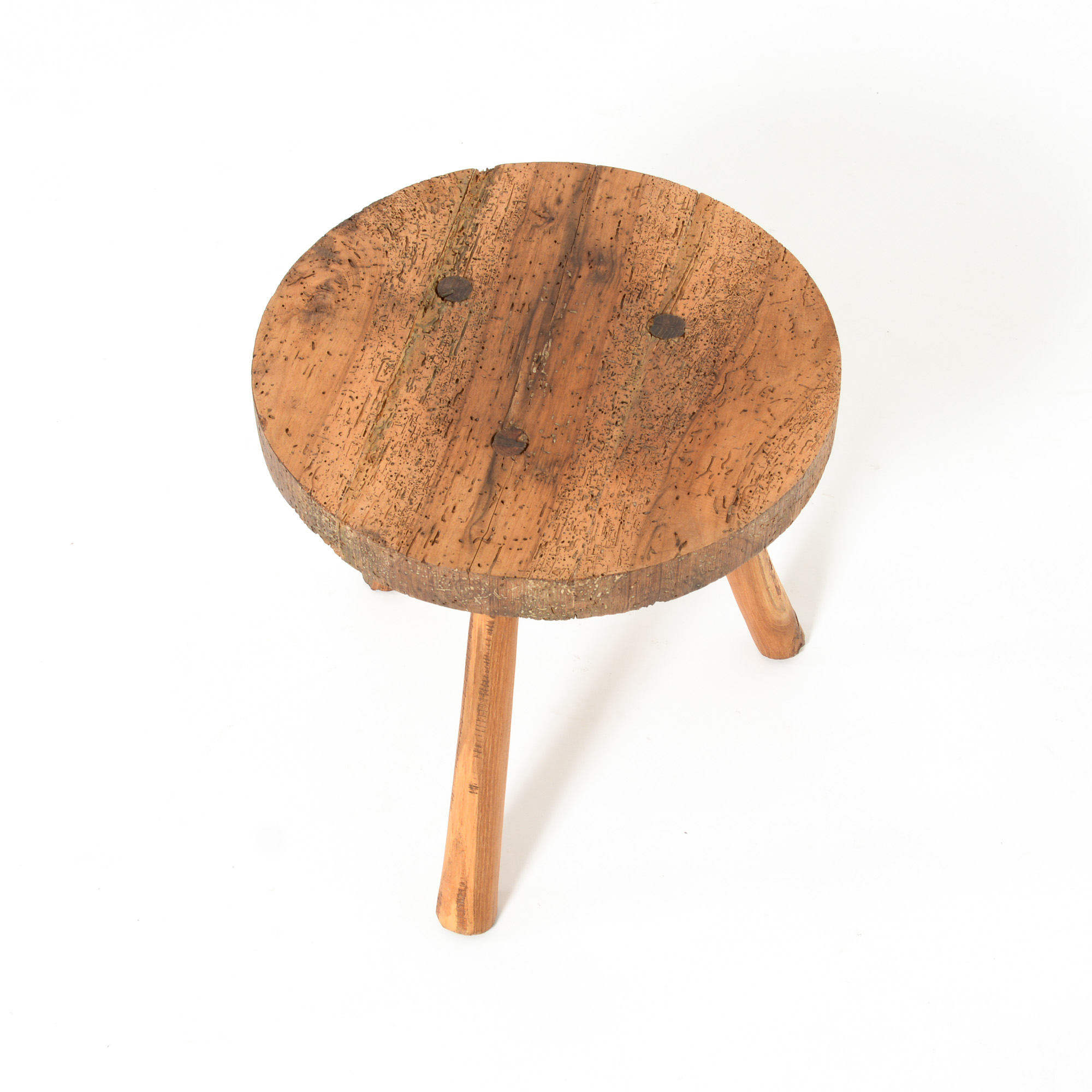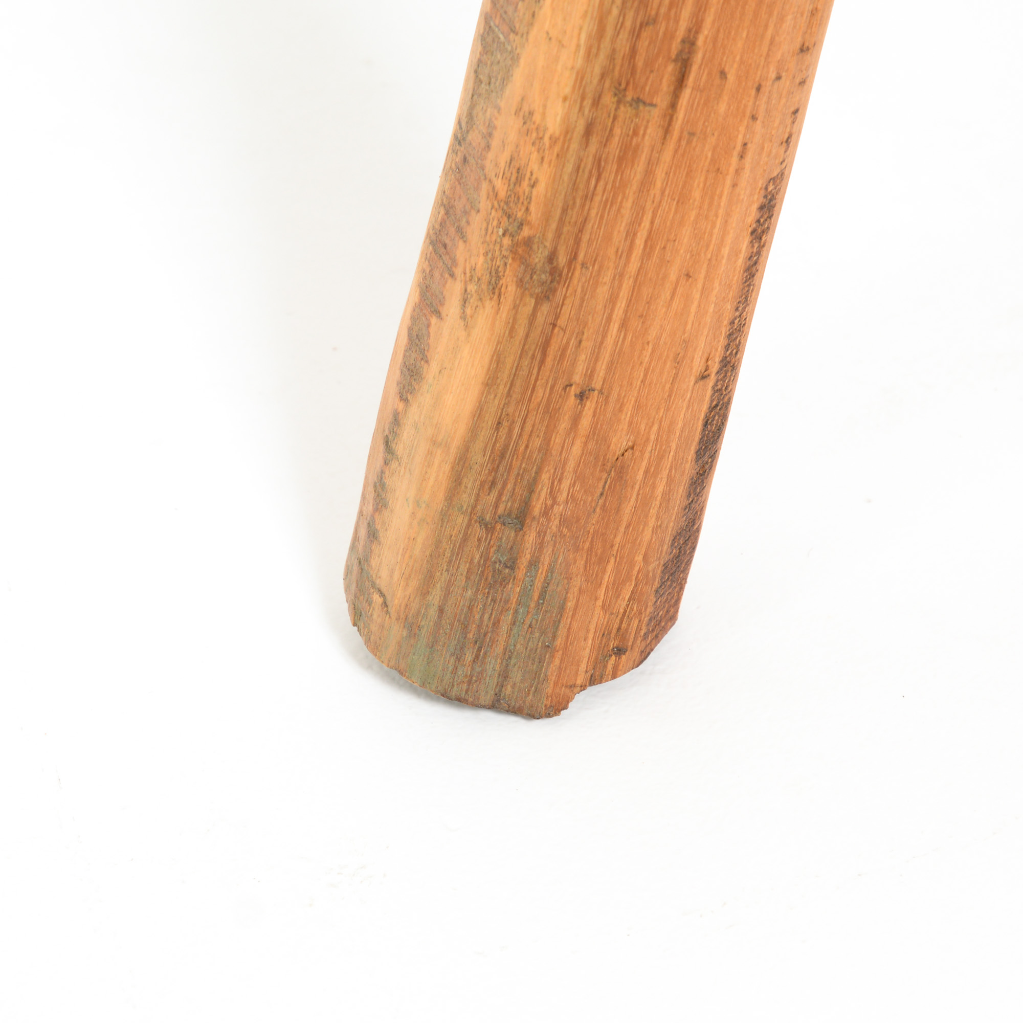 This massive wooden side table with three legs is a nice piece of pure brutalist design.