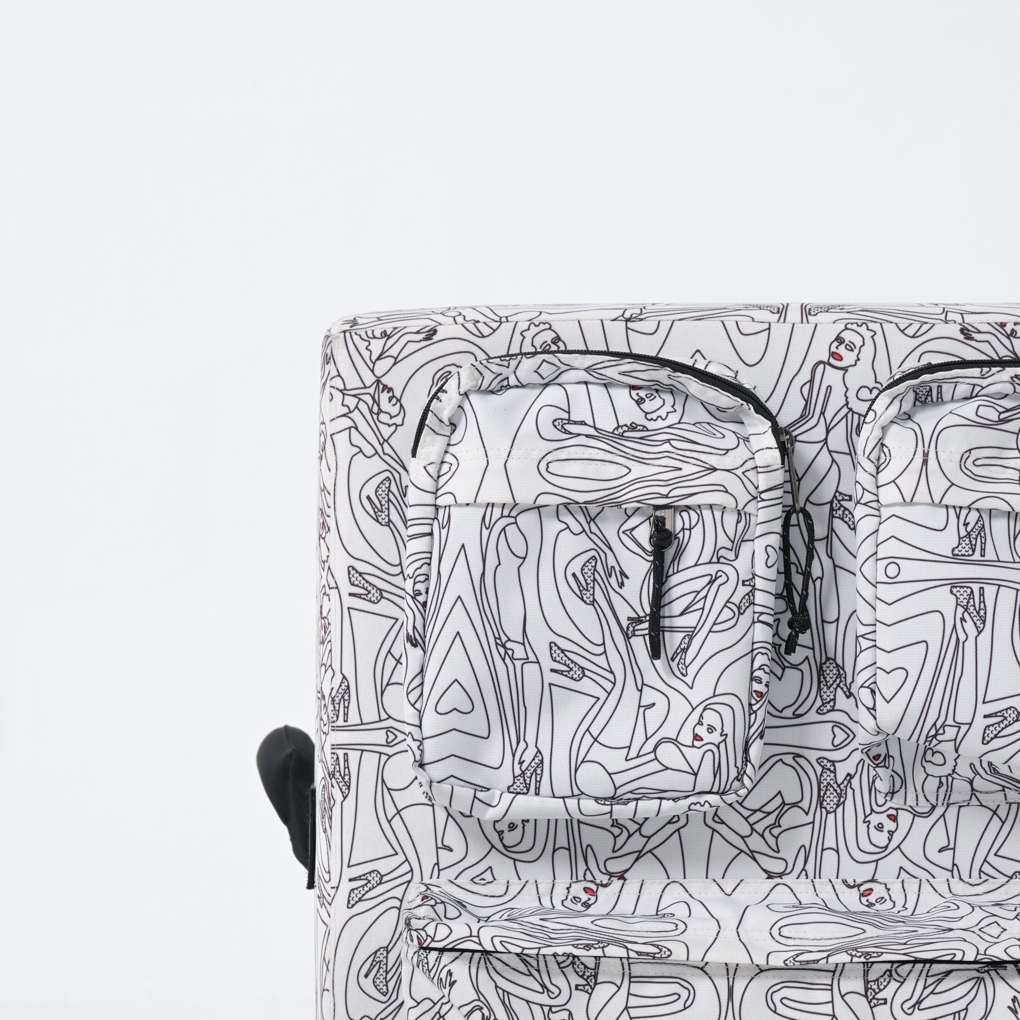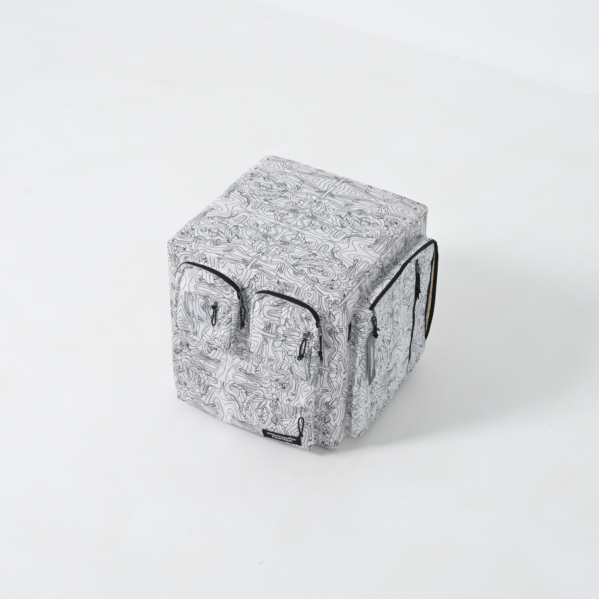 Do you have too much stuff lying around? Store your clutter with this sofa. It is built with rigid polyurethane foam and white Cordura, it features multiple built-in pockets of various sizes, providing storage space for the detritus of modern living: books, magazines, laptop computer, remote controls, etc.