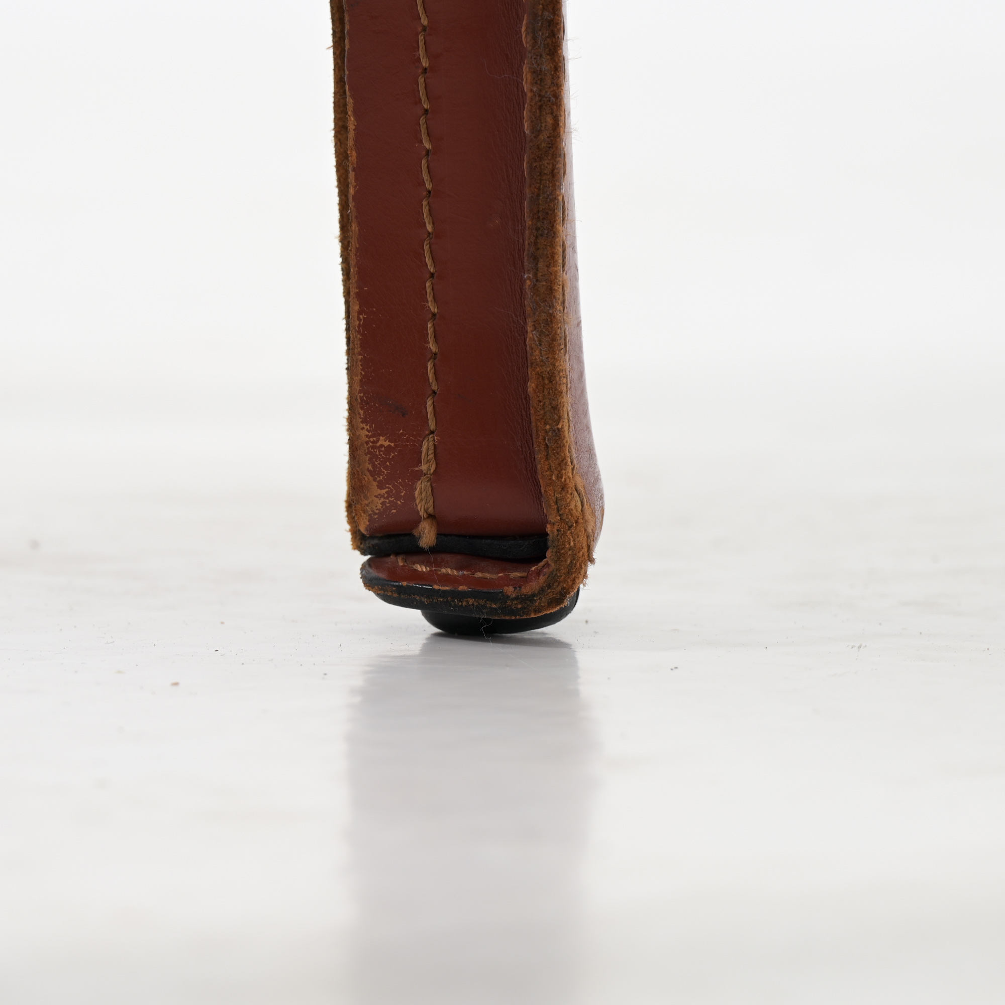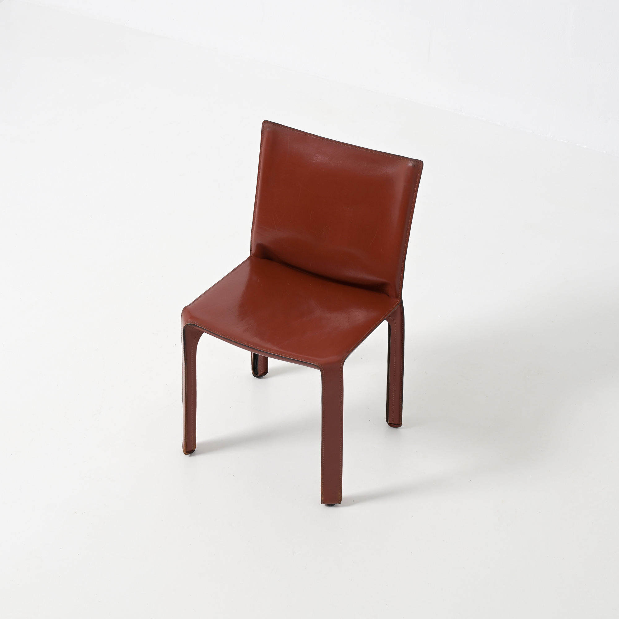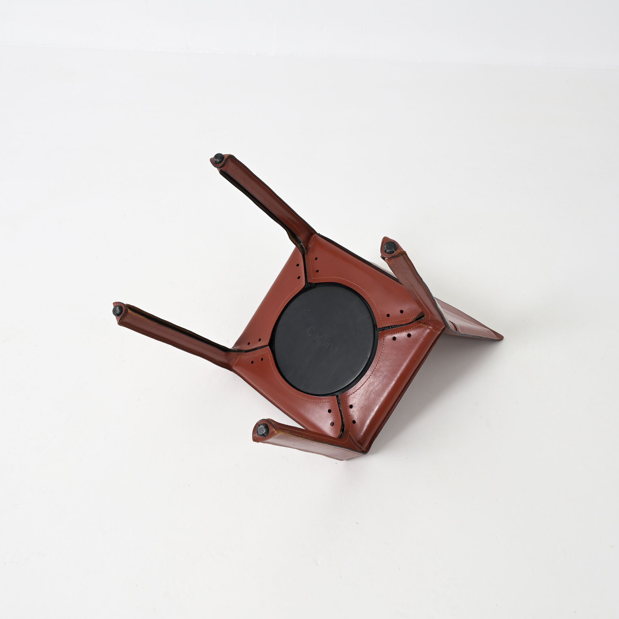 It is a genius design, conceived as an extension and prosthesis for the body. This minimal chair in strong saddle leather is made for eternity.