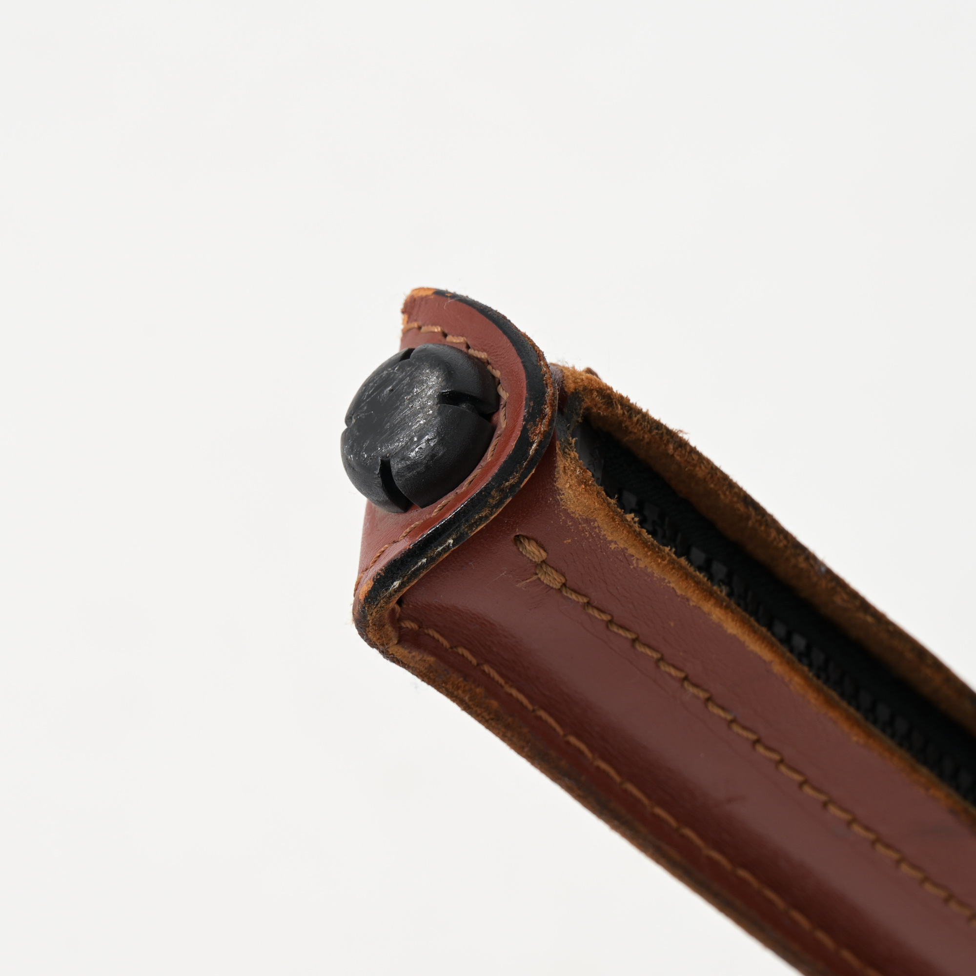 The chair has a skeleton in tubular steel and the stretched, stitched leather is fastened to the frame with four zips.
