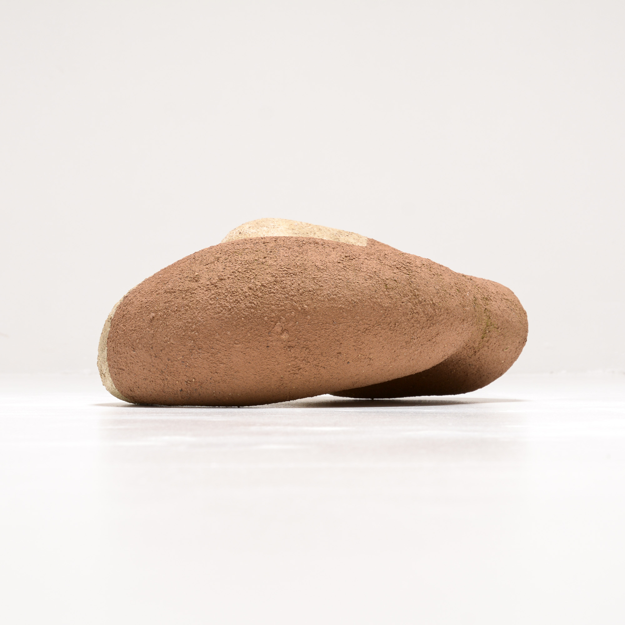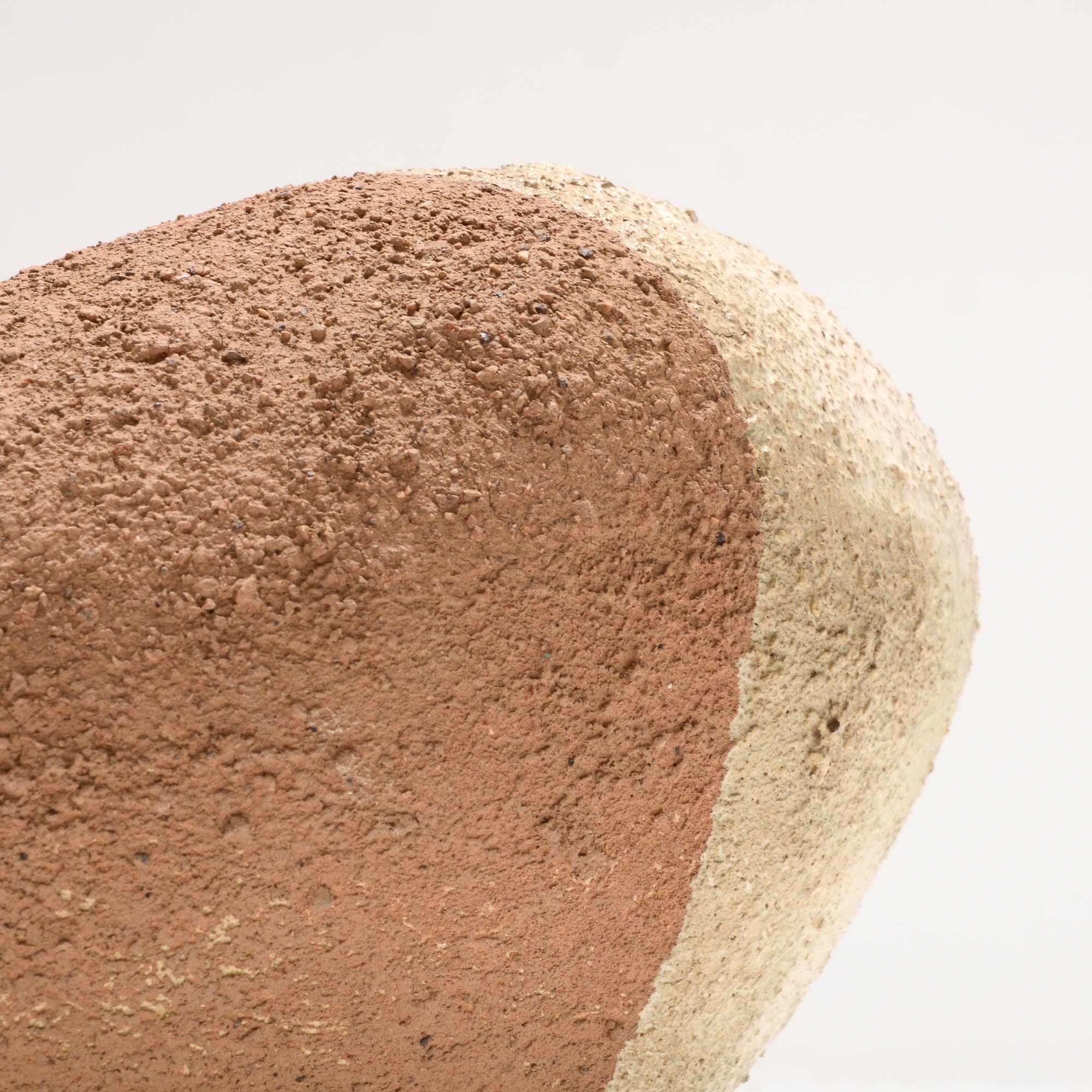 This ceramic sculpture is constructed from chamotte clay, covered with Meuse clay sludge. The sculpture is partially glazed and impregnated against rain so it can stand outside.