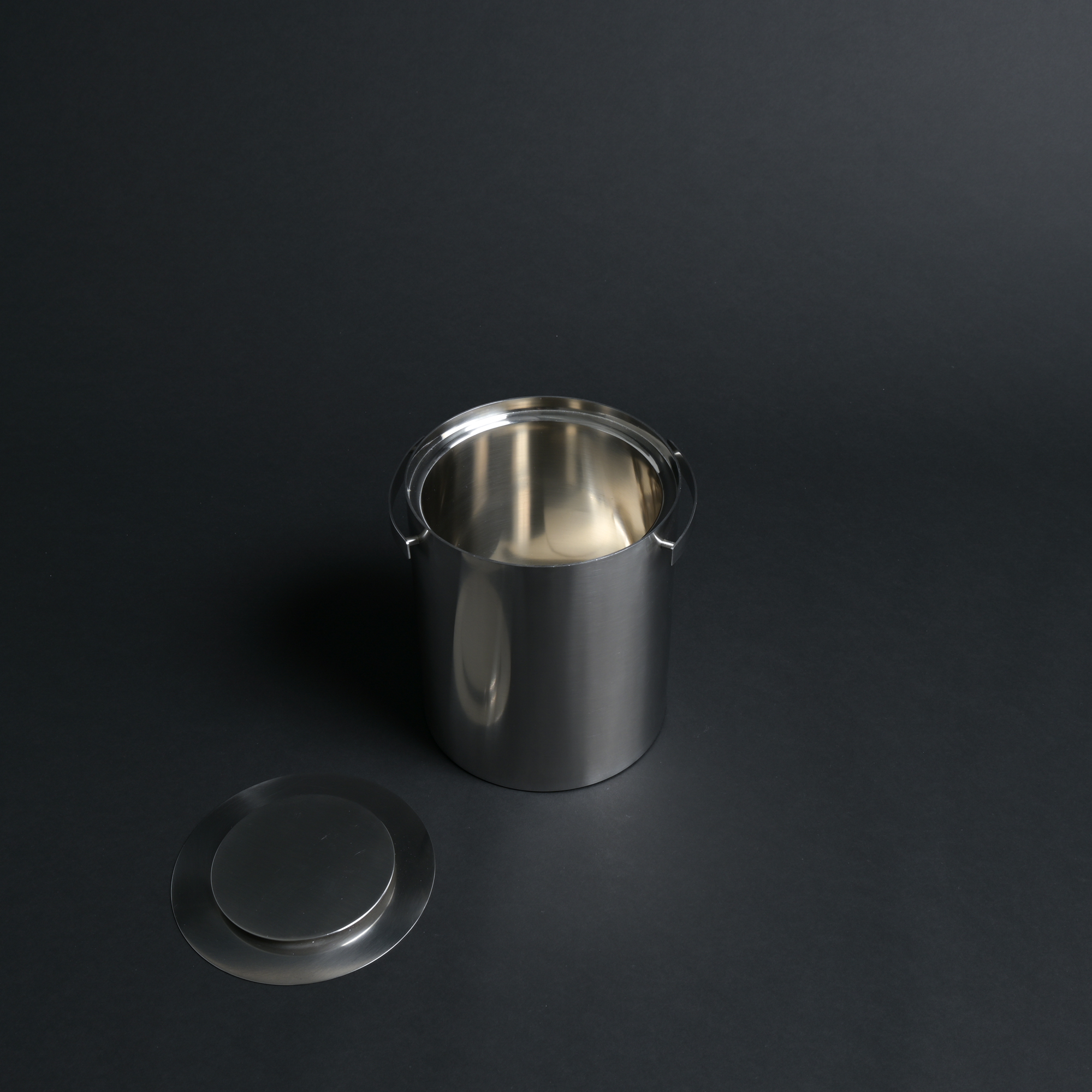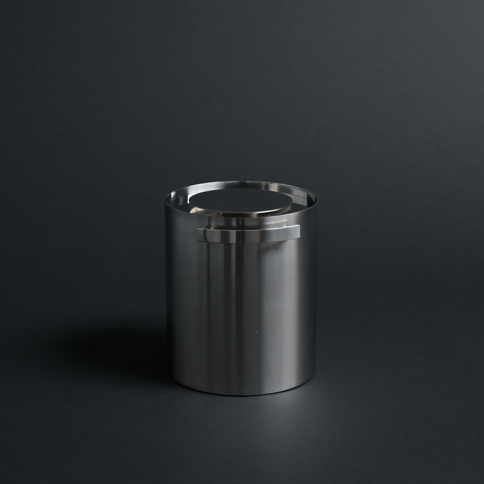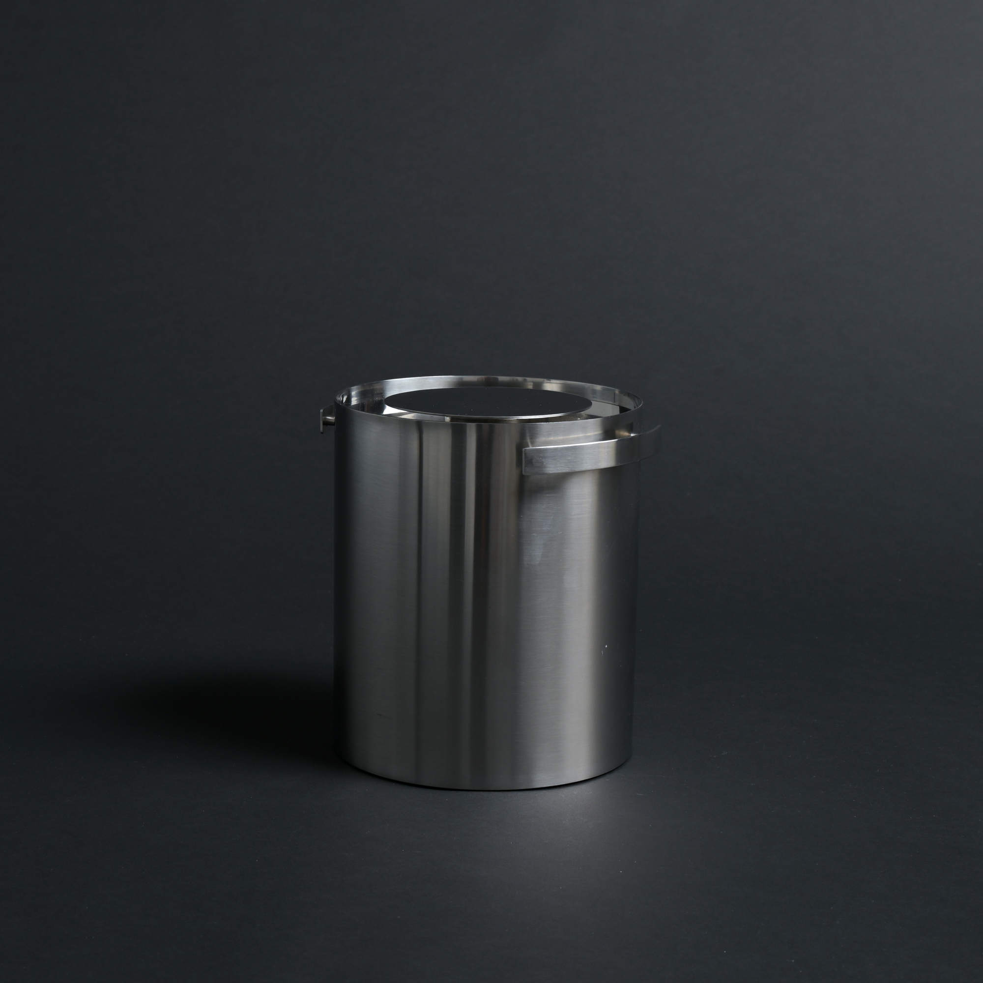 This double-walled cooling bucket is made out of brushed stainless steel.