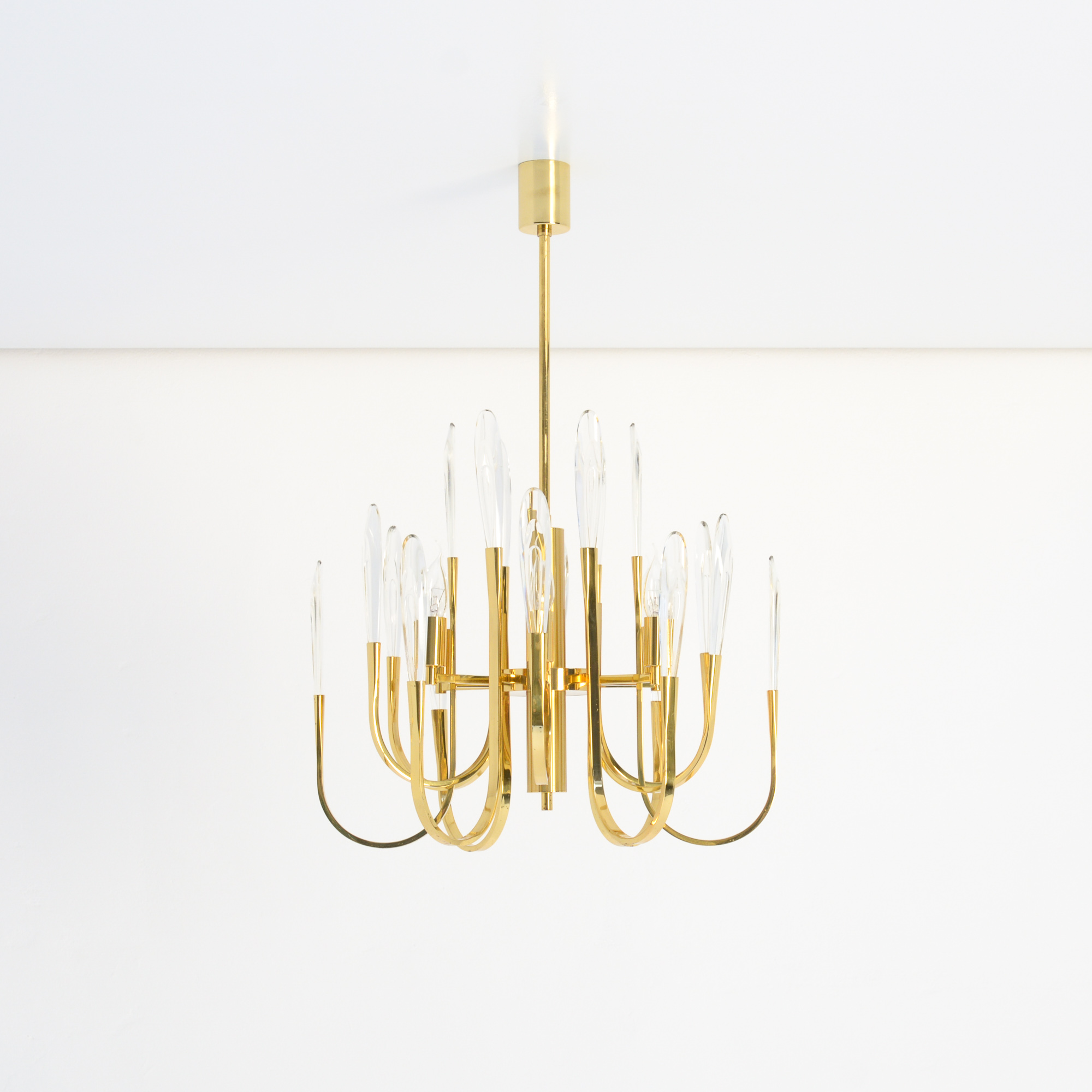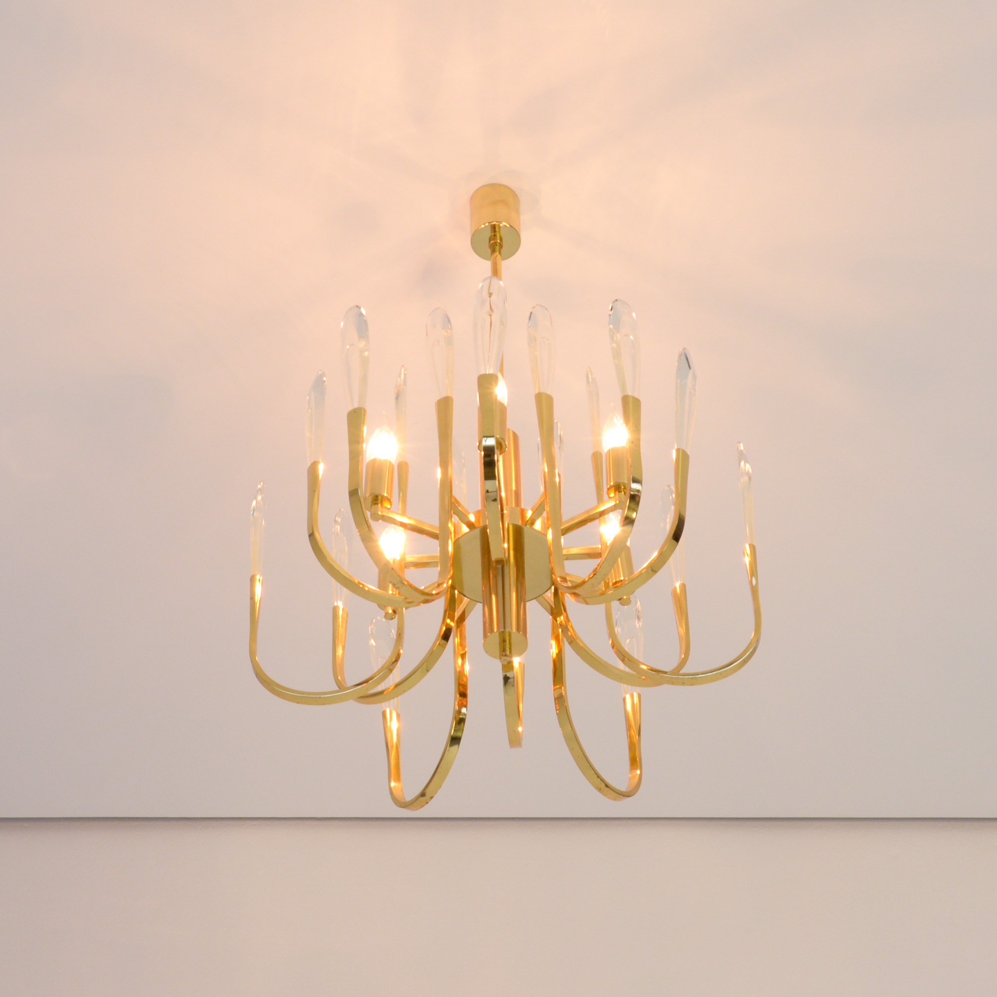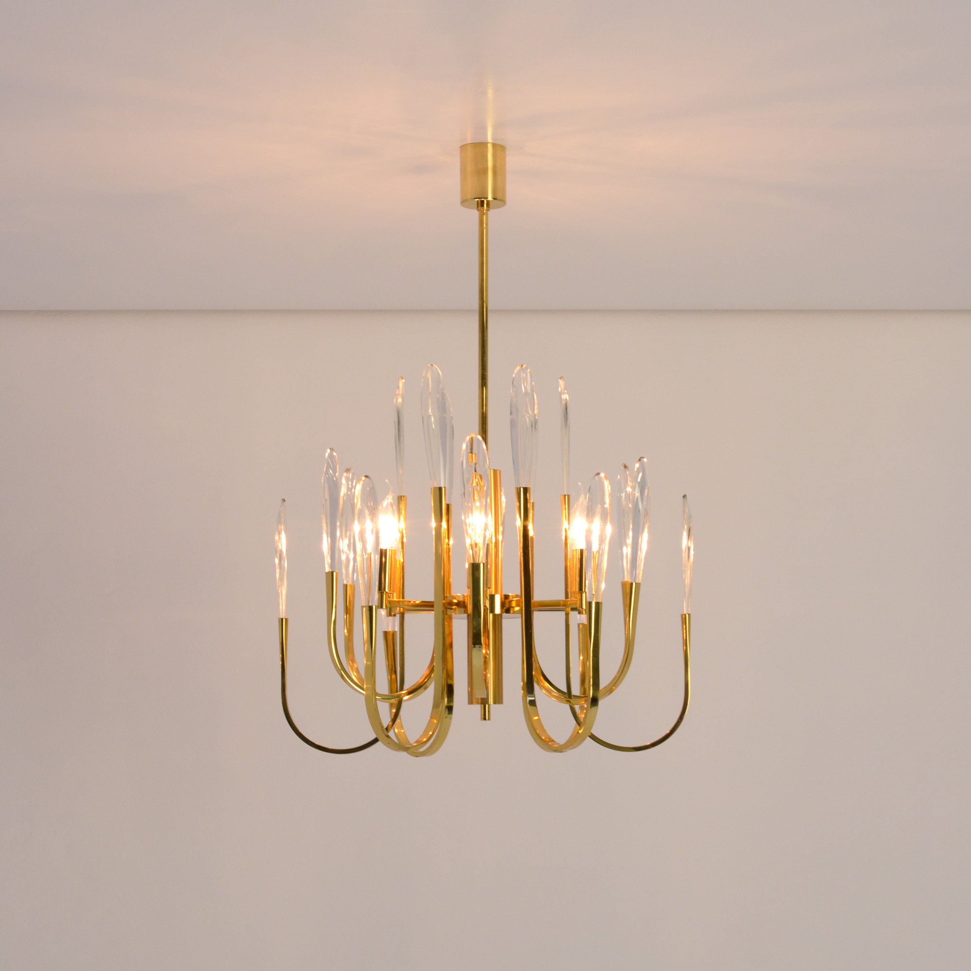 This classical chandelier was created and manufactured by Boulanger in Belgium.