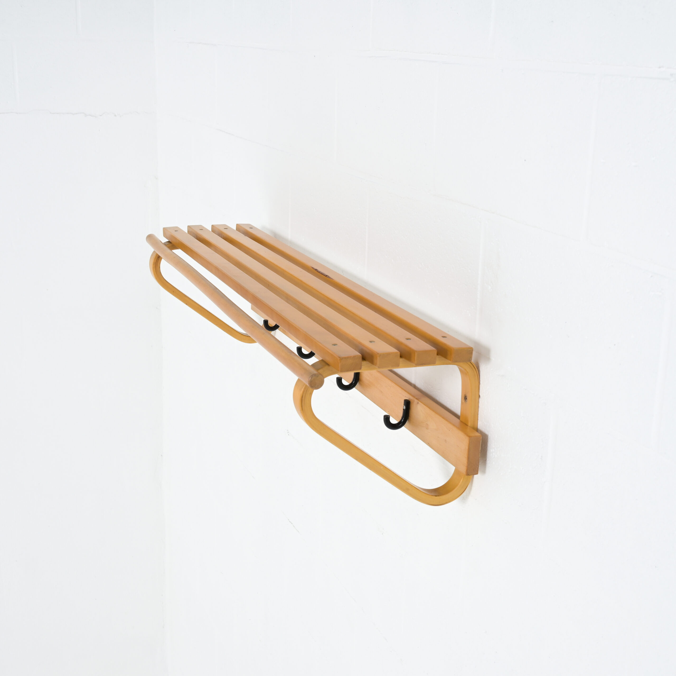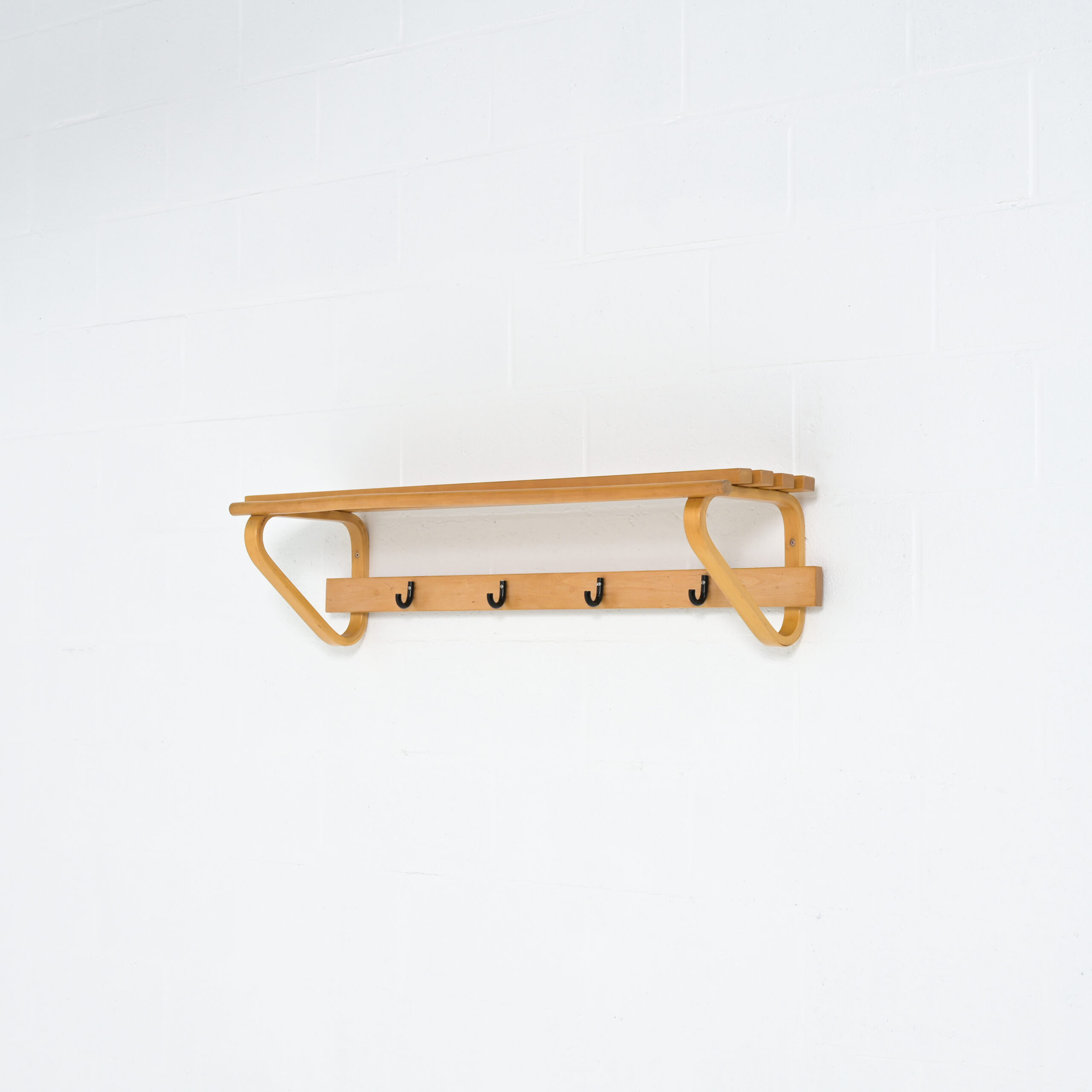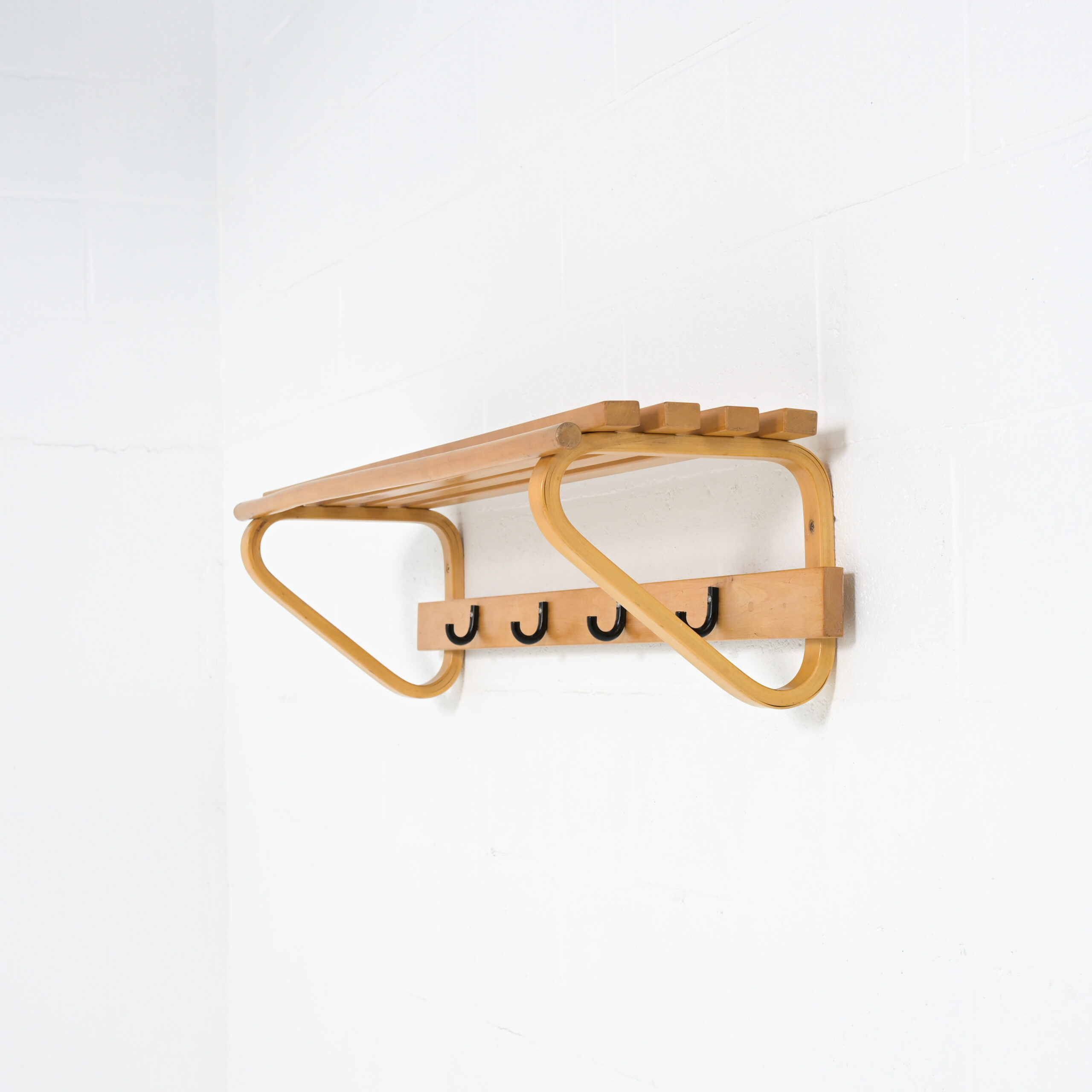 The coat rack is structurally based on laminated birch wood loops, typical of Alvar Aalto’s work. He used them as standard components in several designs, a characterizing part of the design.