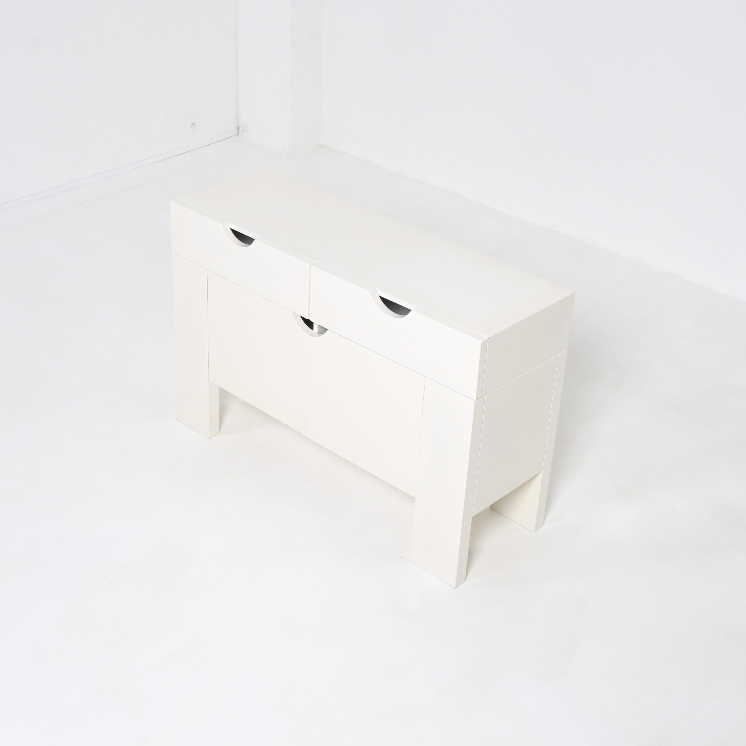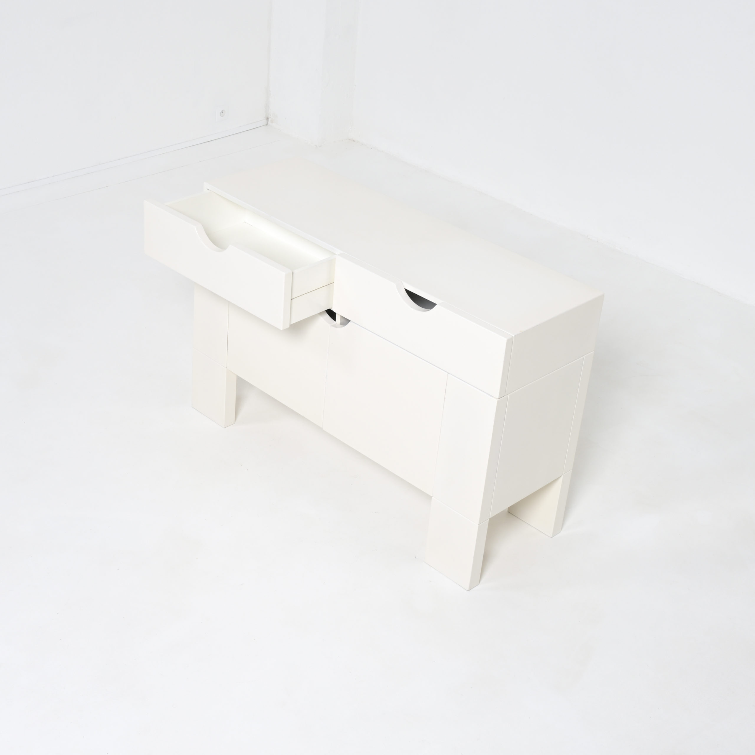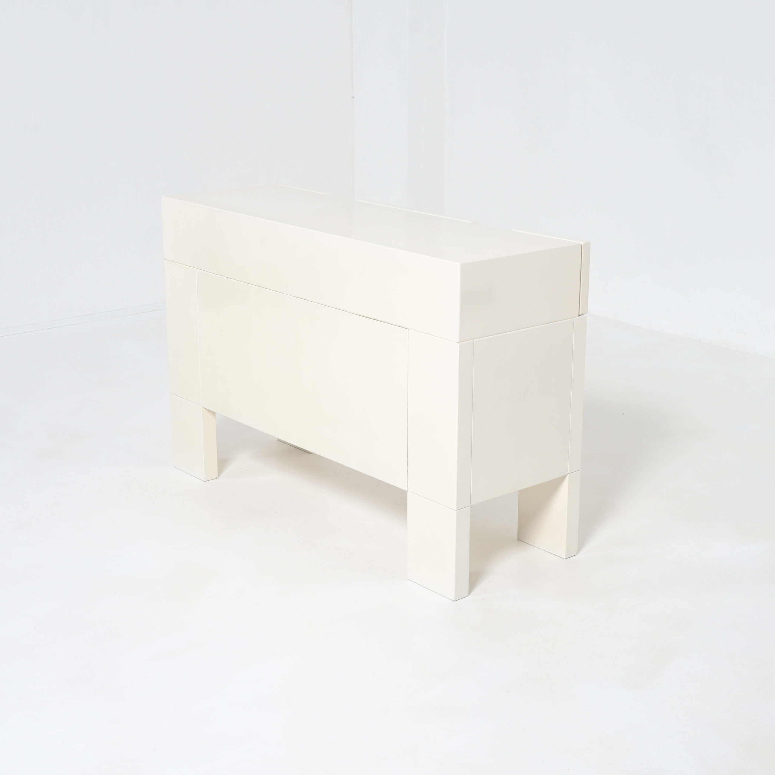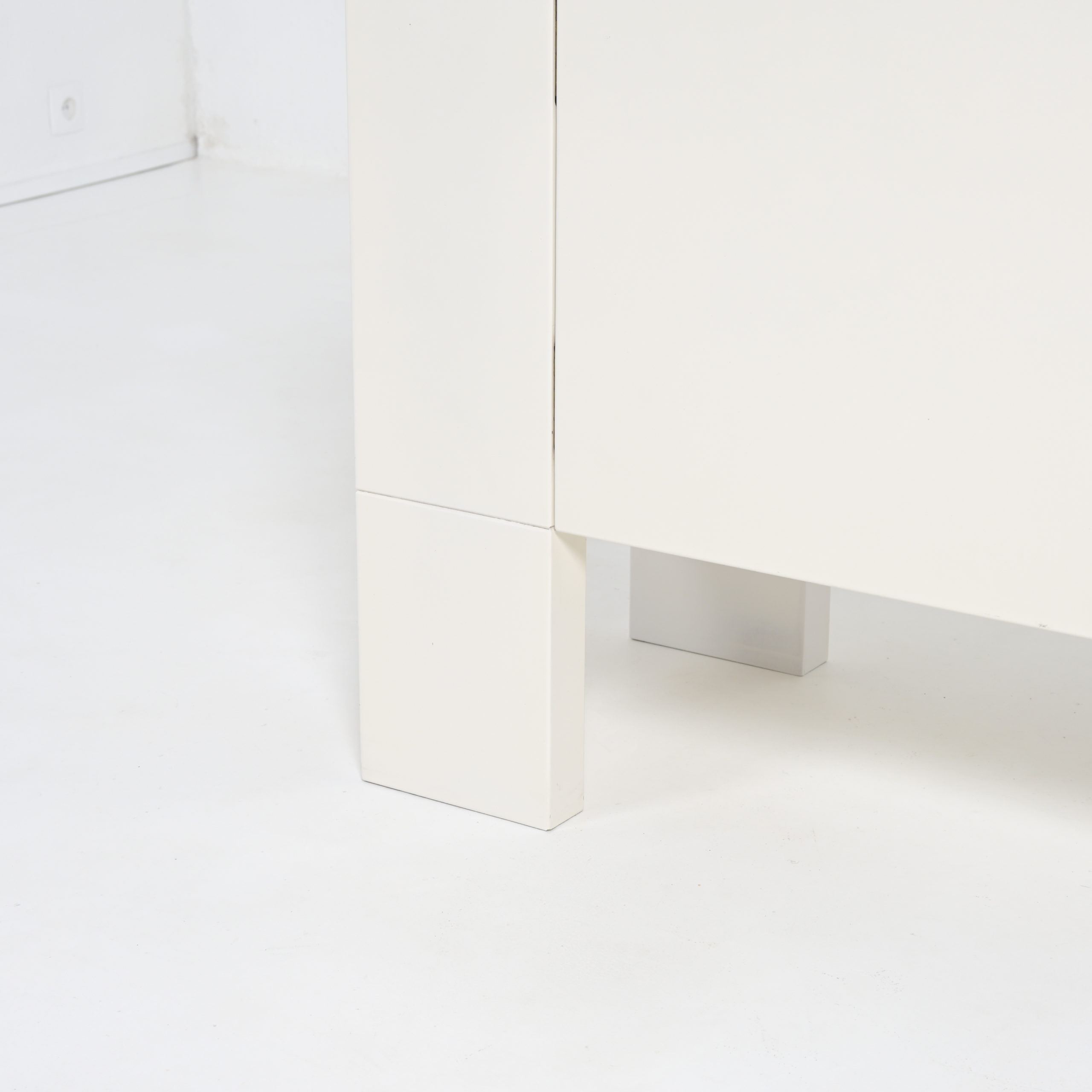 This white cabinet in lacquered wood is in very good authentic condition, with normal signs of age and use. It is one of our favorite pieces.