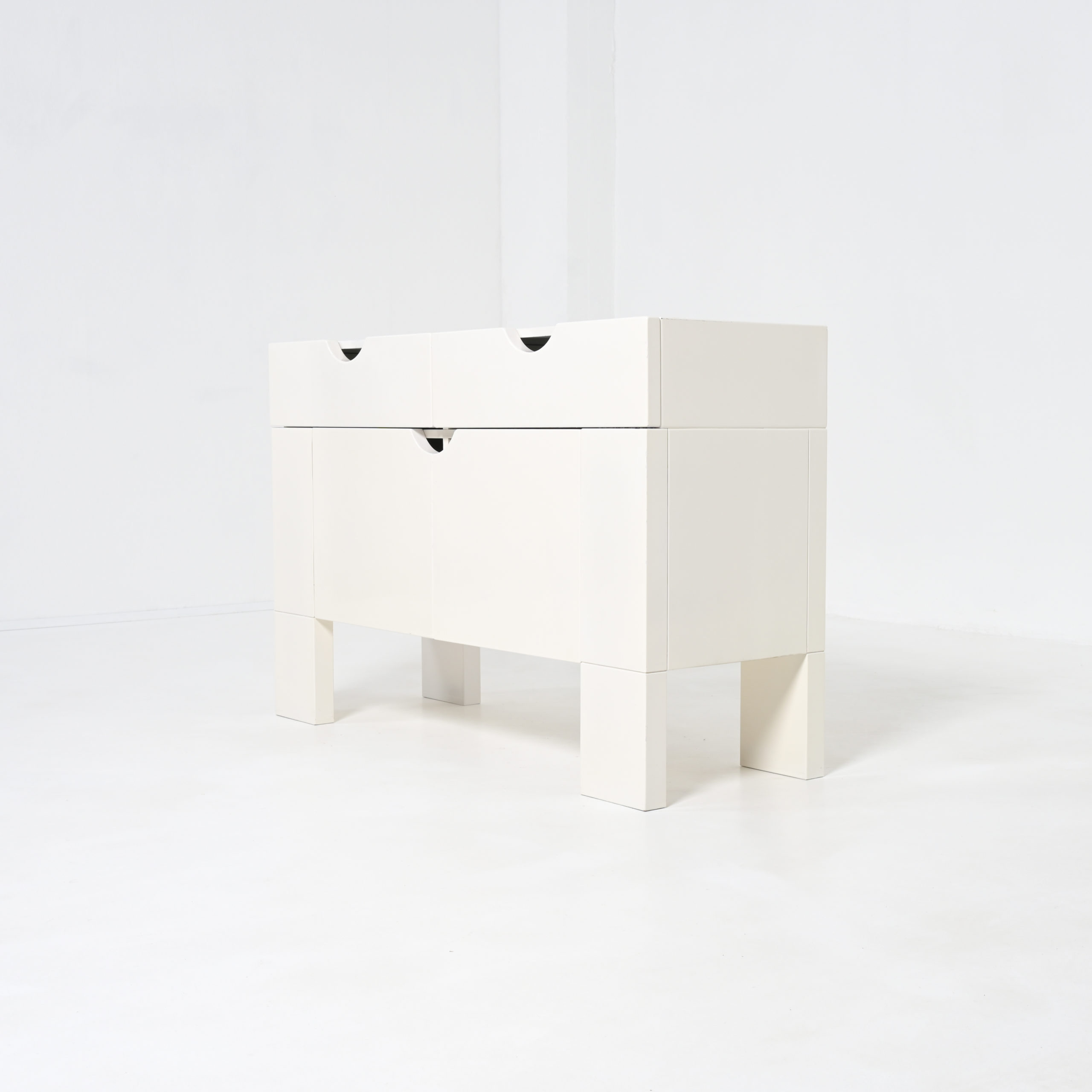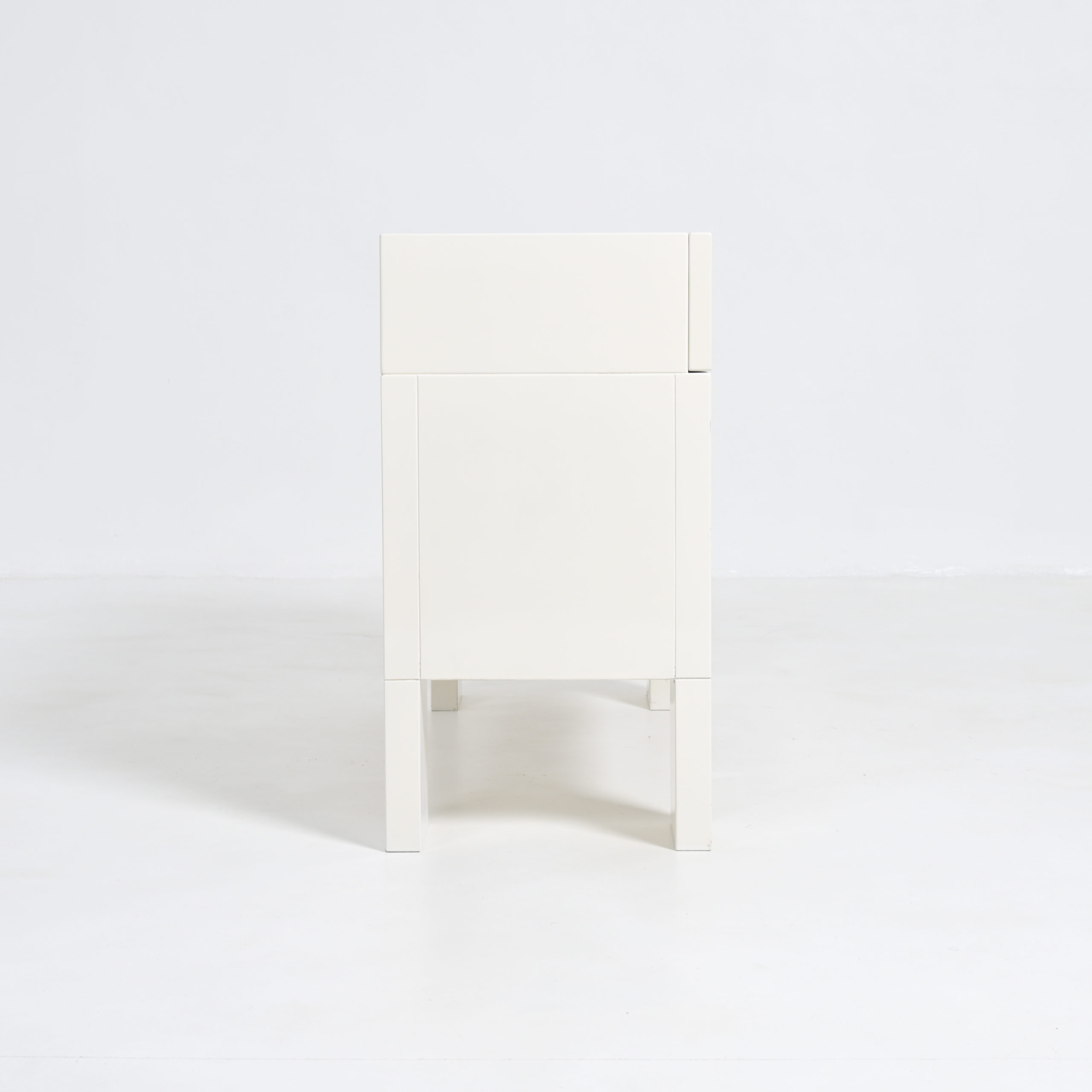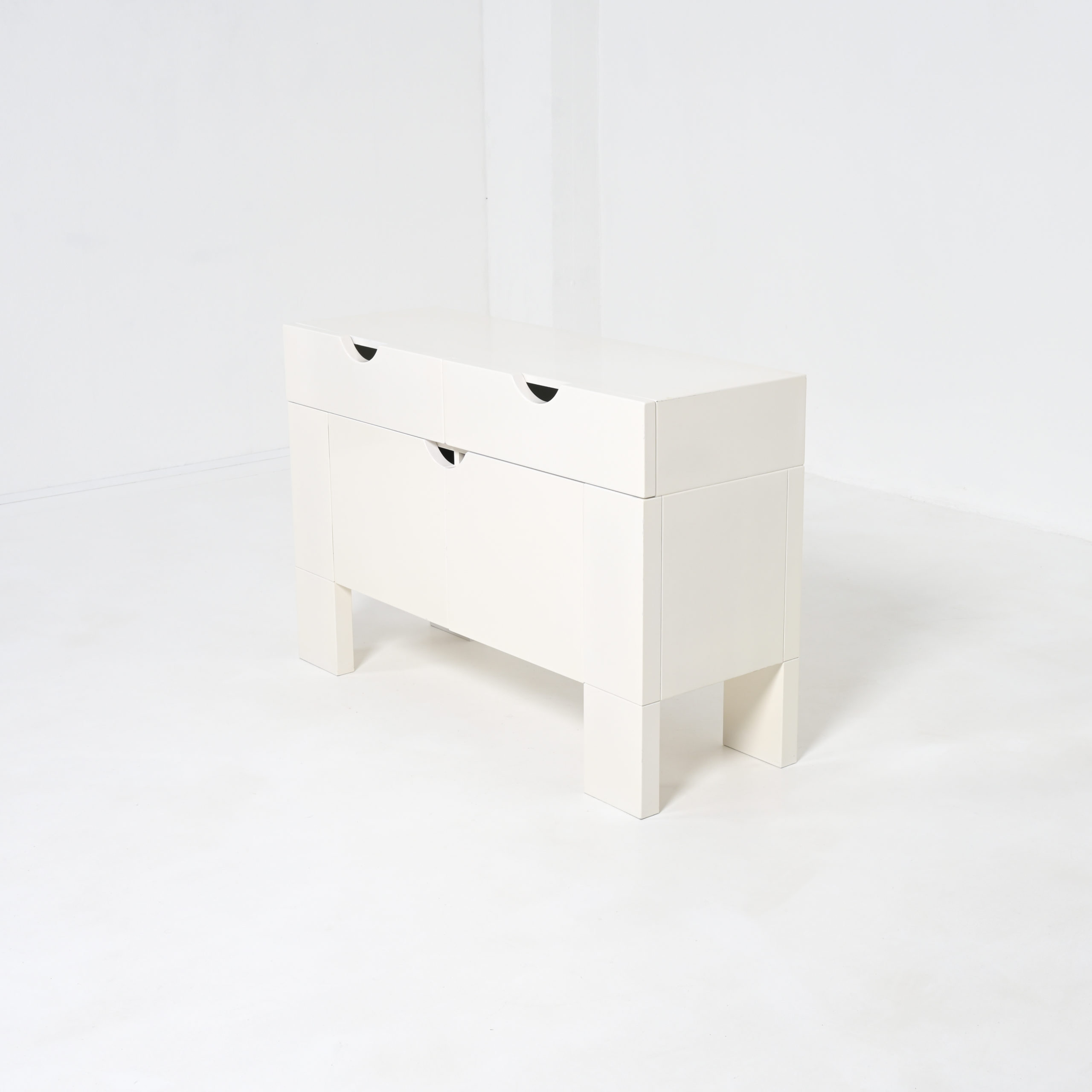 This white cabinet in lacquered wood is in very good authentic condition, with normal signs of age and use. It is one of our favorite pieces.