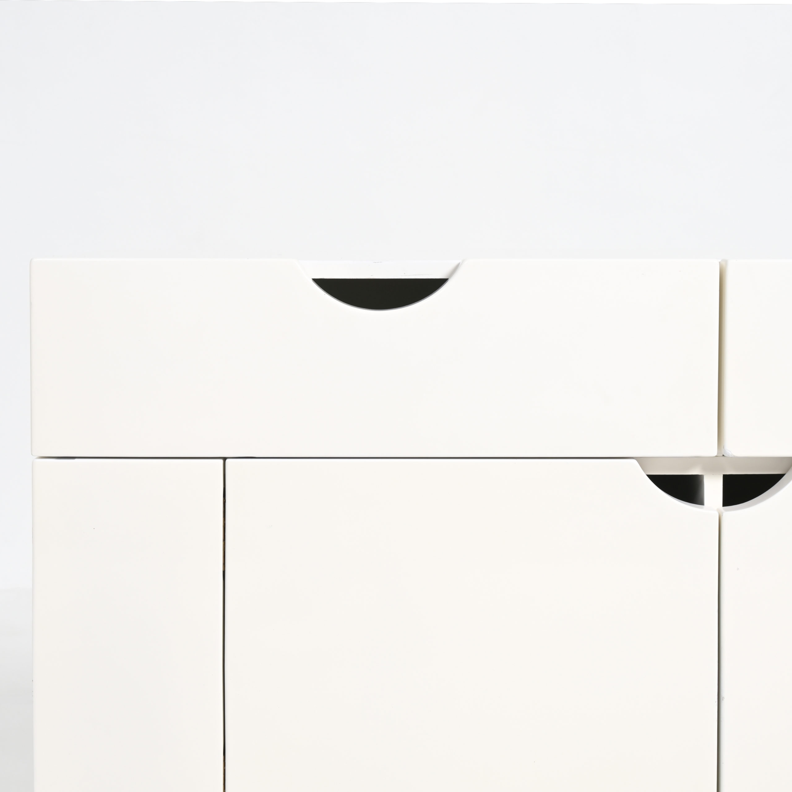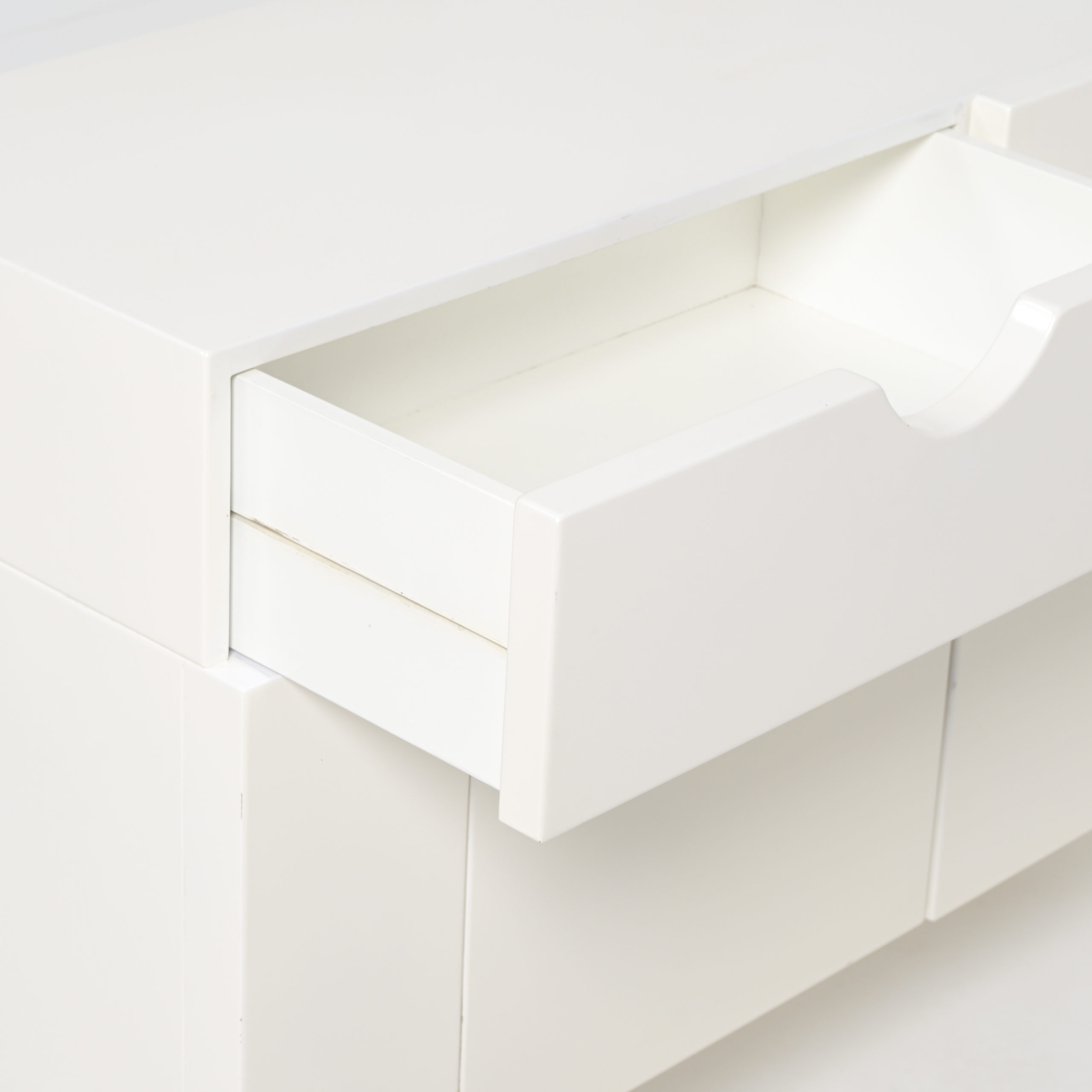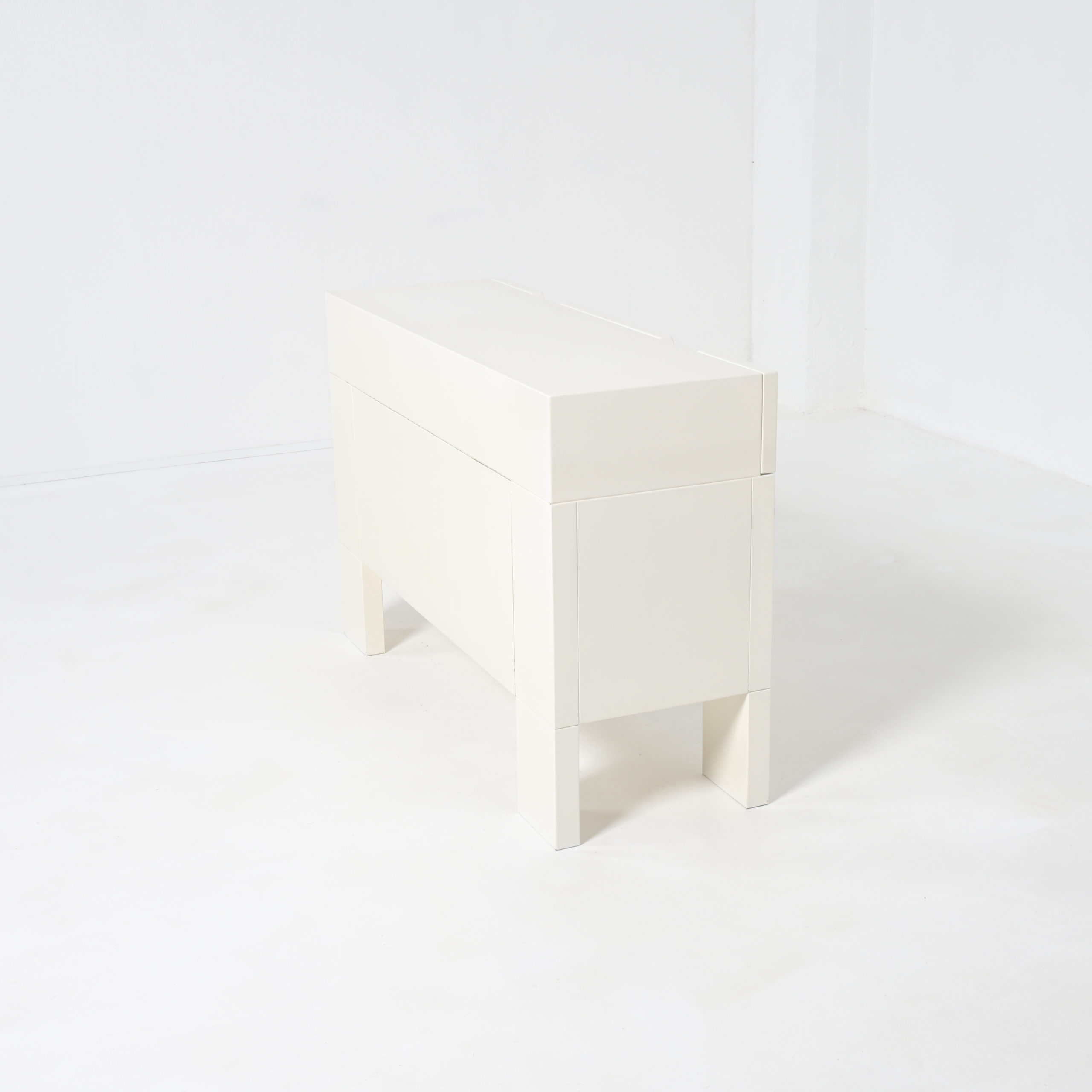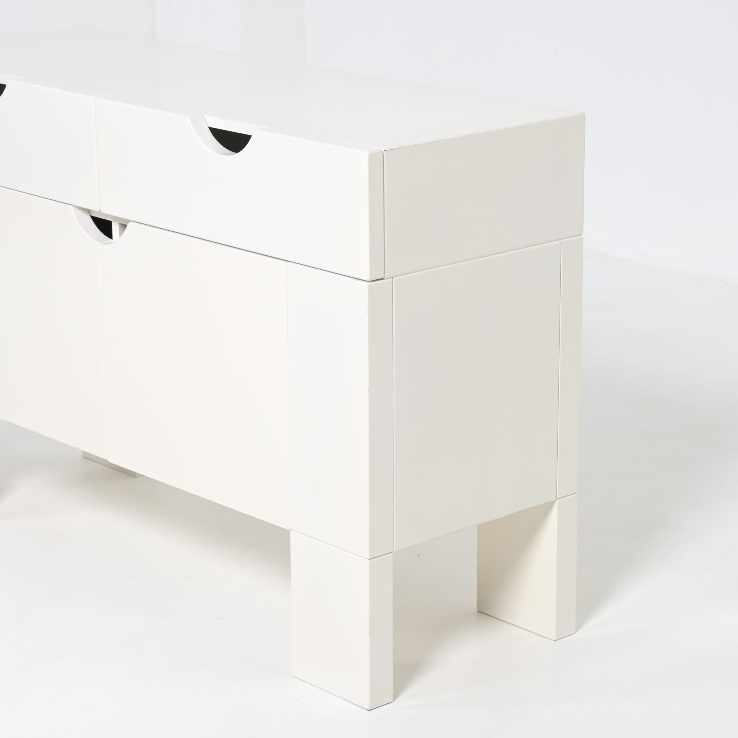This white cabinet in lacquered wood is in very good authentic condition, with normal signs of age and use. It is one of our favorite pieces.