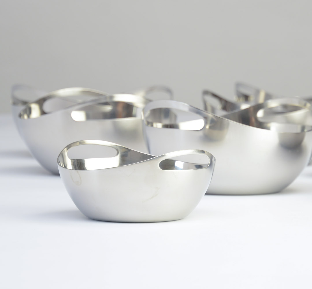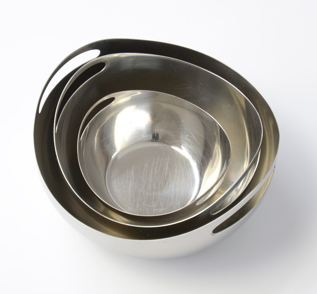 The bowls are made of inox 18/8 and in good vintage condition, with normal signs of age and use.