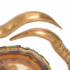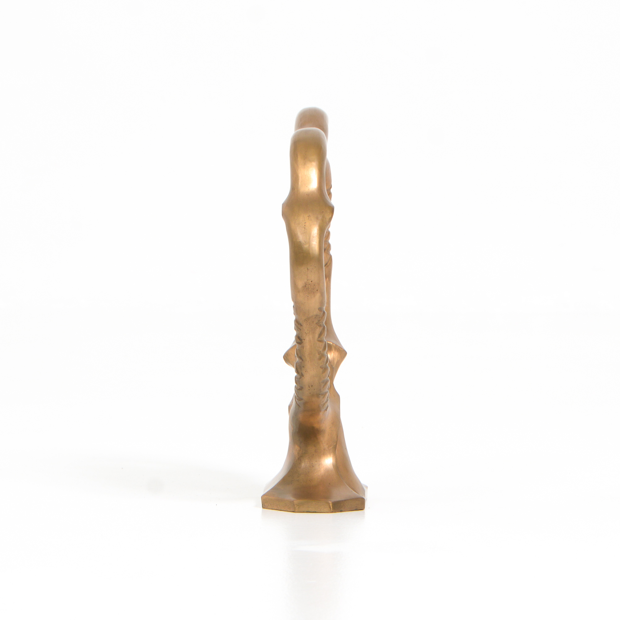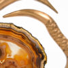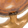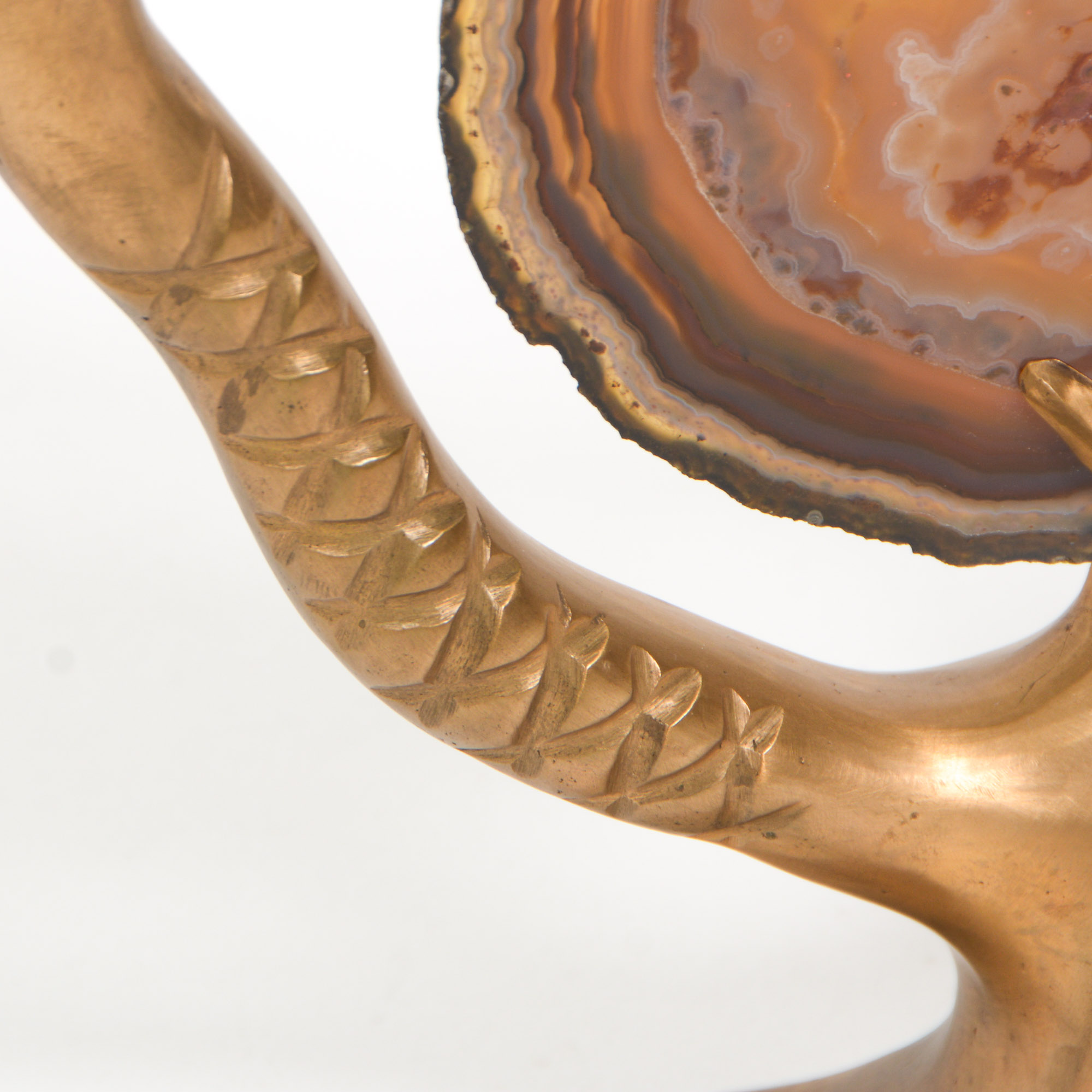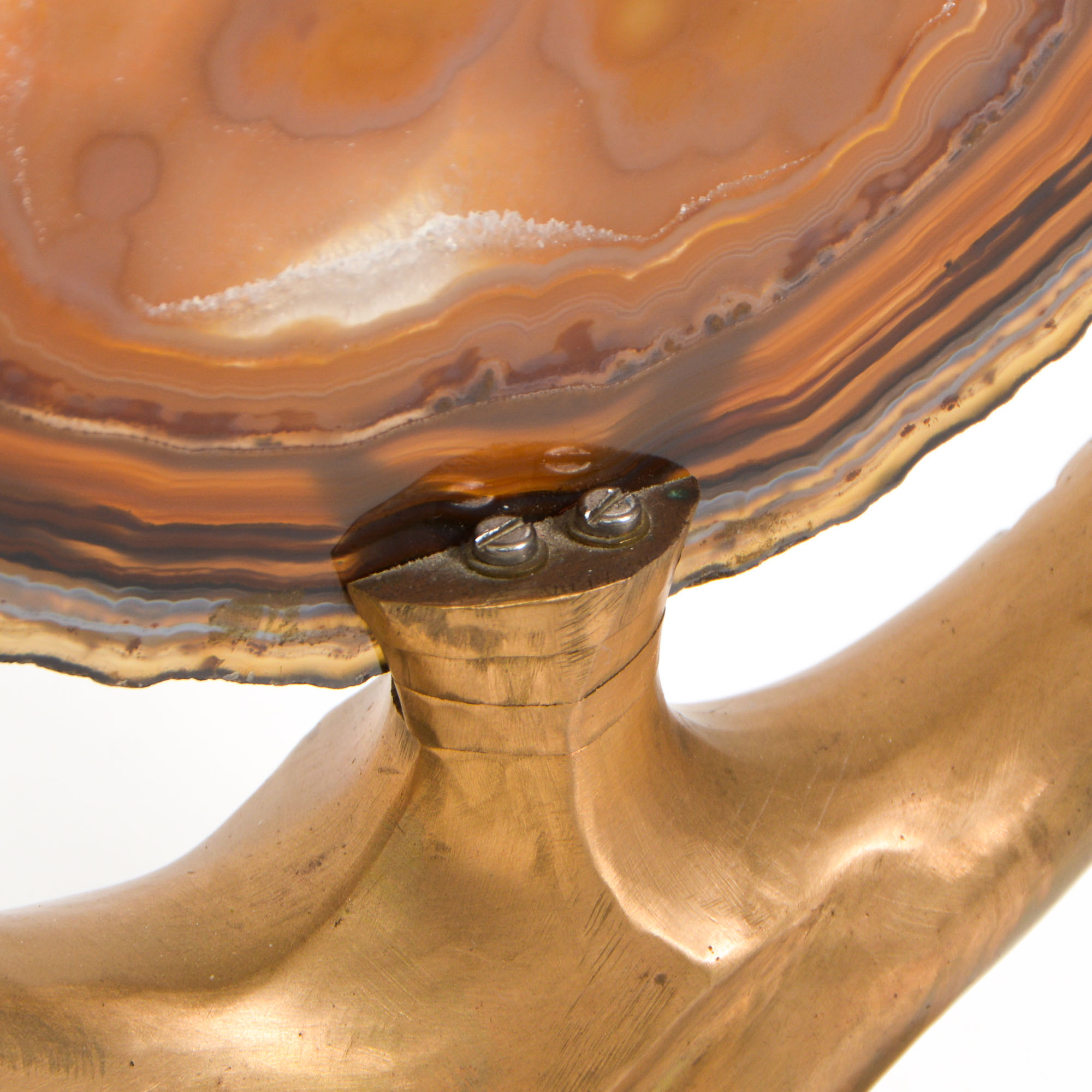 The bronze organic shaped sculpture holds the beautiful agate stone slice.